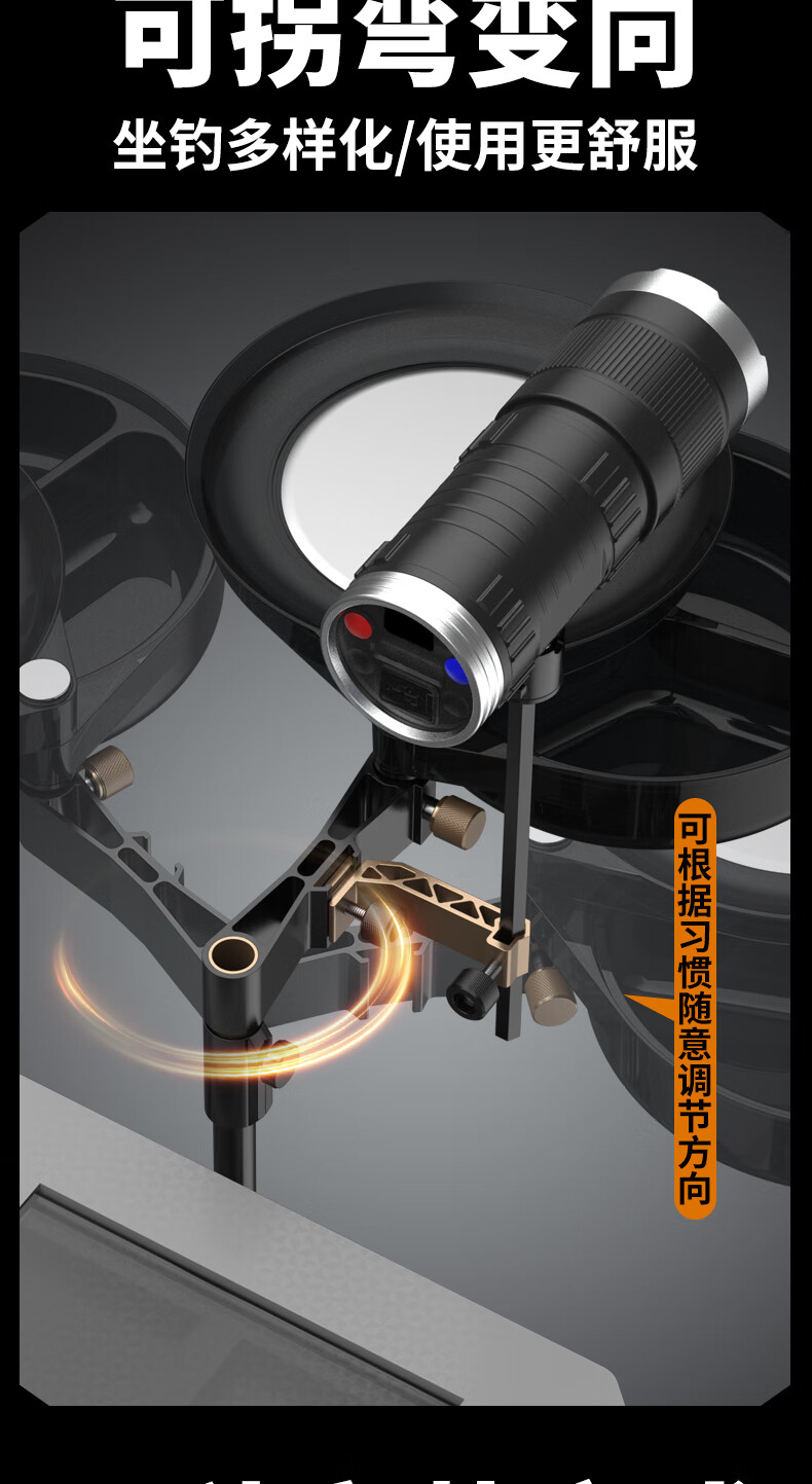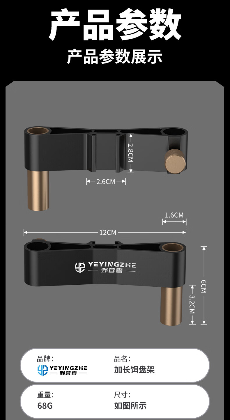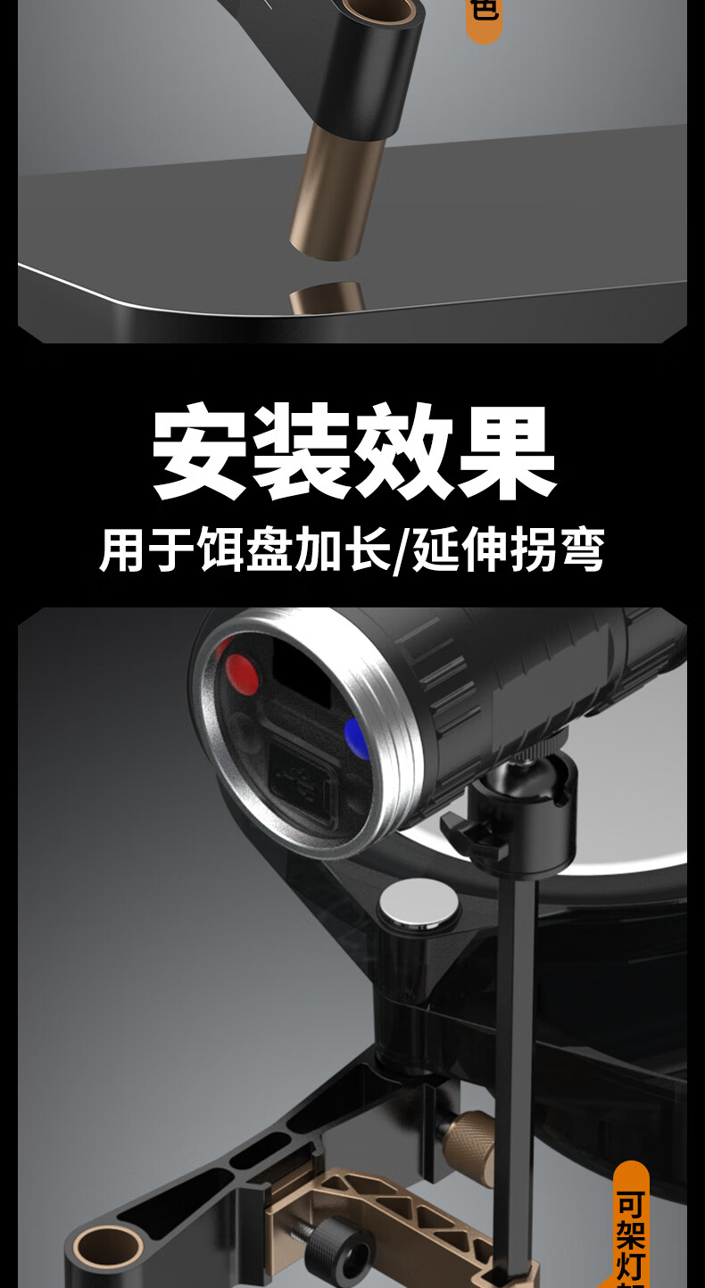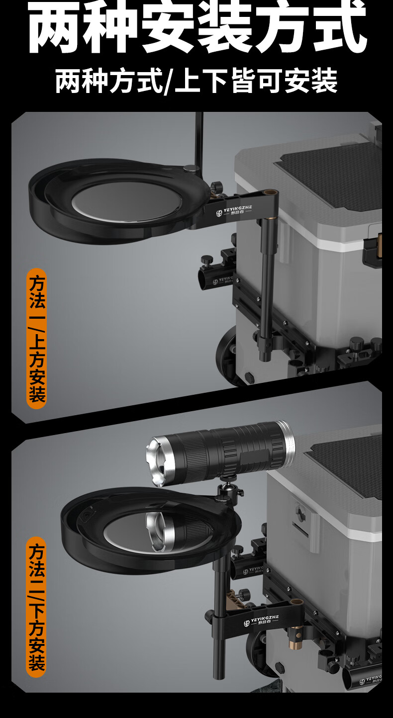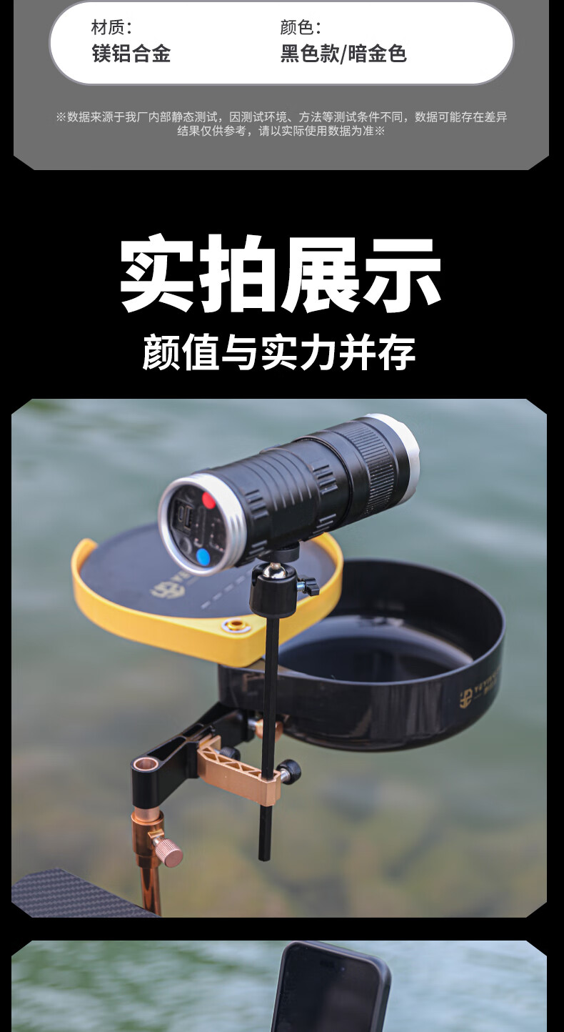 野营者加长饵盘架延长臂夜钓灯架加高拓展臂钓箱钓椅食盒架饵盒架 黑金-加长【饵盘架延长臂】+夜钓灯架+手机架