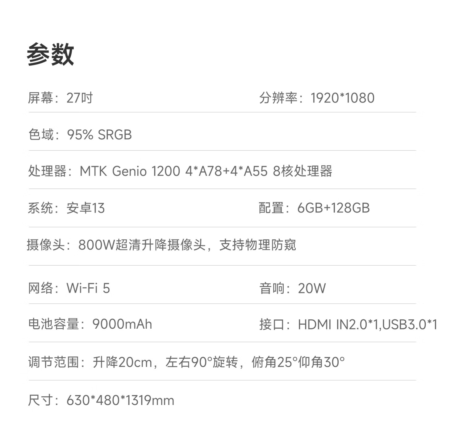 当贝PadGO Air闺蜜机长续航1080P版 触控移动电视平板随心屏 27英寸显示器追剧健身K歌闺蜜屏国家补贴