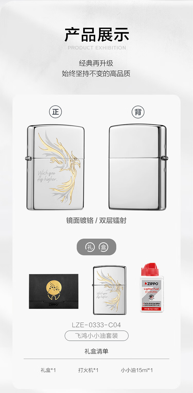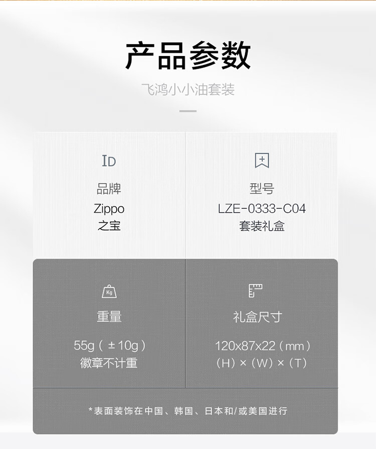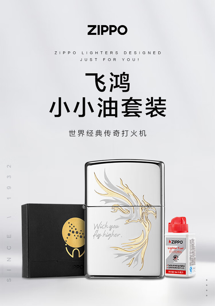 ZIPPO打火机之宝防风煤油 飞鸿 小小油套 生日礼物男士送老公 含油套装