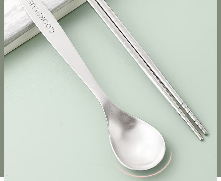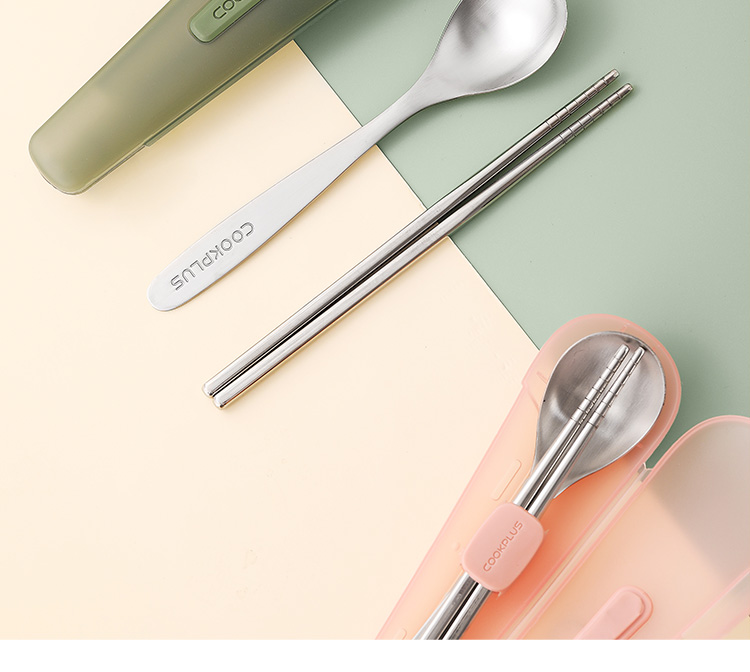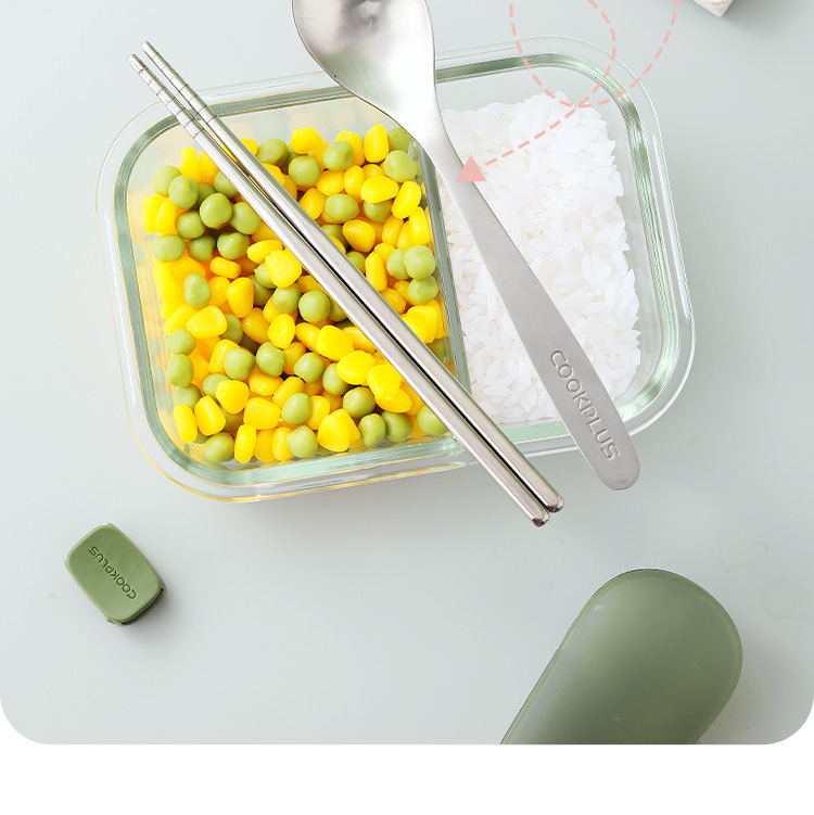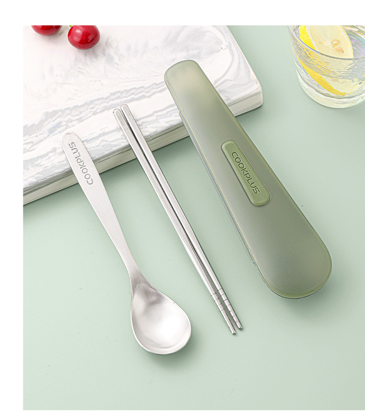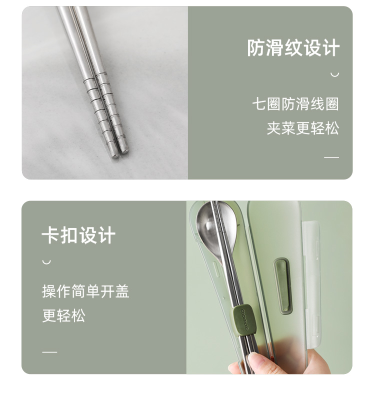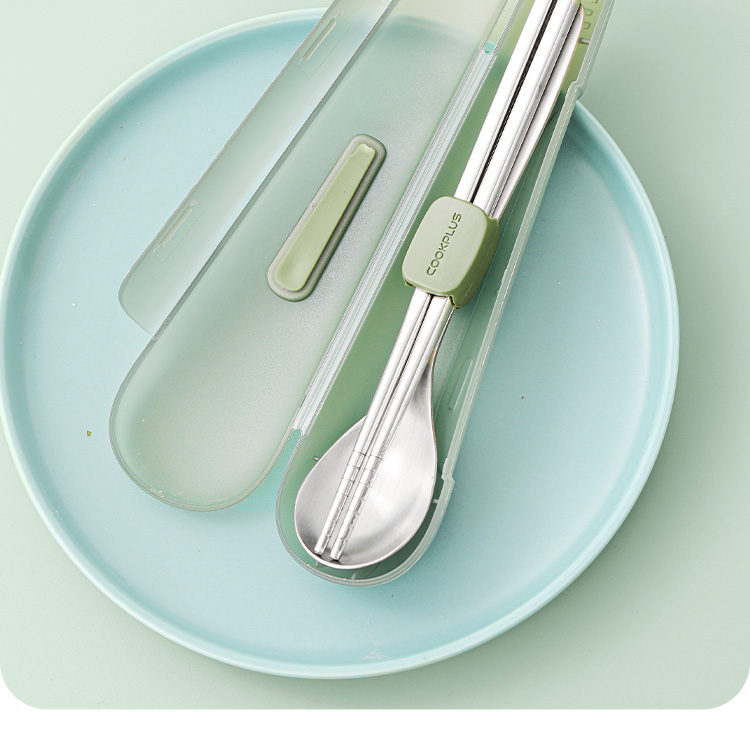 乐扣乐扣(LOCK&LOCK)304不锈钢筷子勺子套装餐具收纳盒 便携餐具盒装2件套 浅豆绿