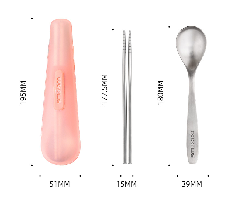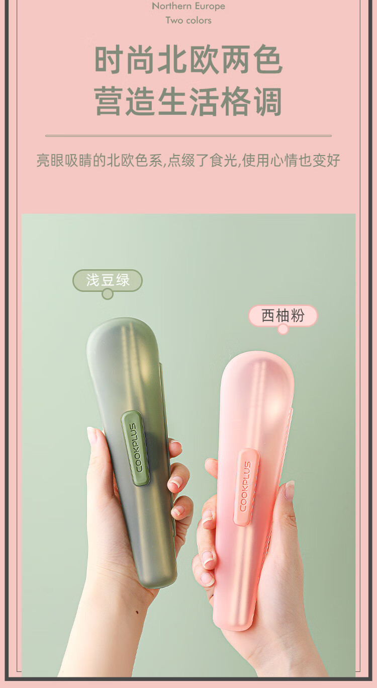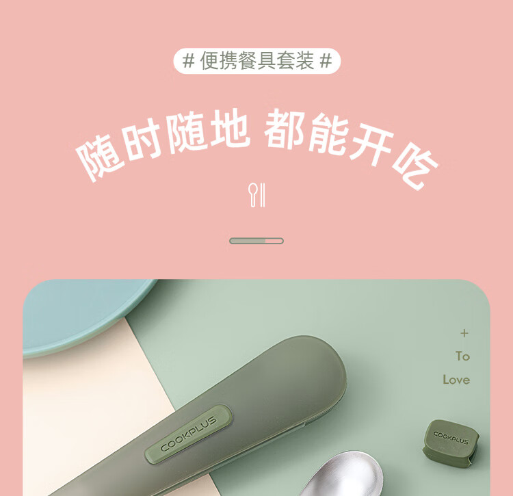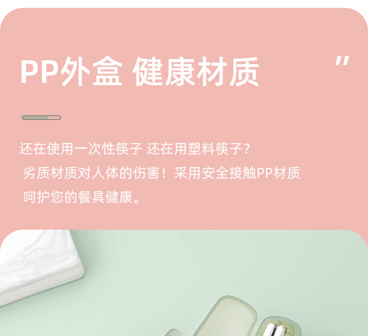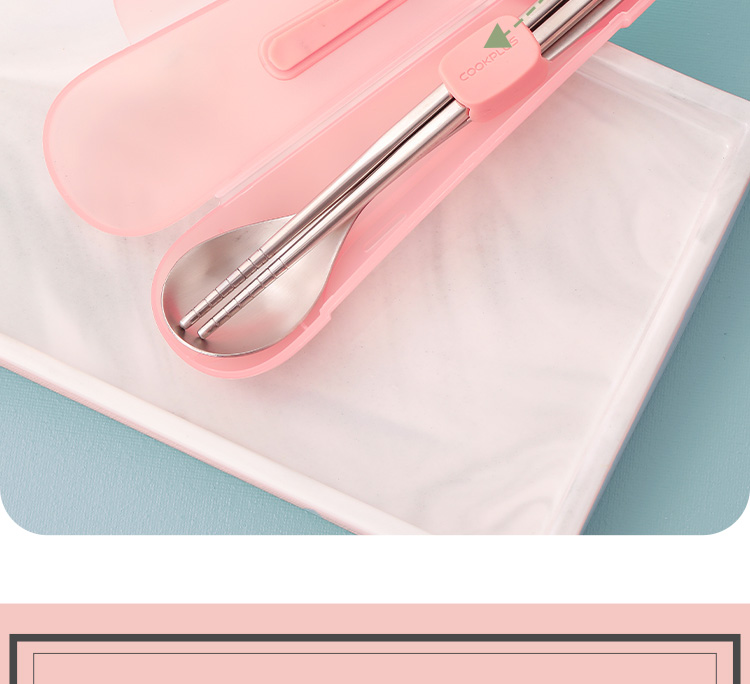 乐扣乐扣(LOCK&LOCK)304不锈钢筷子勺子套装餐具收纳盒 便携餐具盒装2件套 浅豆绿