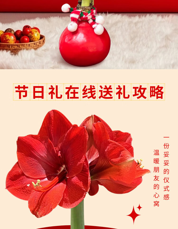 京东鲜花朱顶红礼盒版蜡球周长26-28cm品种随机圣诞节日礼物源头直发