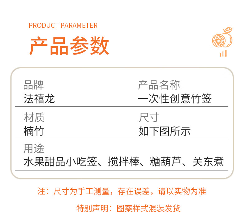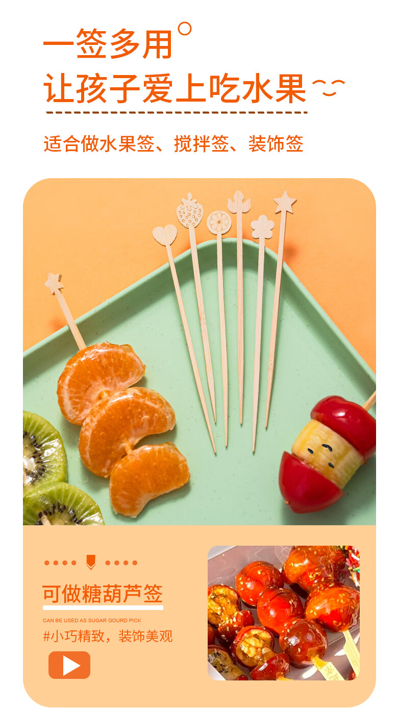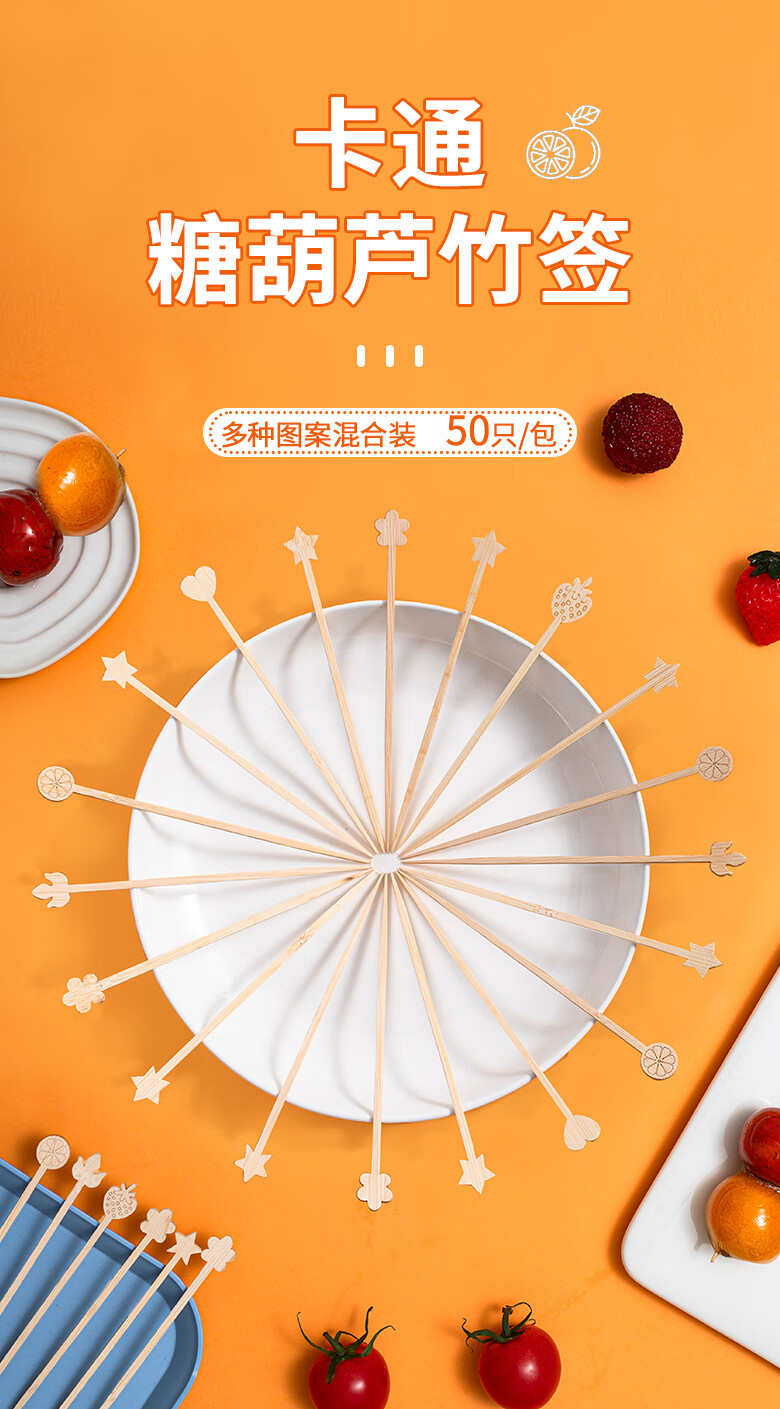 法禧龙冰糖葫芦竹签 一次性水果叉 糖葫芦竹签 儿童串串竹签子 9cm50只