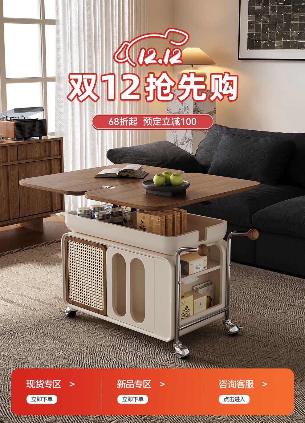 凡创佳品移动茶几茶台茶桌客厅中古奶油风沙发边几边柜小户型家用轻奢边桌 1.1m移动茶台-火山岩茶炉【带可收纳凳*2】