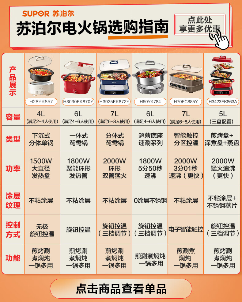 苏泊尔(SUPOR)电火锅 分体式电煮锅 火锅专用锅 家用多功能涮肉打火锅 4L电热锅多用途锅 H28YK857