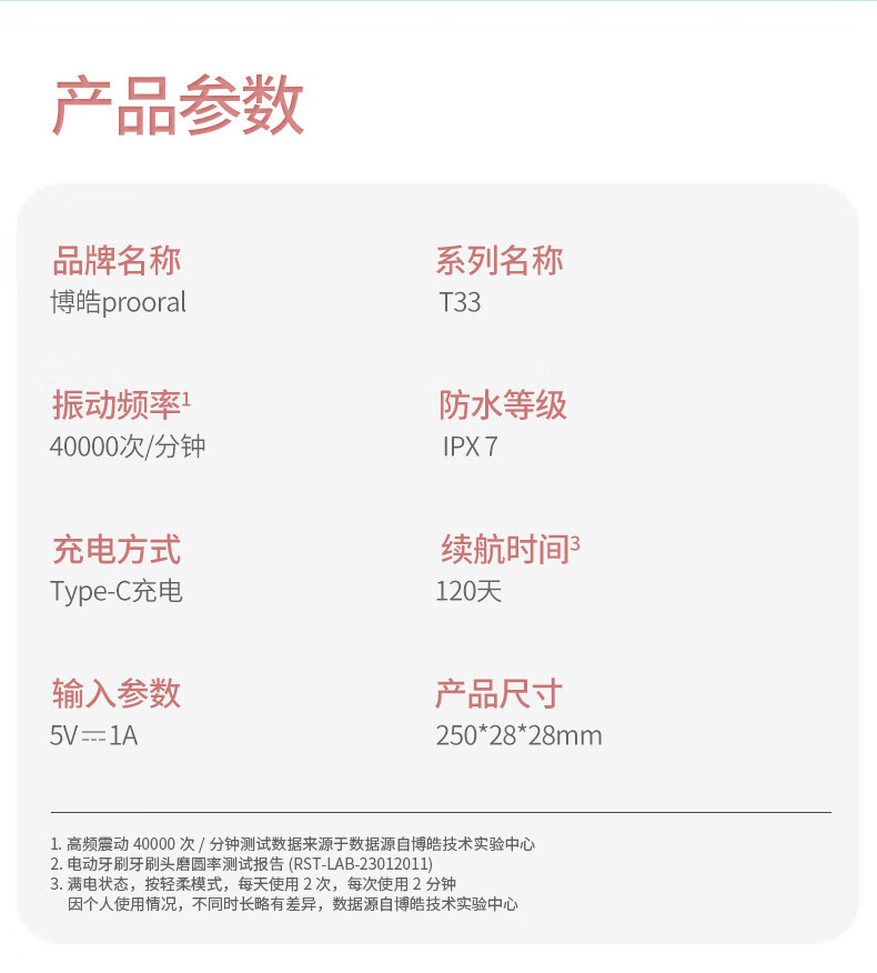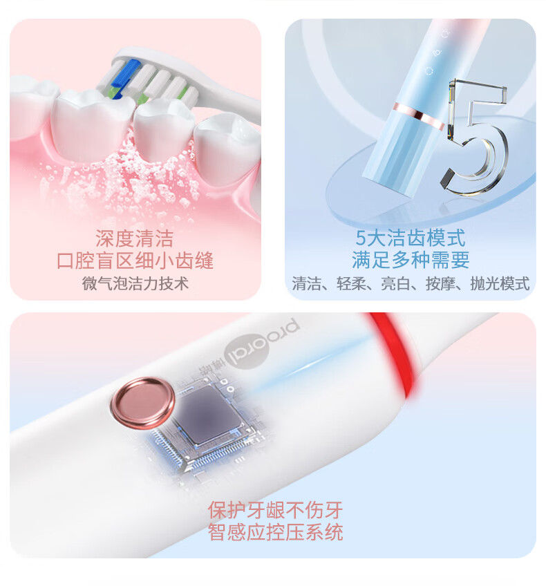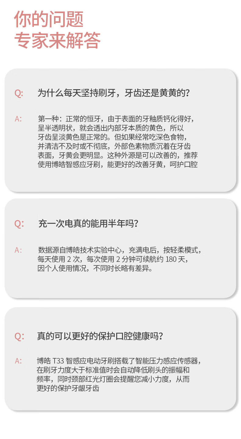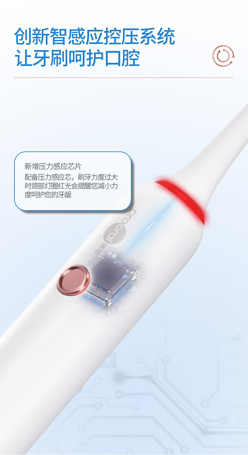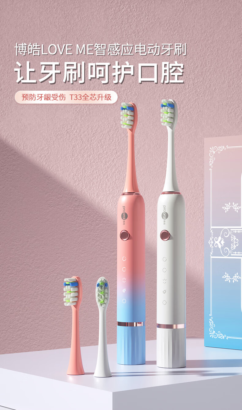 博皓(prooral)声波电动牙刷护龈压感提醒 自动牙刷成人充电式 情侣款 生日礼物T33 白色