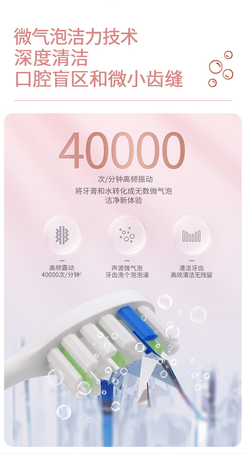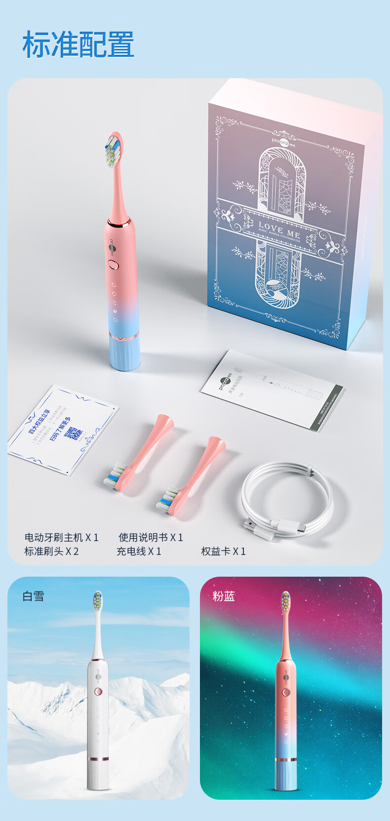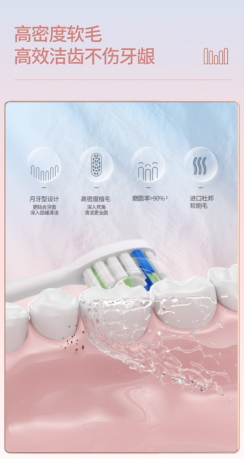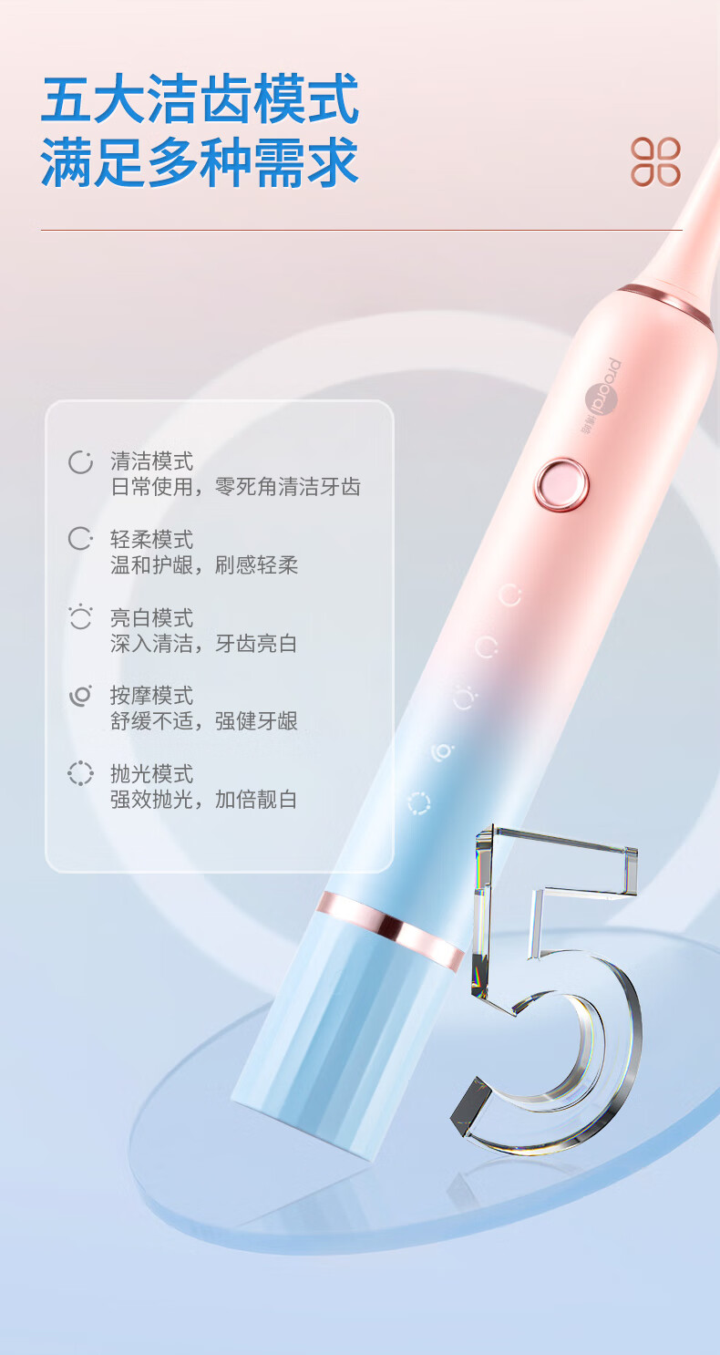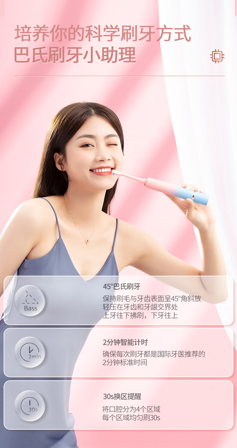博皓(prooral)声波电动牙刷护龈压感提醒 自动牙刷成人充电式 情侣款 生日礼物T33 白色