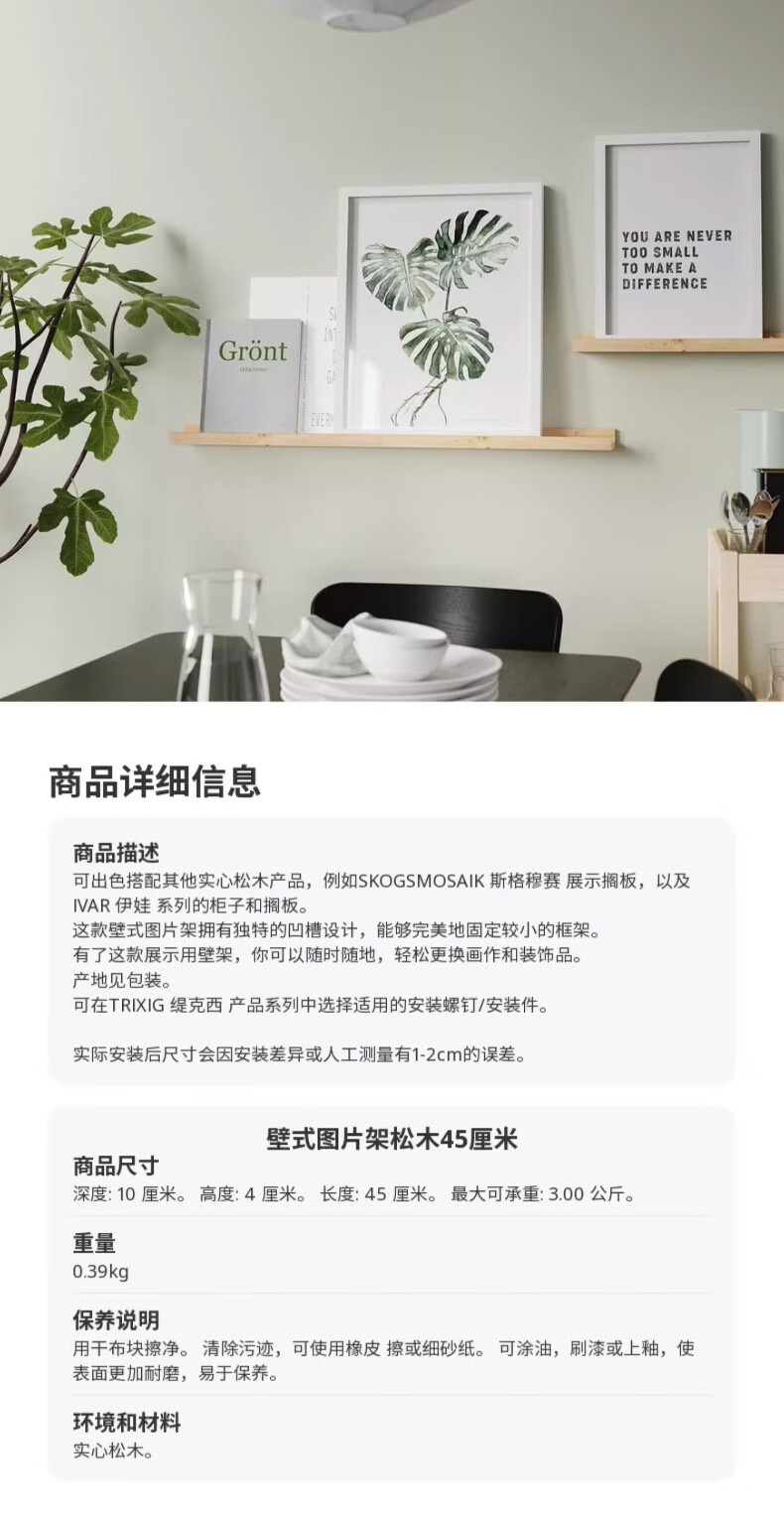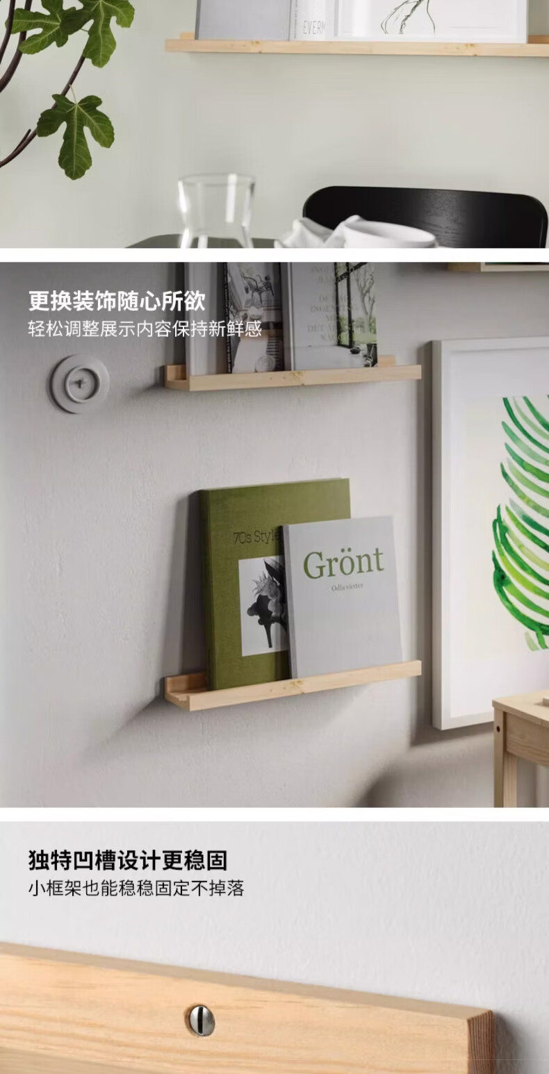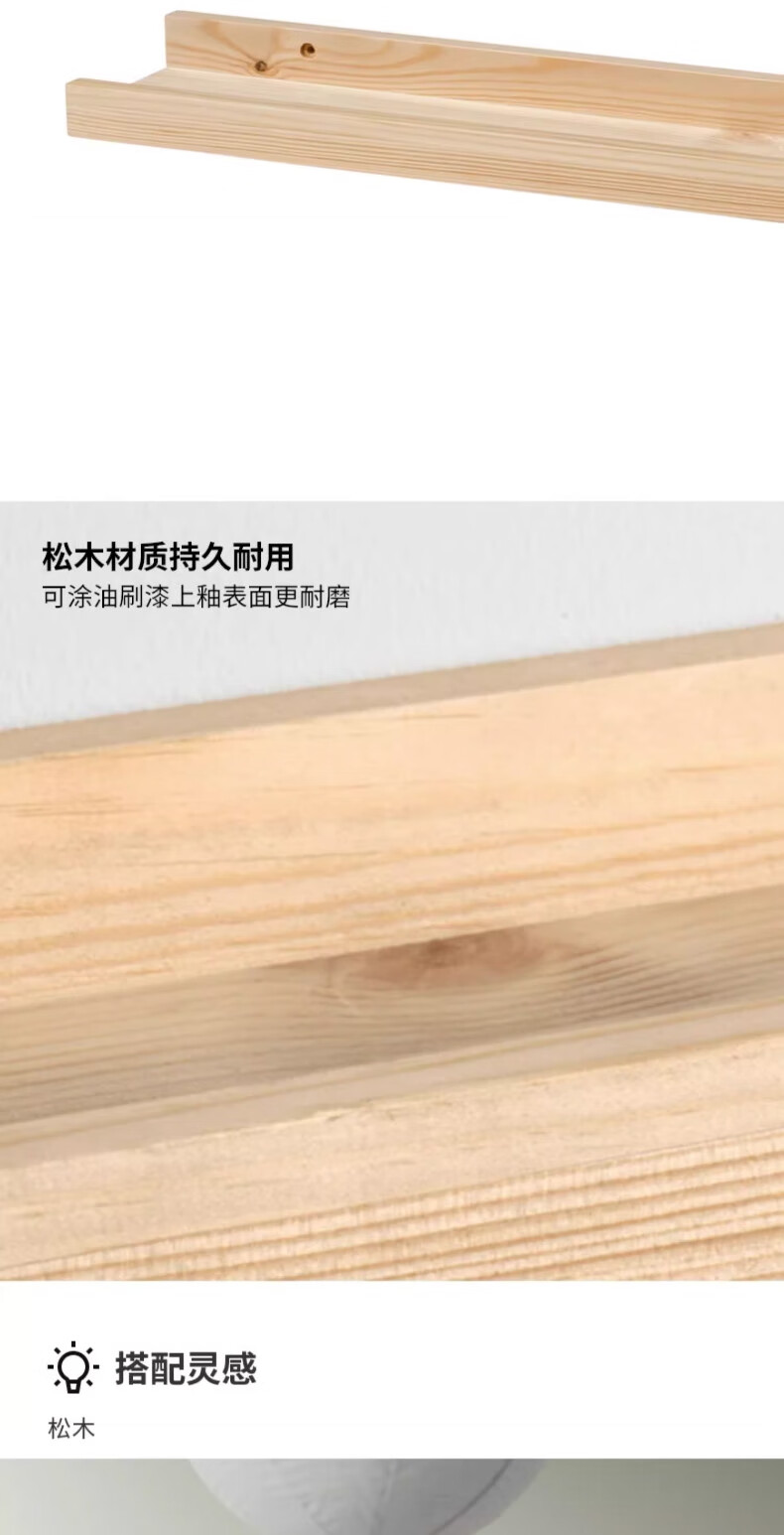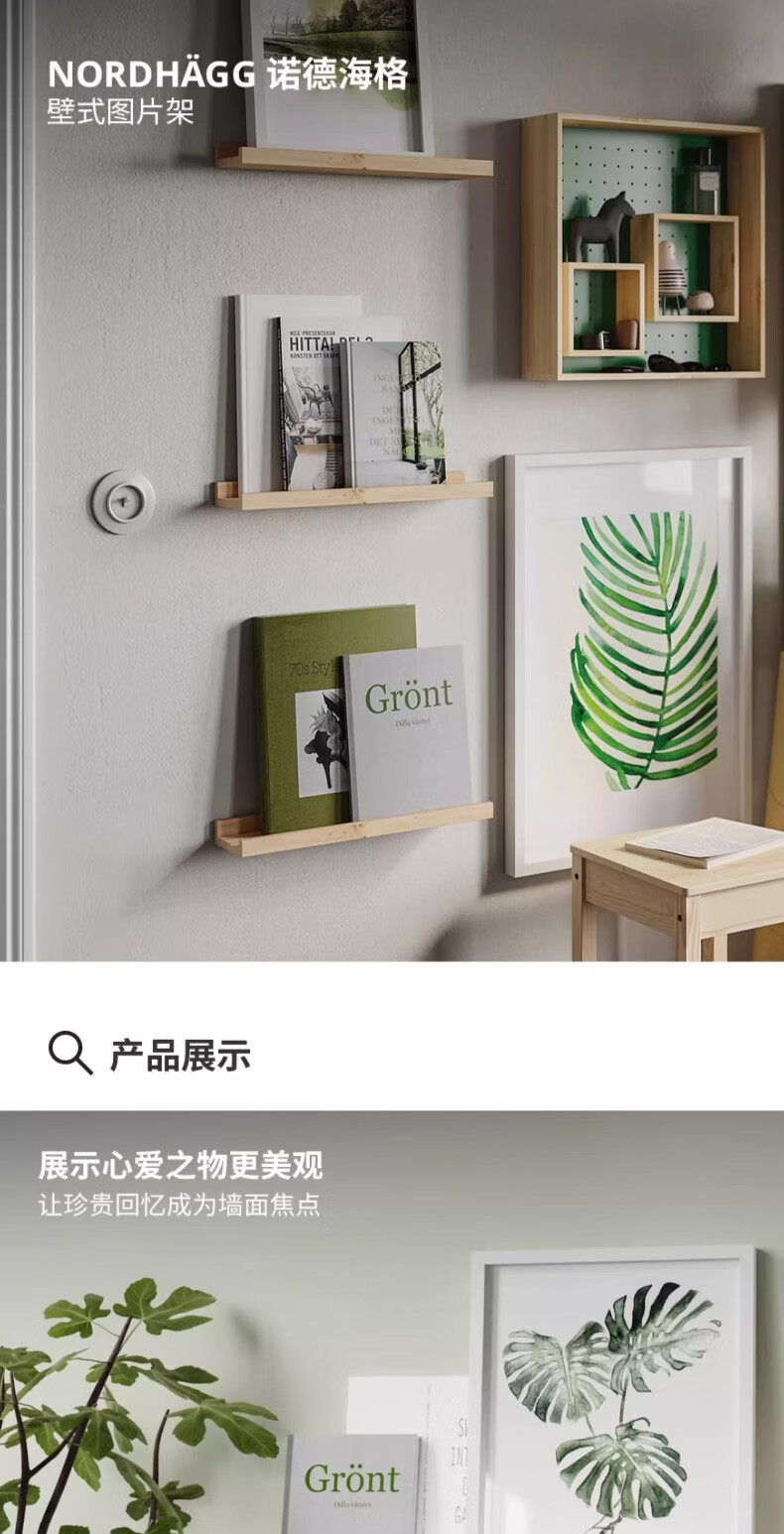 宜家(IKEA)NORDHAGG诺德海格壁式图片架隔板墙面置物架家用 松木壁式图片架45cm