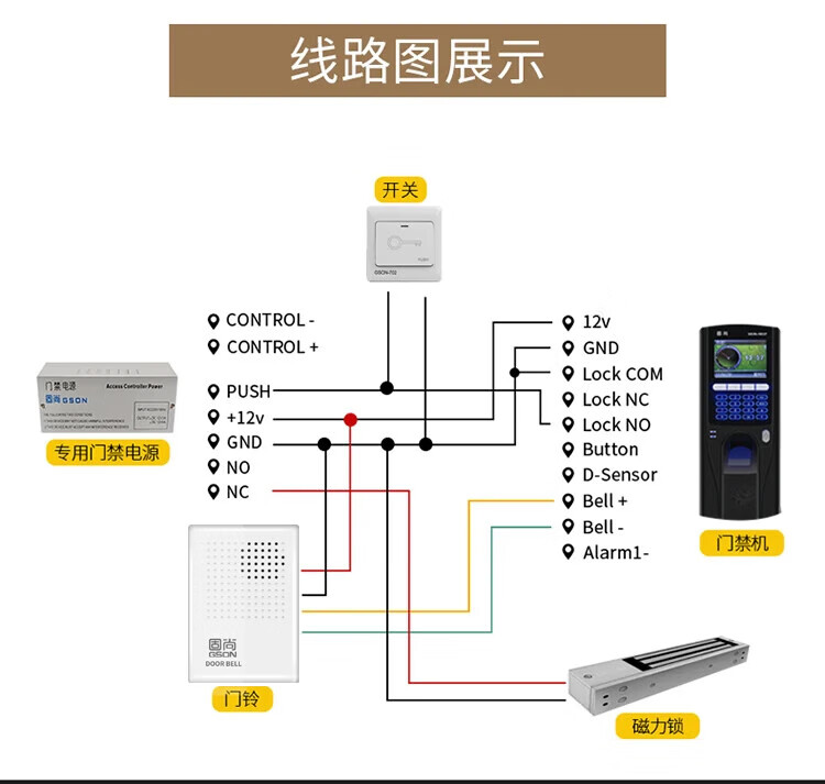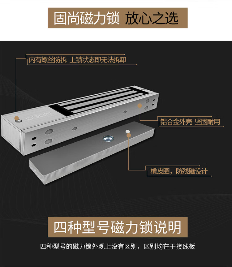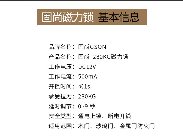 GS固尚GSON电磁锁磁力锁门禁单门智能强吸力电控锁门禁考勤机通用
