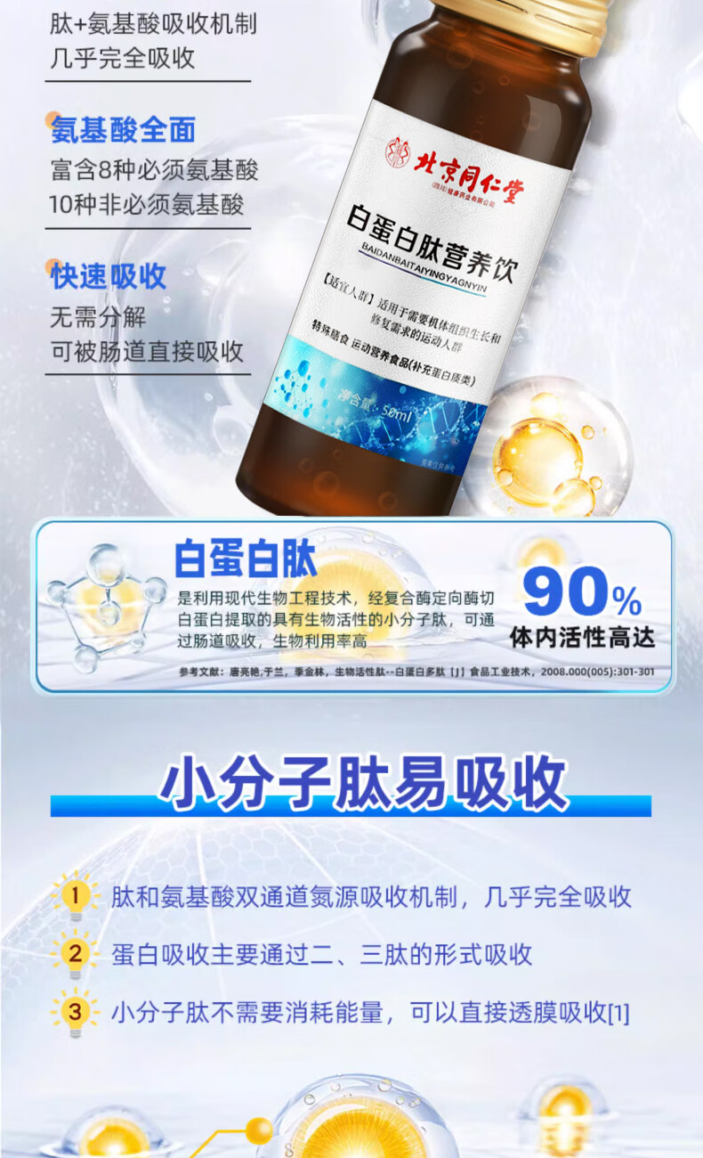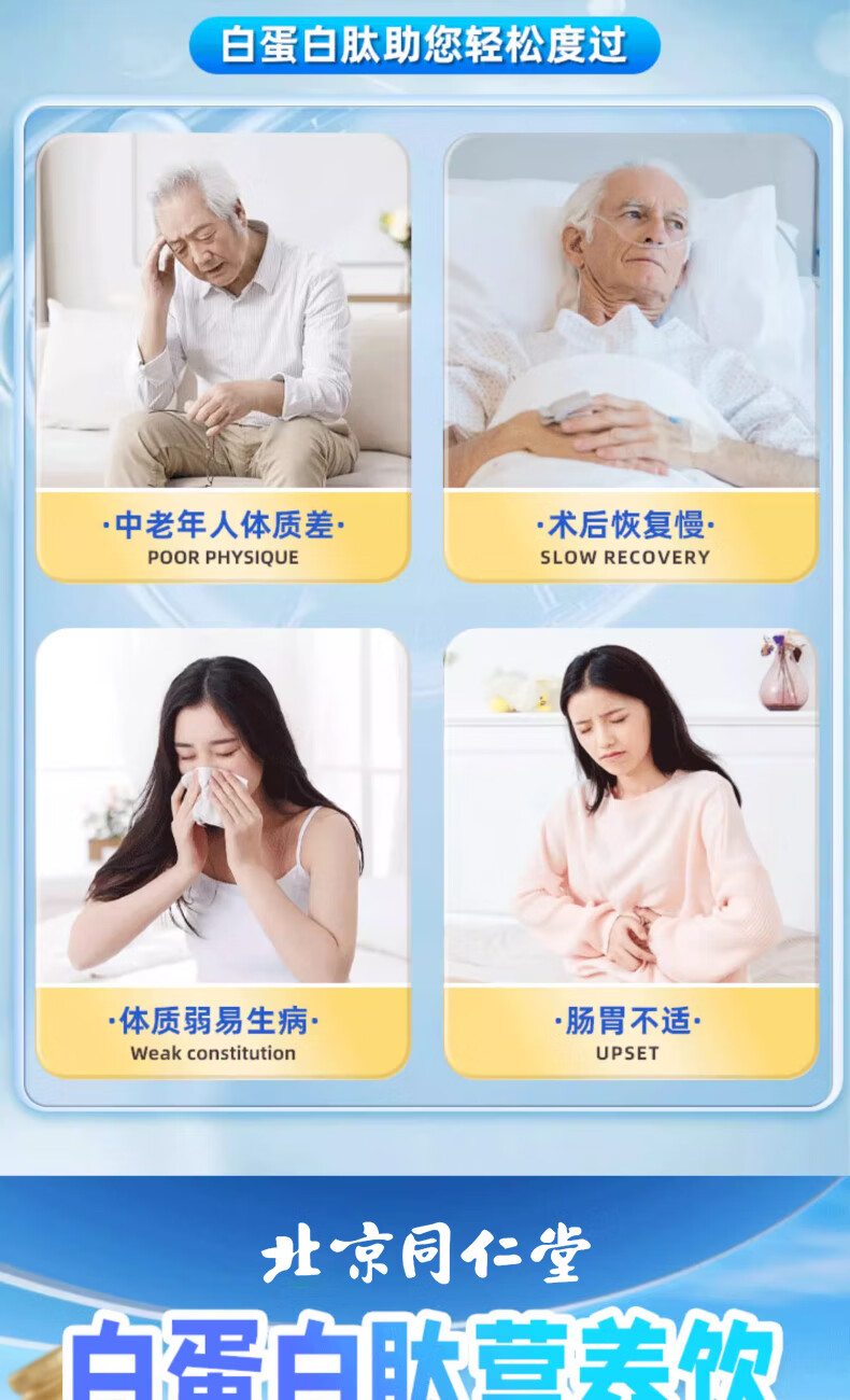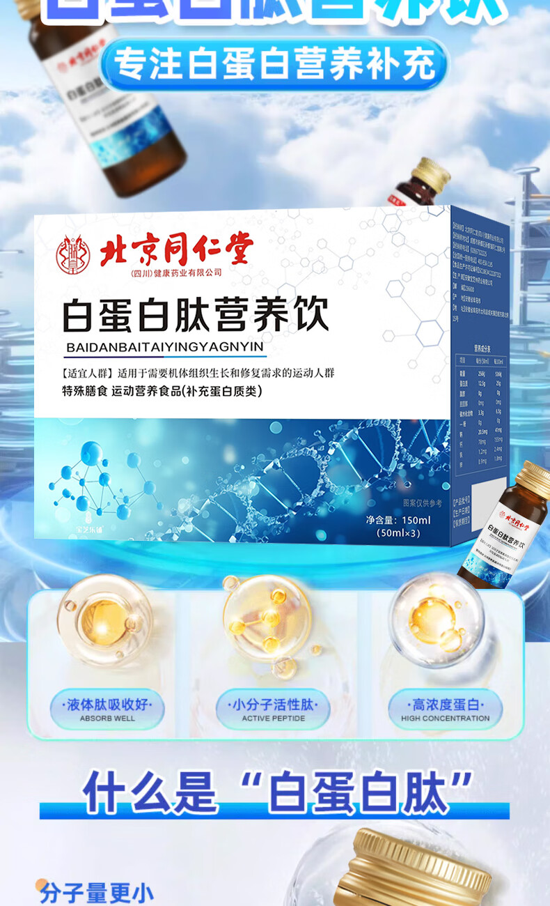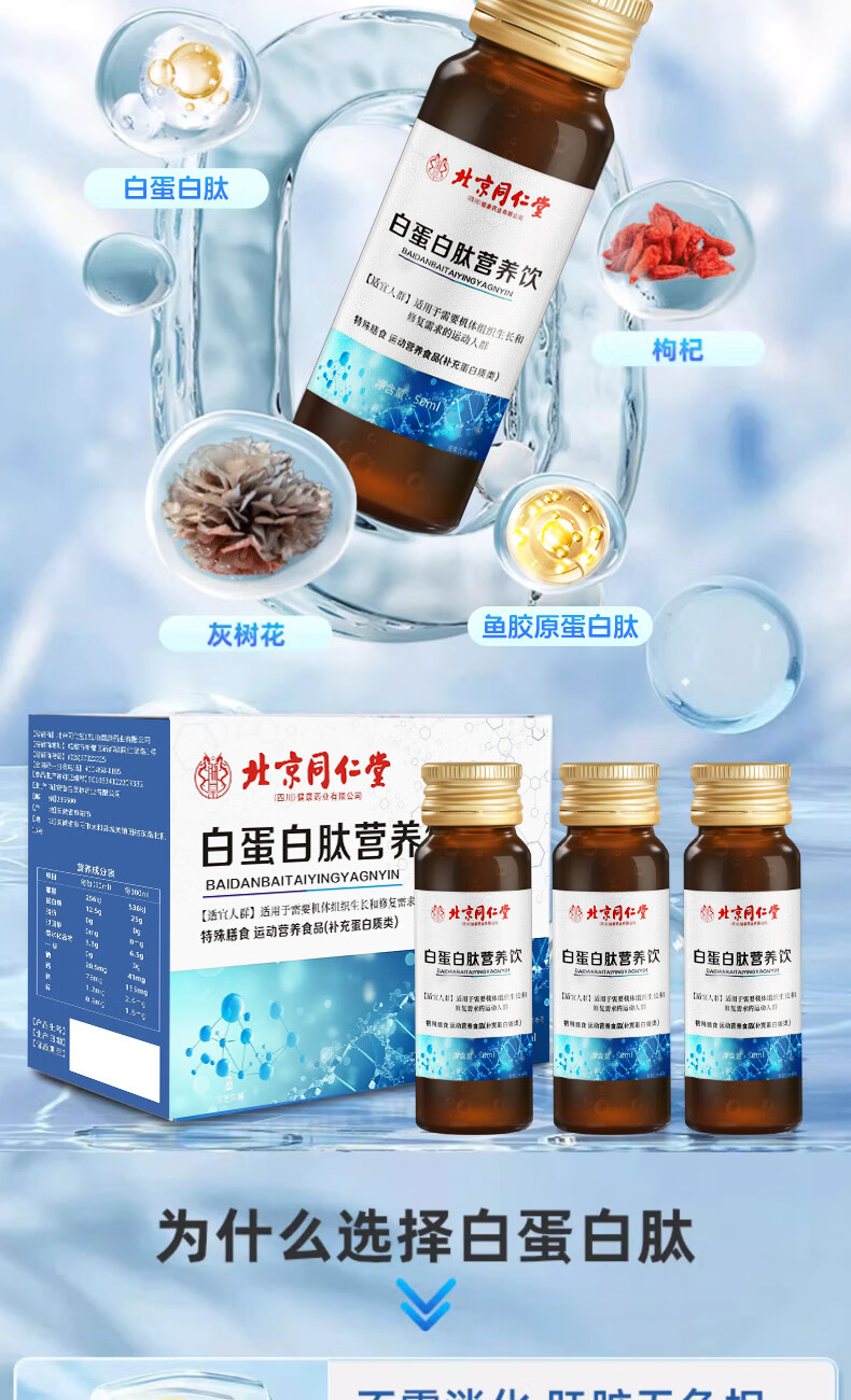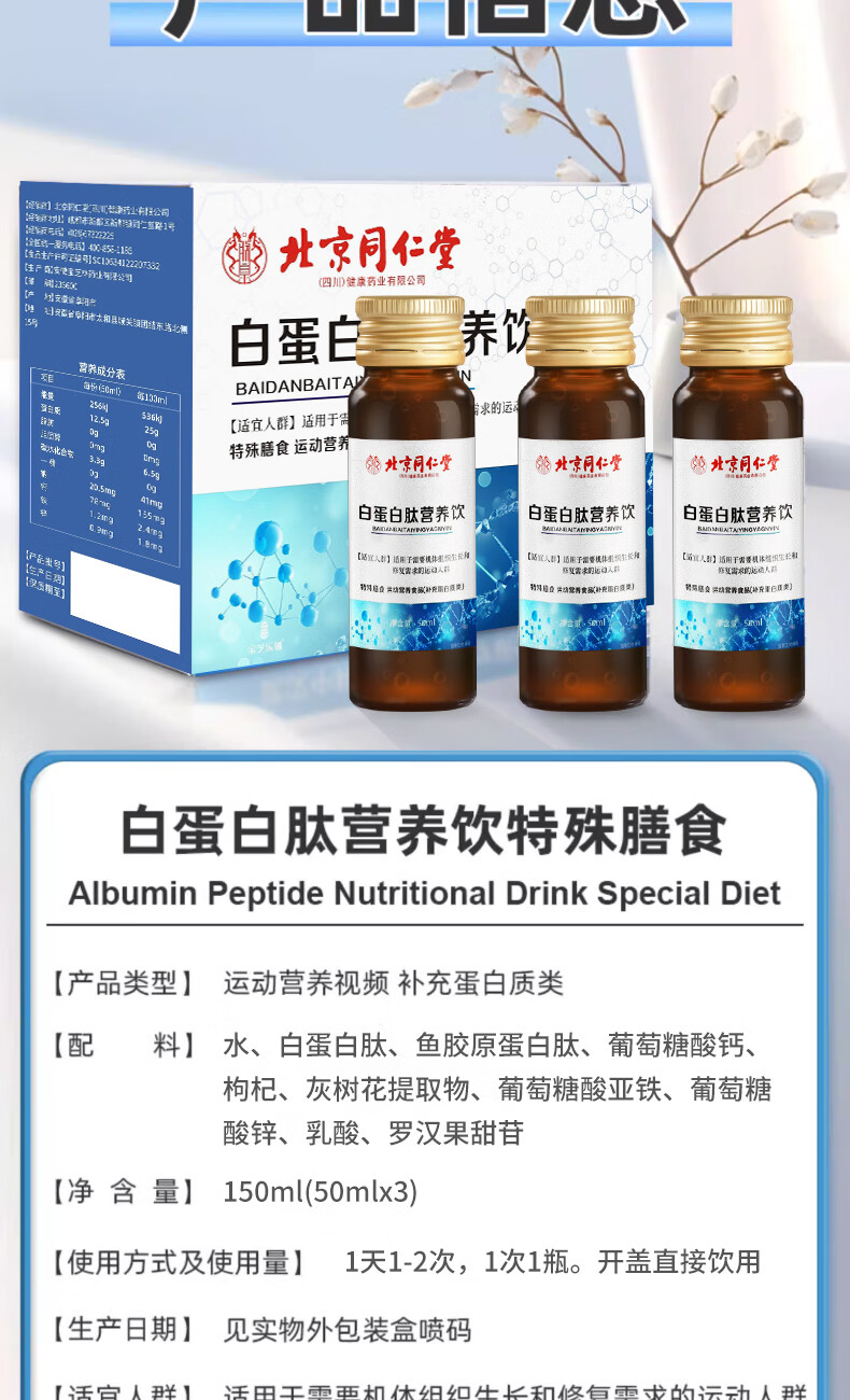 北京同仁堂白蛋白肽口服液150ml氨基酸增强免疫力中老年人手术前后营养补充饮品送礼佳品