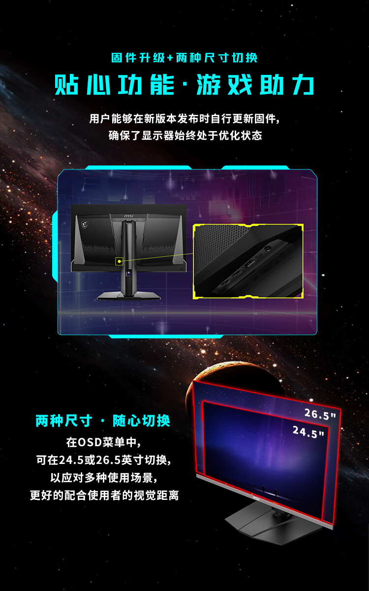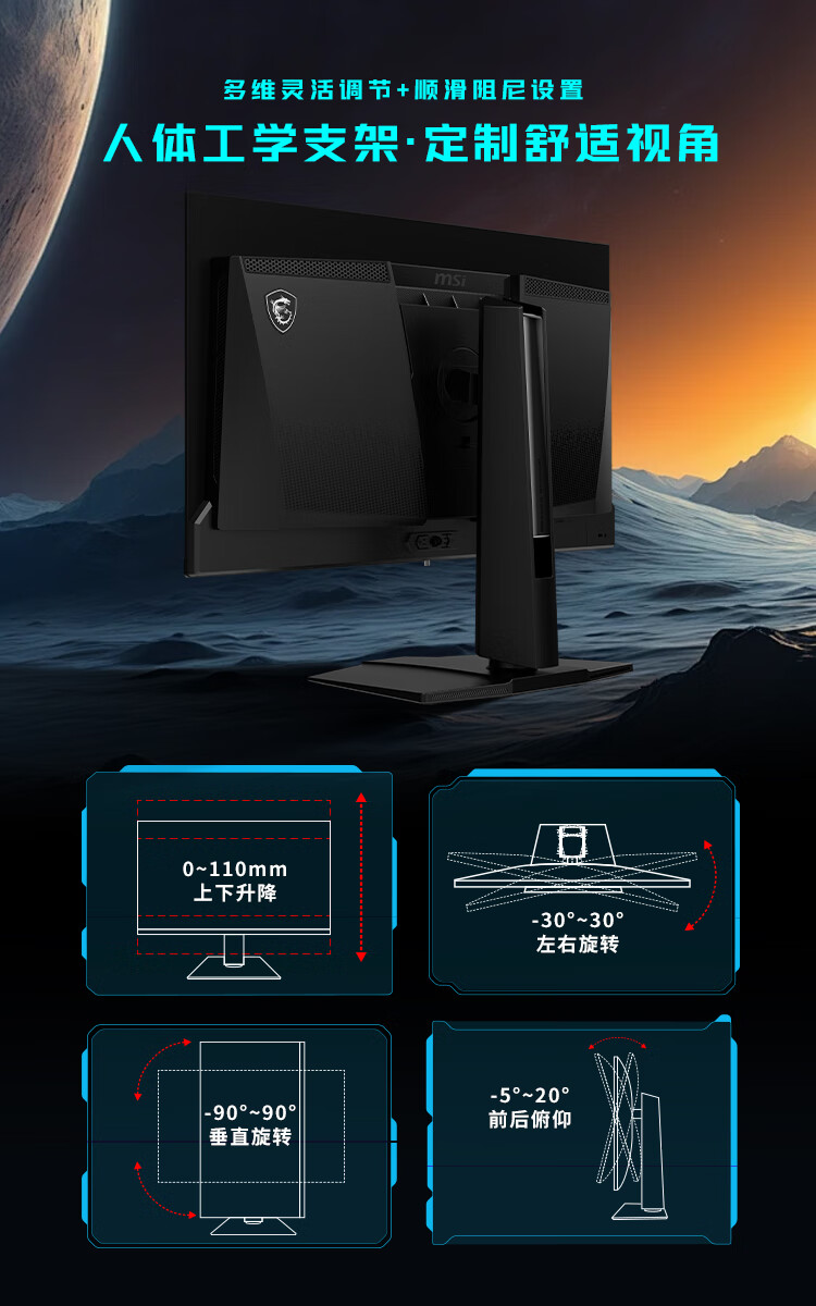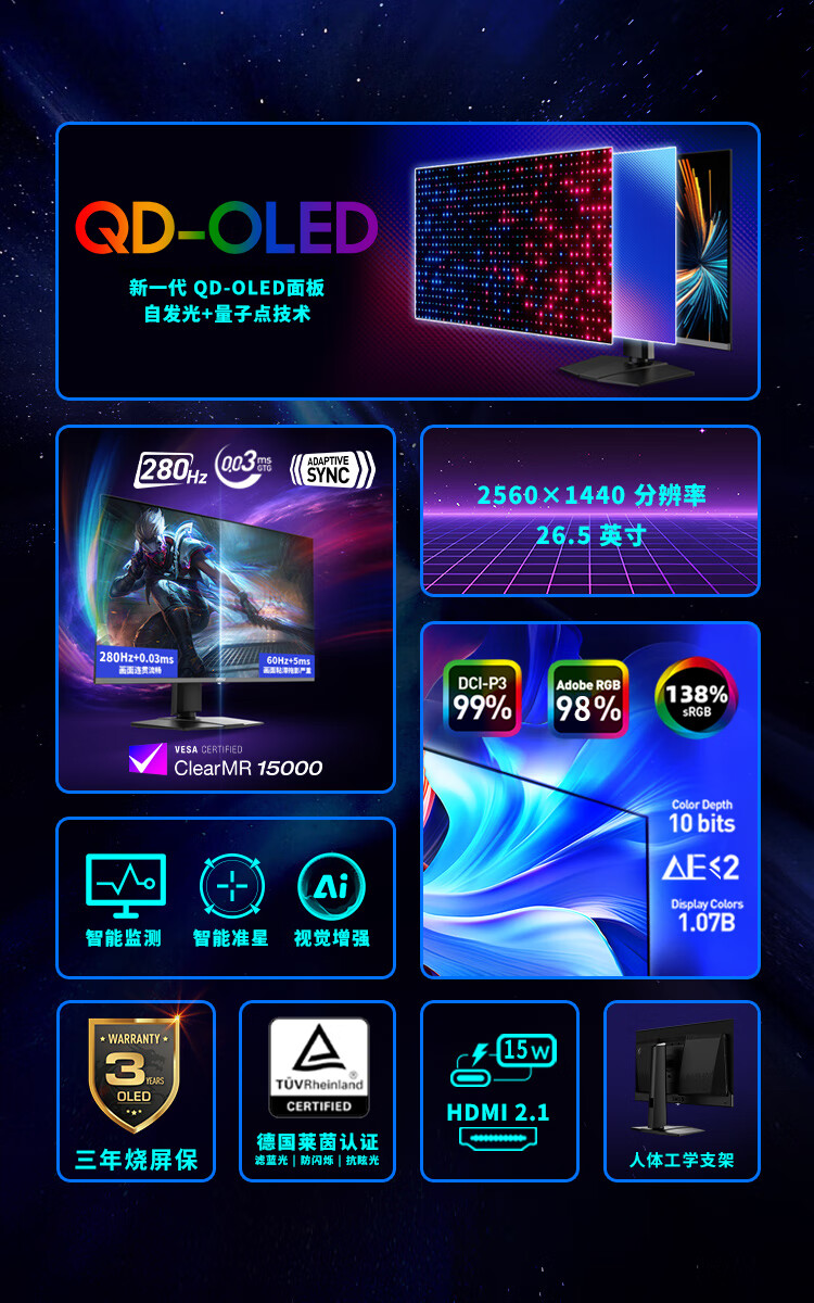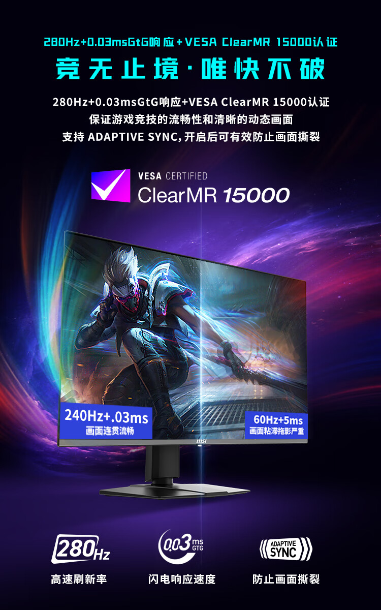 微星(MSI)27英寸2K280Hz 量子点OLED显示器 0.03ms(GTG) HDR400游戏电竞显示屏MAG 271QP QD-OLED X28流光