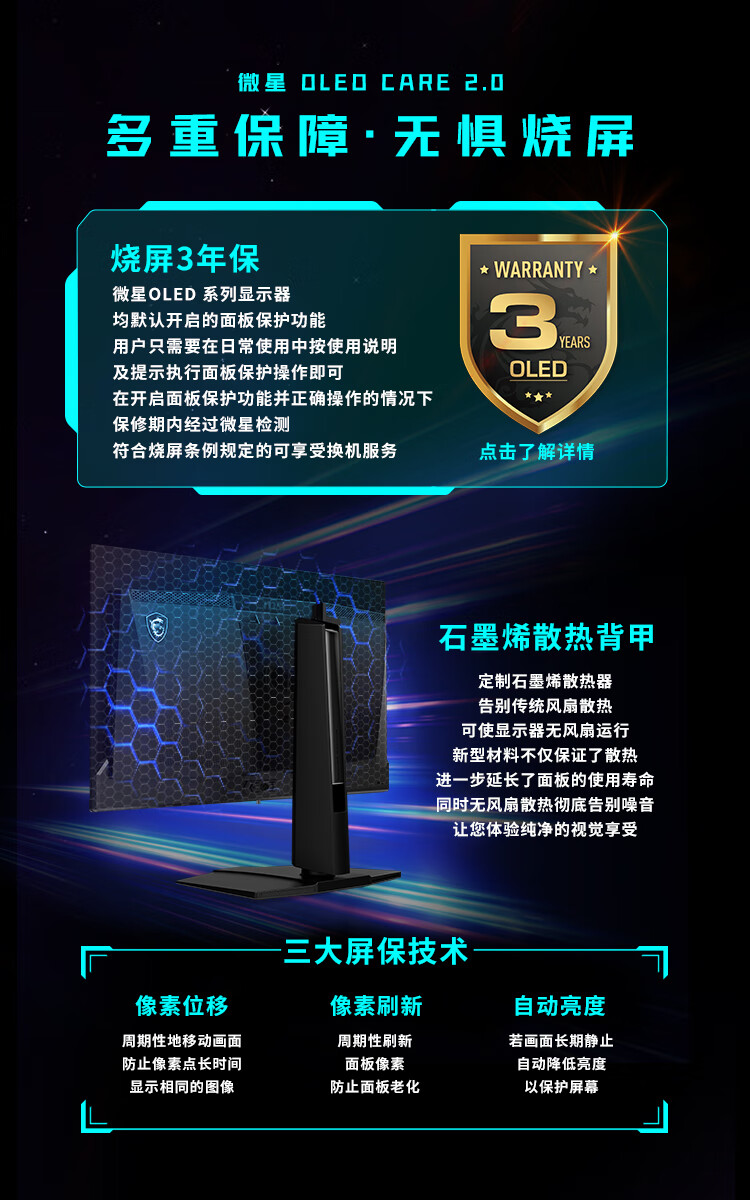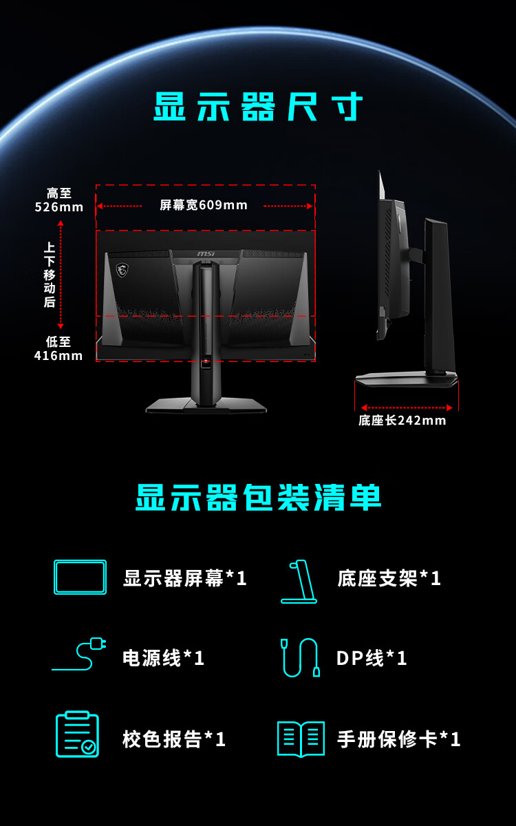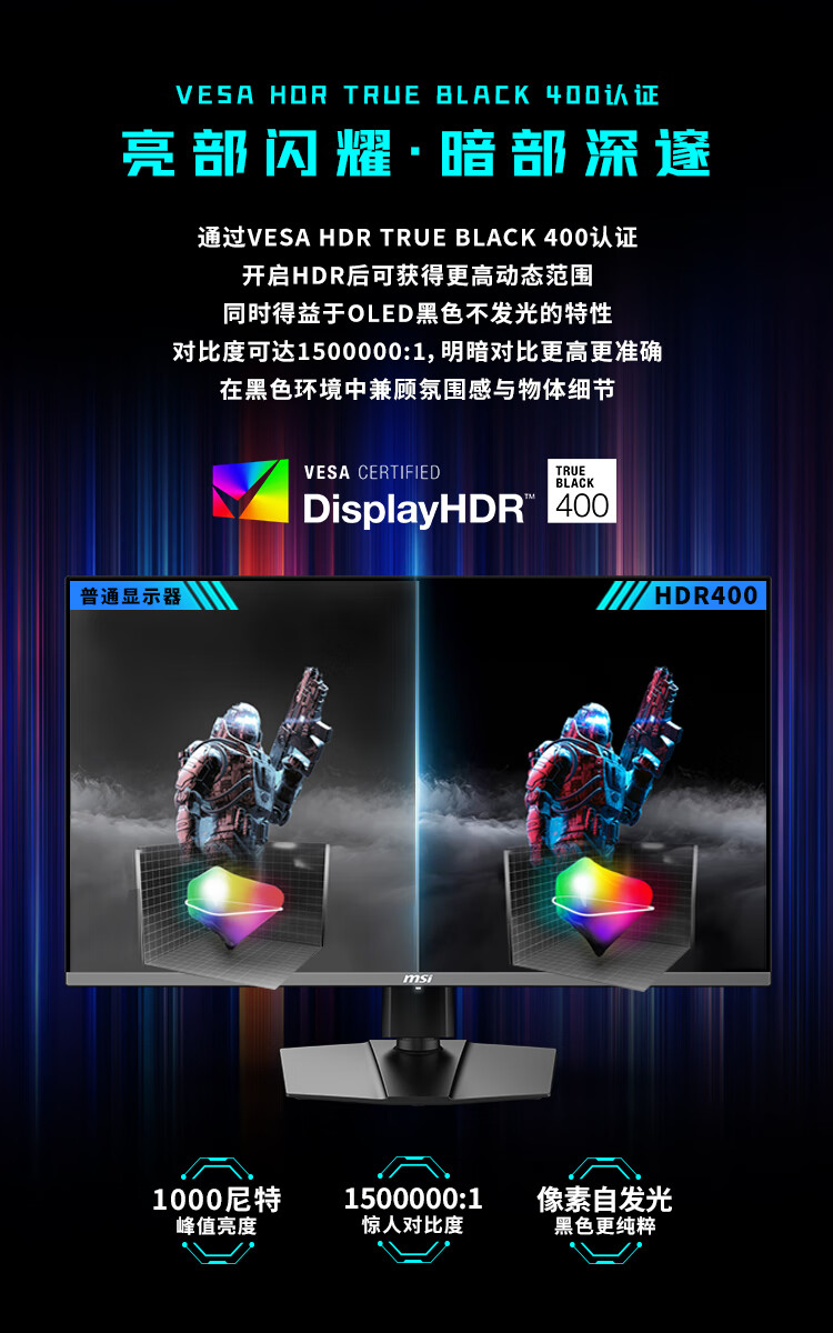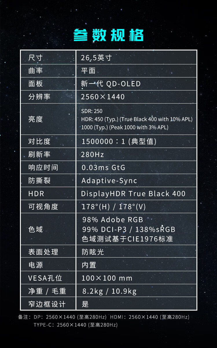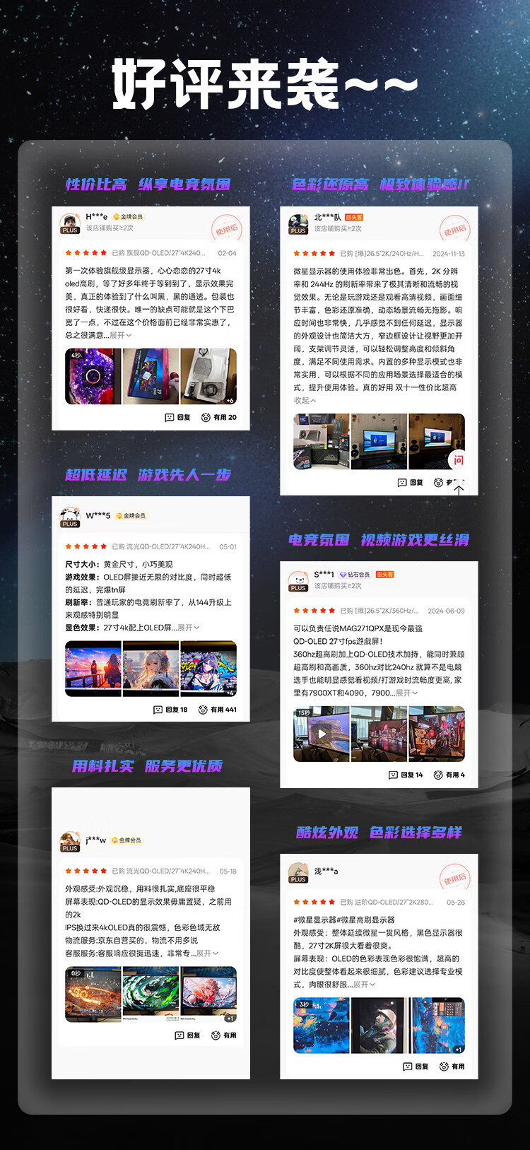 微星(MSI)27英寸2K280Hz 量子点OLED显示器 0.03ms(GTG) HDR400游戏电竞显示屏MAG 271QP QD-OLED X28流光