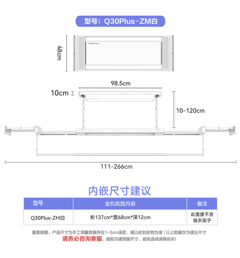 好太太(Hotata)电动晾衣架隐形升降阳台全隐藏式智能晾衣机Q30 三折叠空间大师
