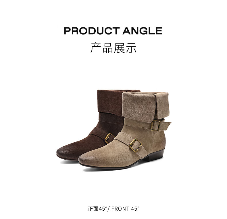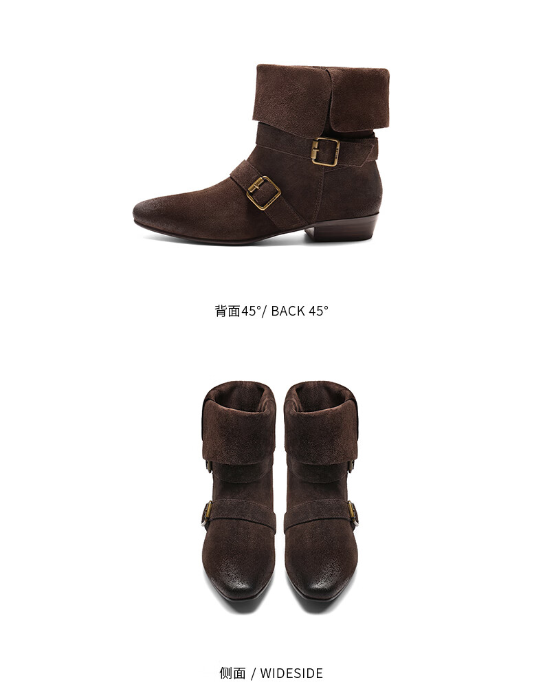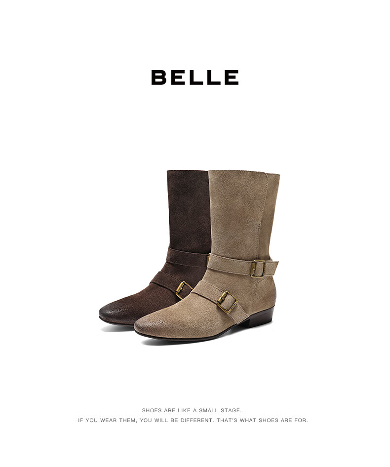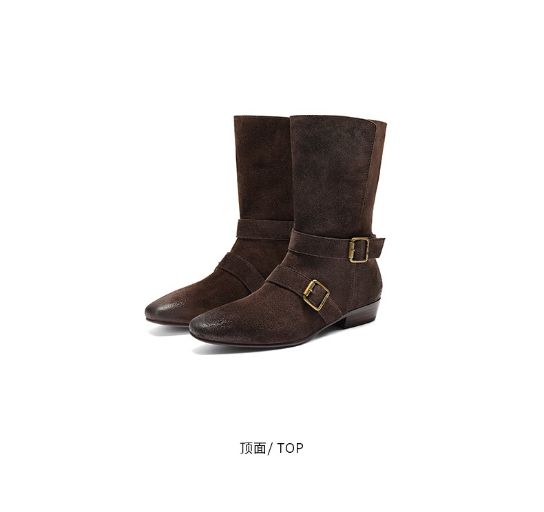 百丽(Belle)复古擦色时装靴女2025冬新商场同款柔软时尚西部靴BFB62DS5 啡色 37