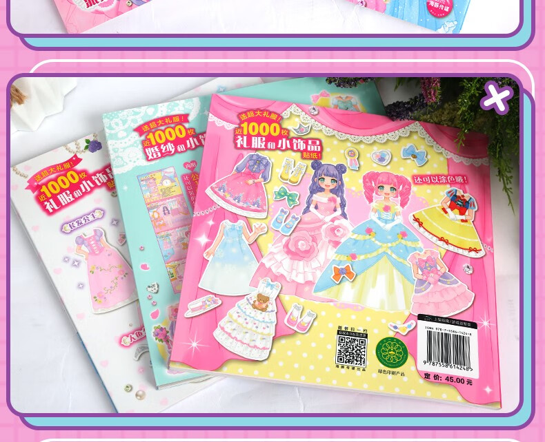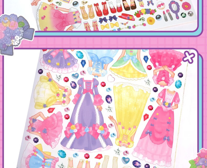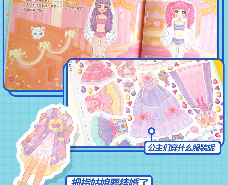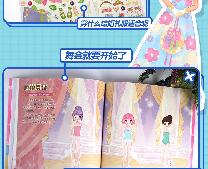 时尚女孩公主换装贴纸书换衣服趣味粘贴贴画书3-6岁儿童动脑益智力玩具卡通涂色书幼儿童换装秀专注力 【全套8本】公主换装贴纸书