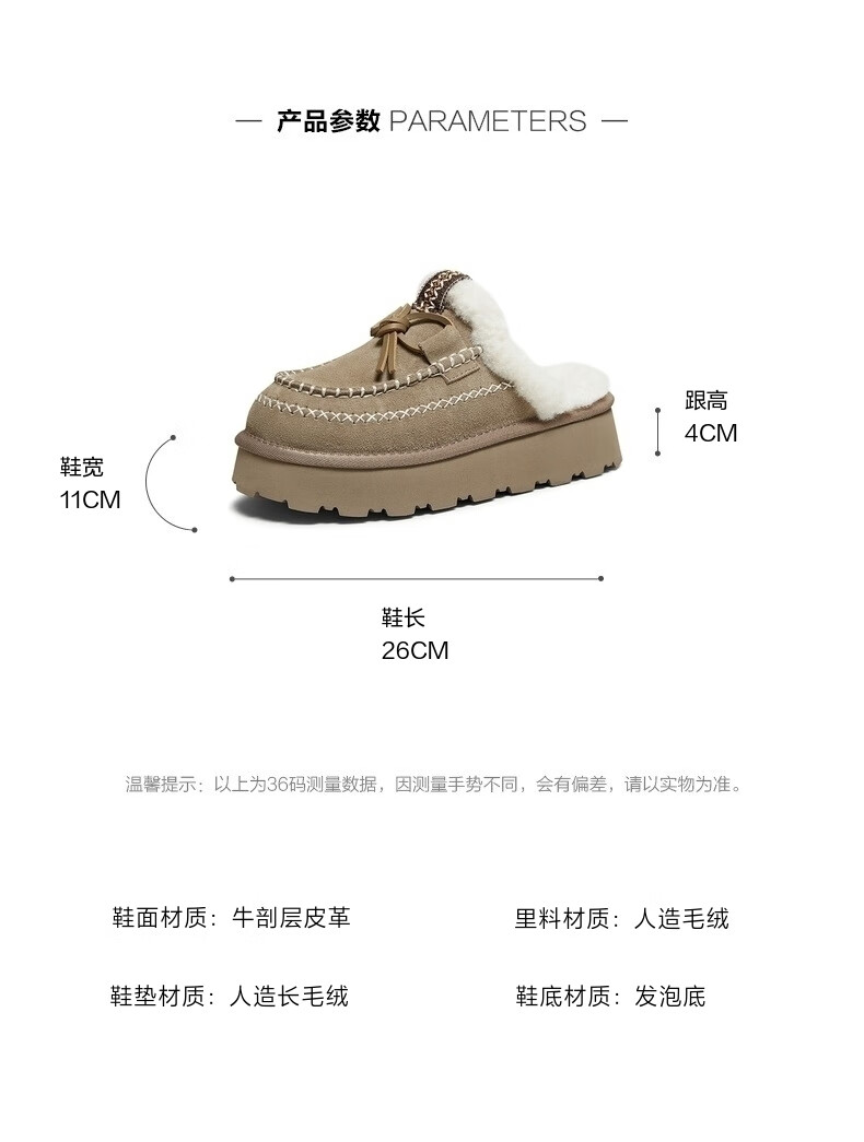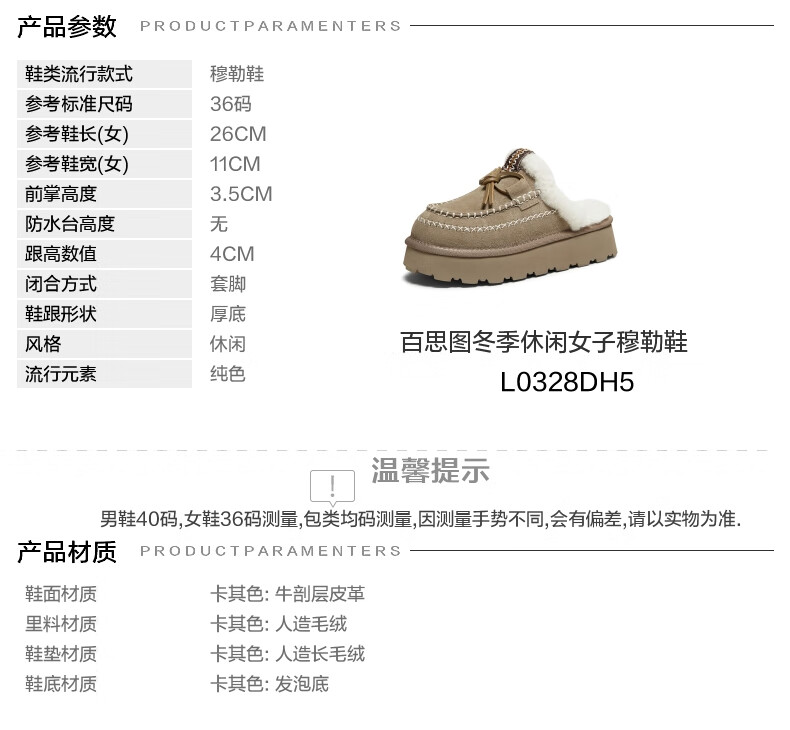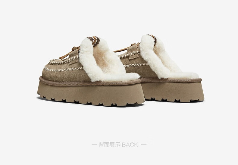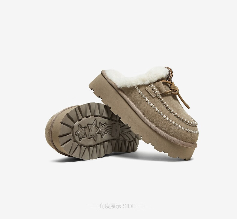 百思图2025冬新款毛毛鞋勃肯鞋雪地靴厚底加绒女外穿拖鞋L0328DH5 卡其色 34