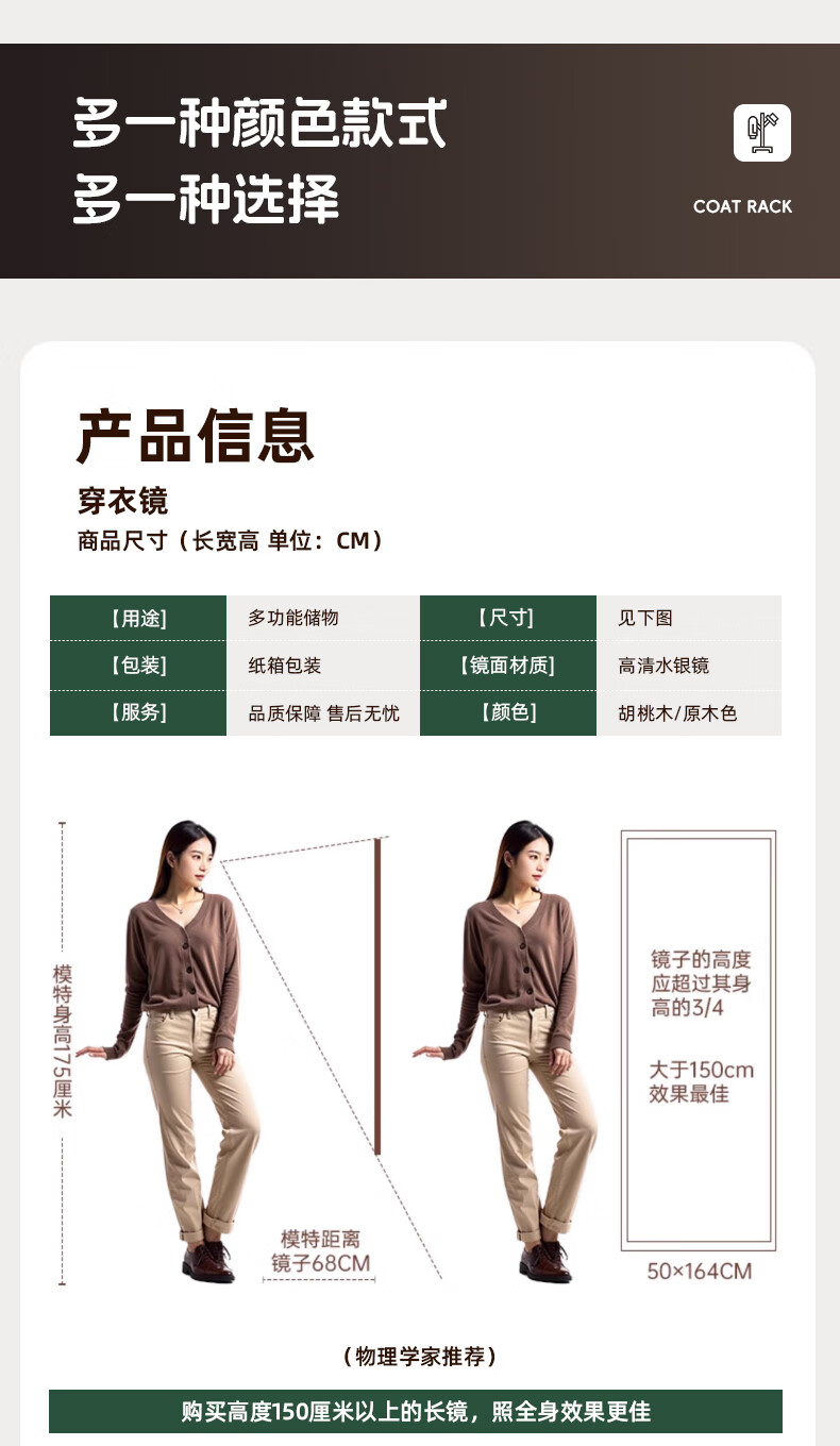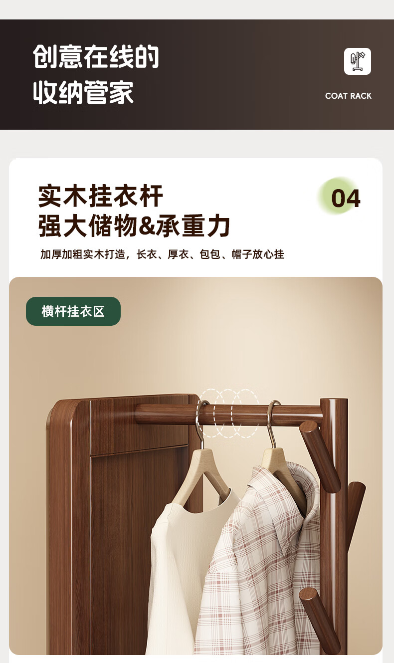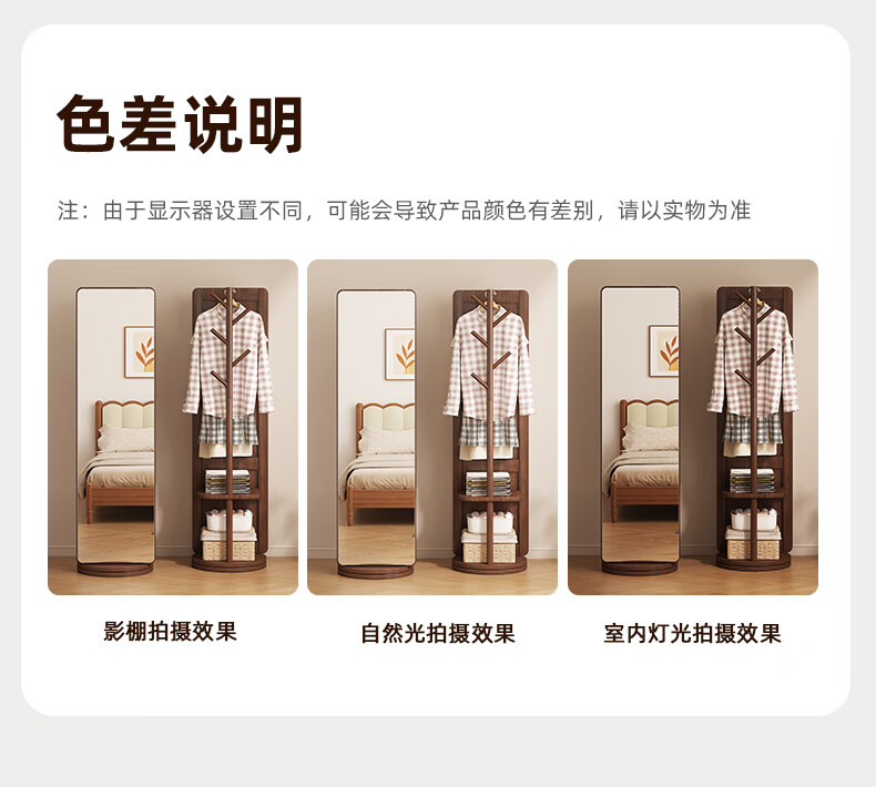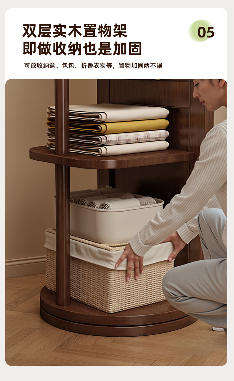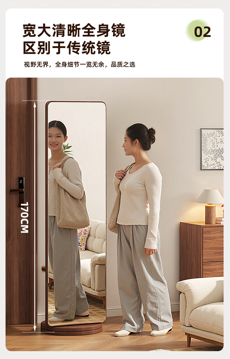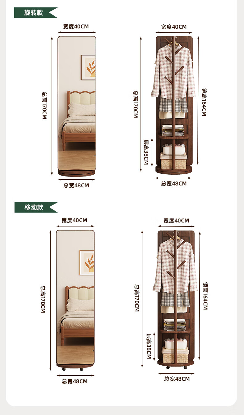 顾家家居镜子全身镜落地镜穿衣镜挂衣架衣帽架一体可移动可旋转试衣镜 【实木双层旋转款】胡桃色 【免费送货上门】
