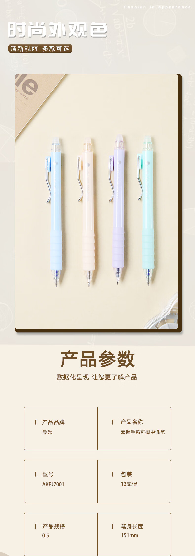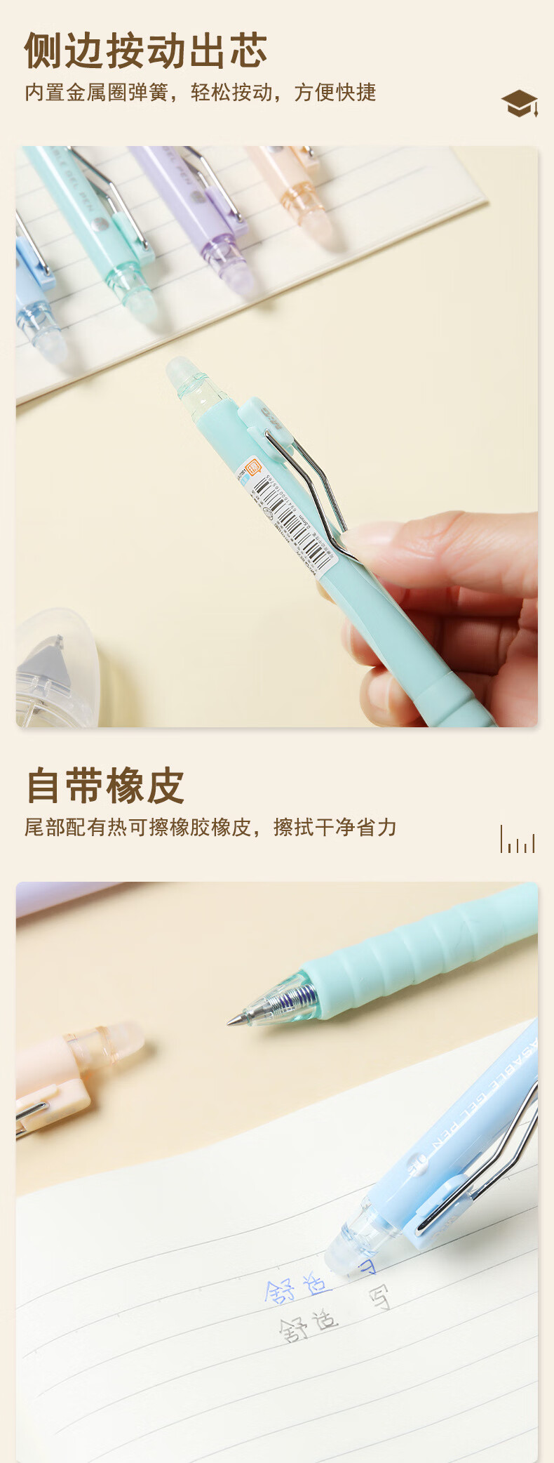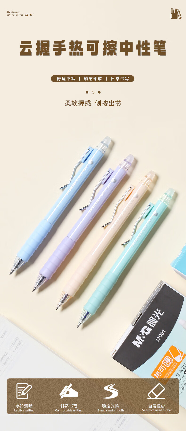 晨光(M&G)晨光热可擦0.5按动中性笔云握手三年级小学生黑色晶蓝热敏子弹头 2支【晶蓝】送2个专用橡皮 晨光