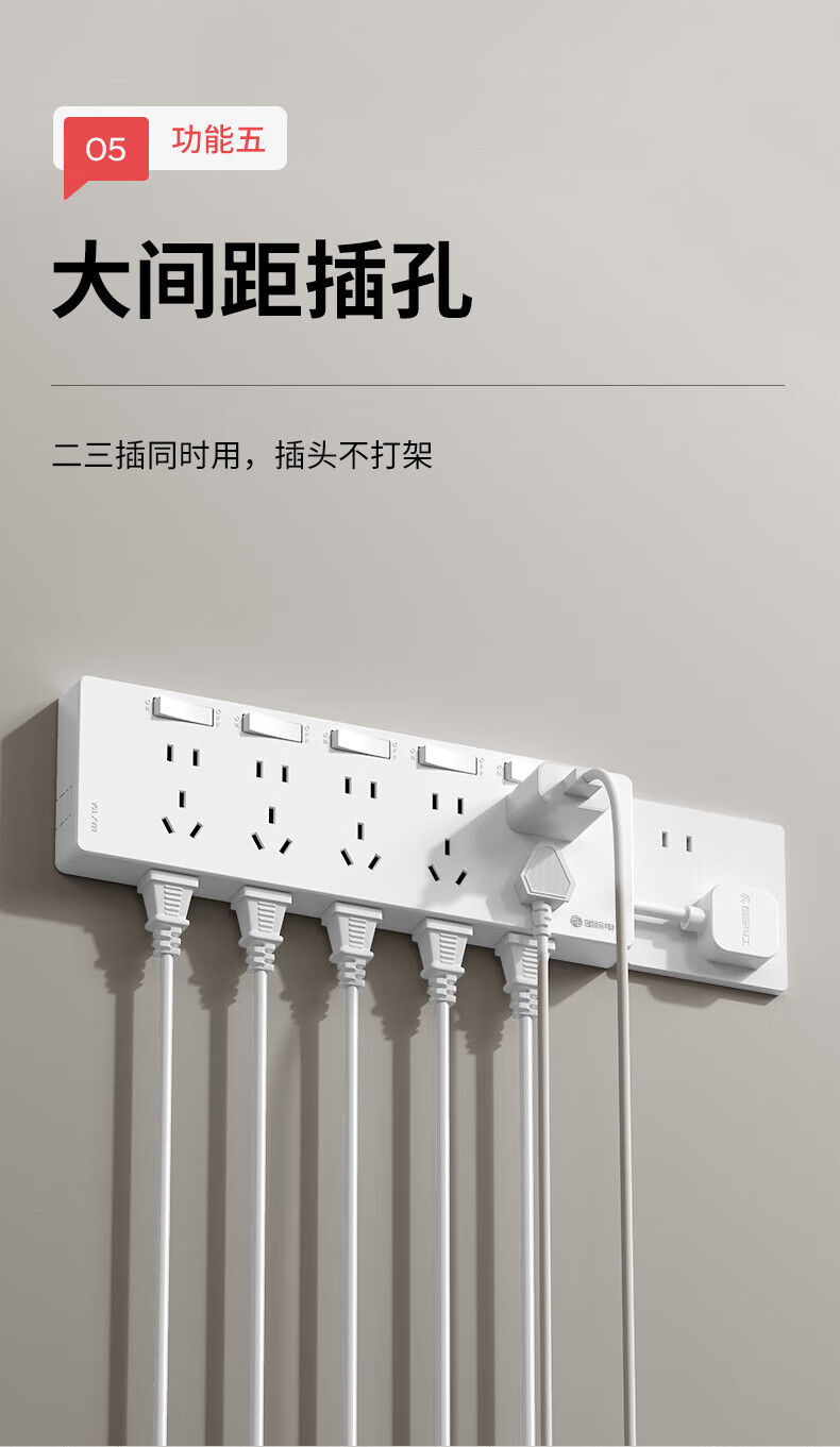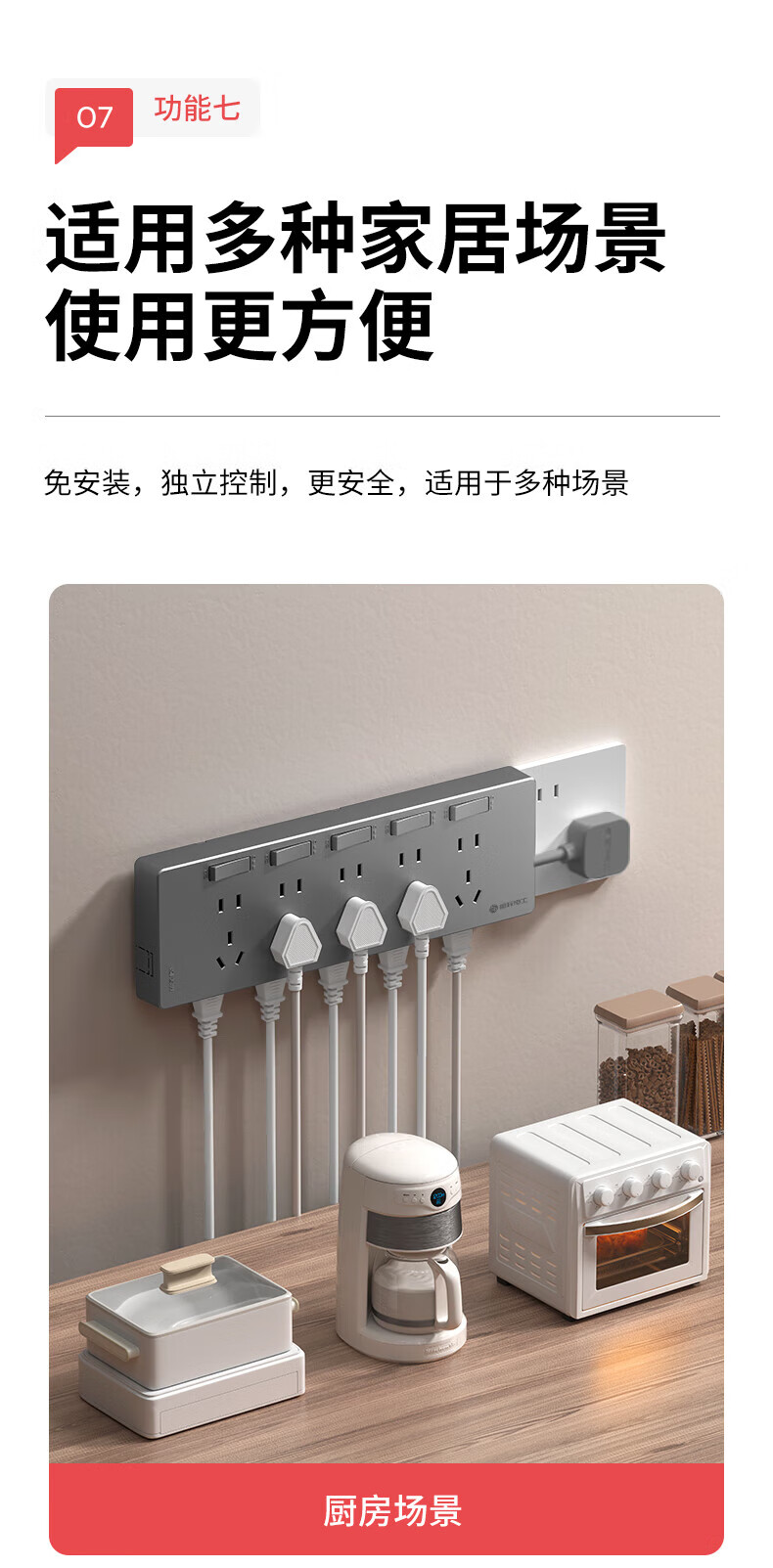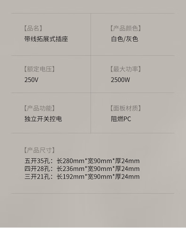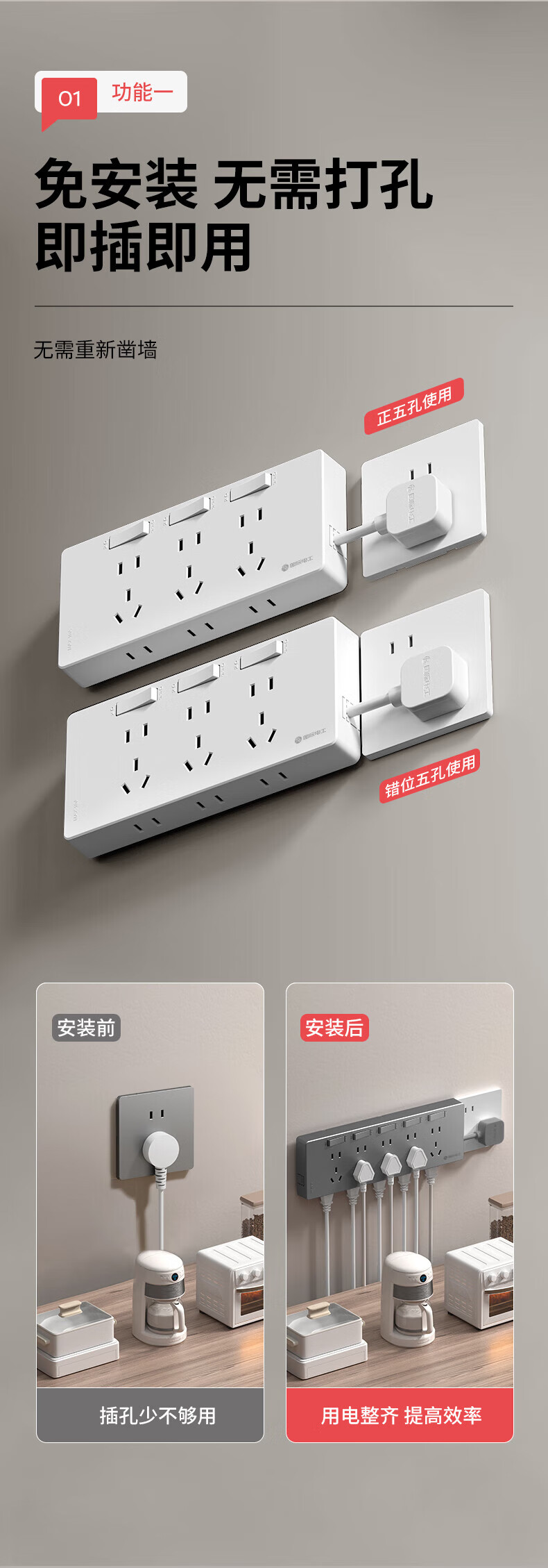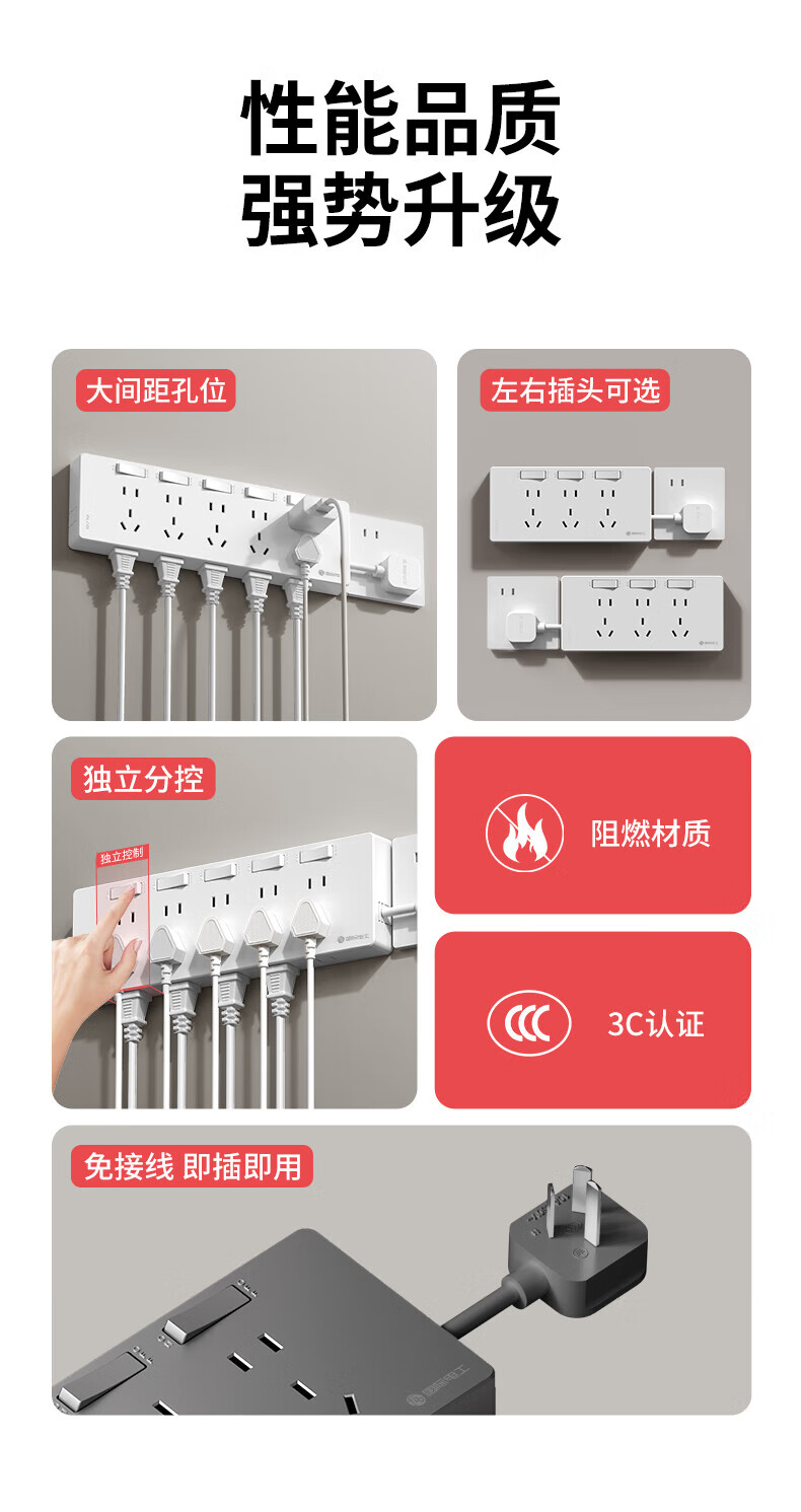 国际电工带短线拓展插座免打孔厨房专用排插转换器插头插座床头多功能面板 白色向右扩展-三开21孔【自带电源线 即插即用】