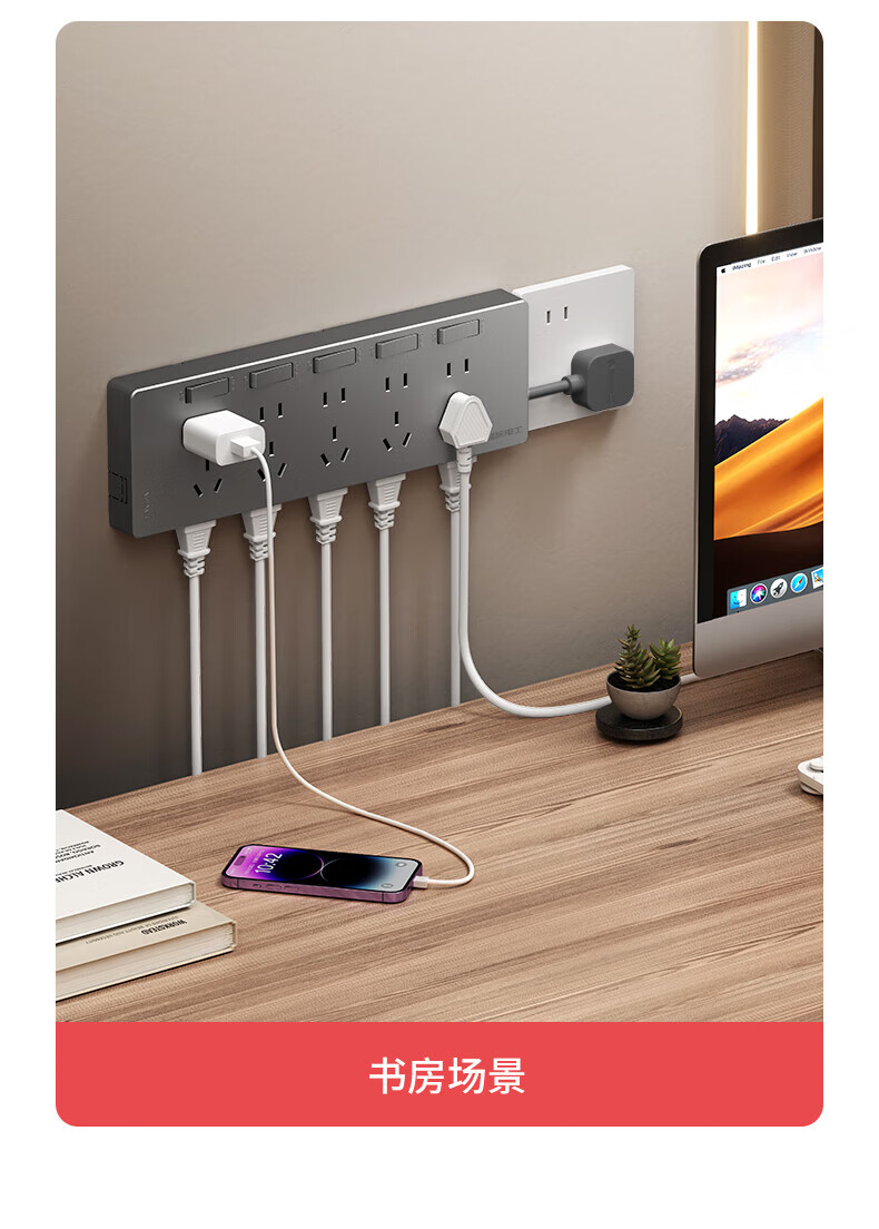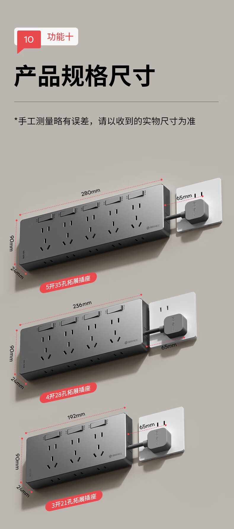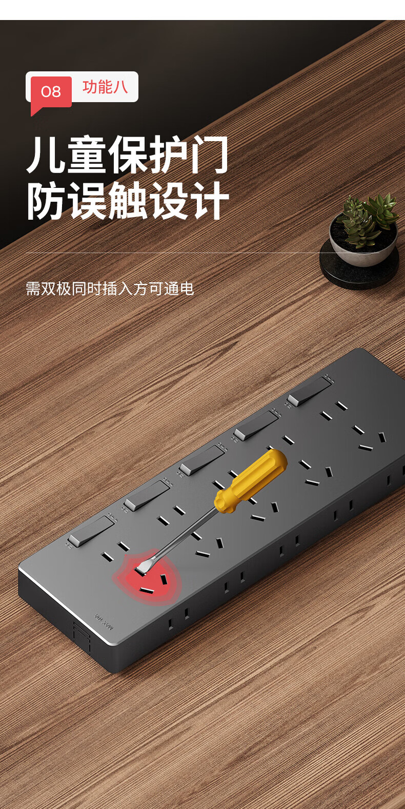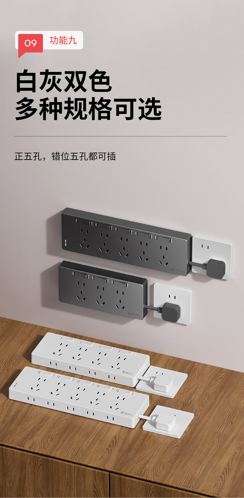 国际电工带短线拓展插座免打孔厨房专用排插转换器插头插座床头多功能面板 白色向右扩展-三开21孔【自带电源线 即插即用】