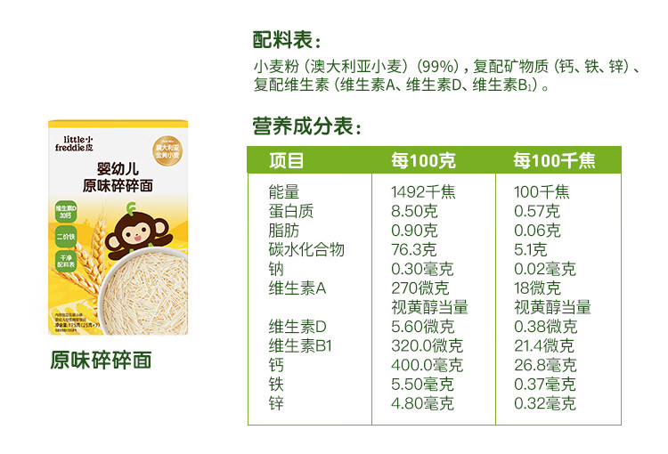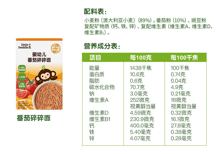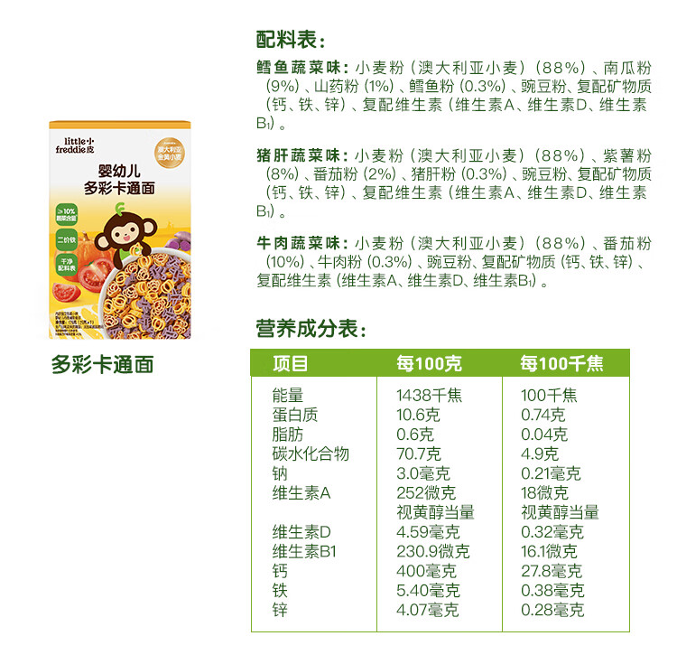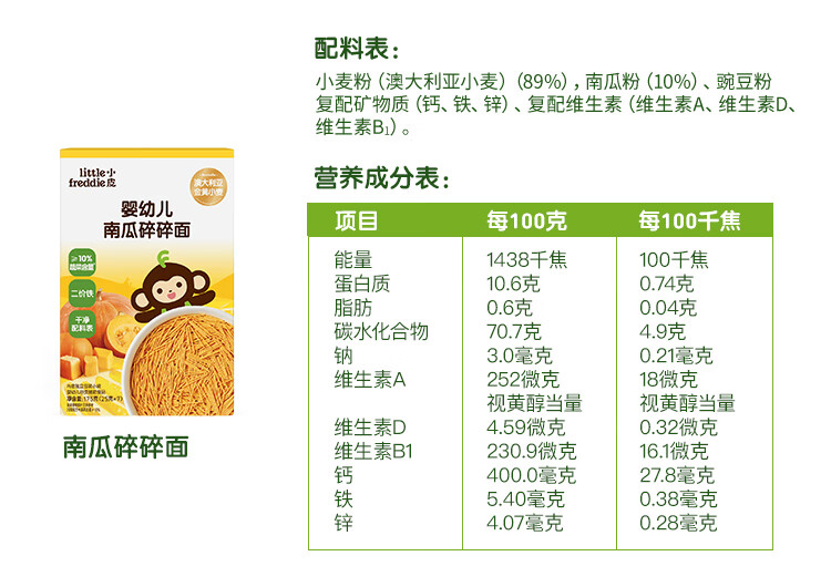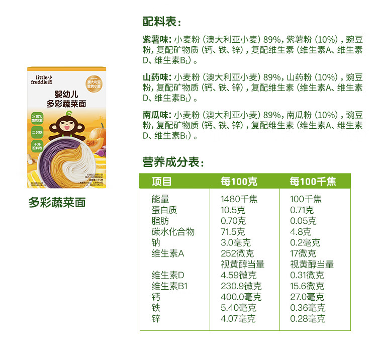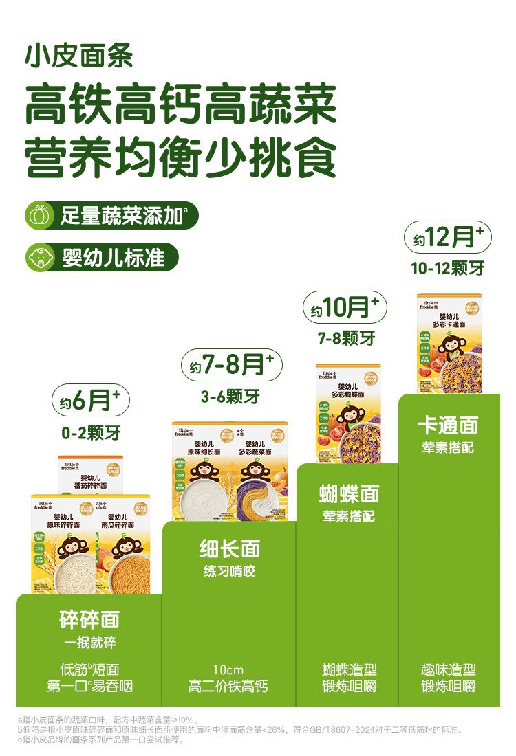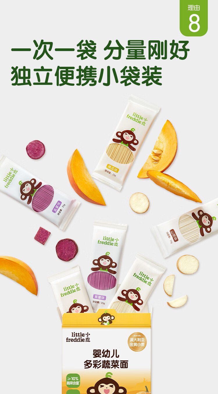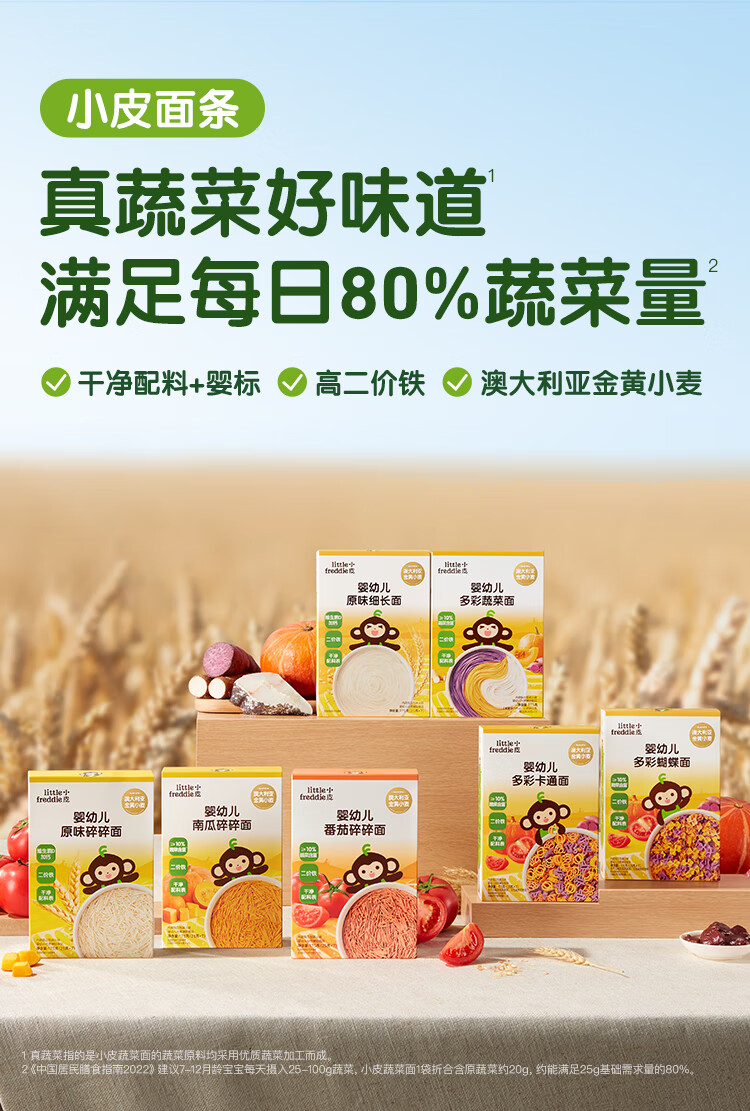 小皮(Little Freddie)婴儿宝宝面条婴幼儿碎碎面蝴蝶面 营养细面儿童面条含钙铁锌辅食 【7月+营养蔬菜】蔬菜面2+细长1