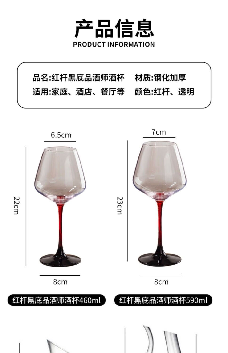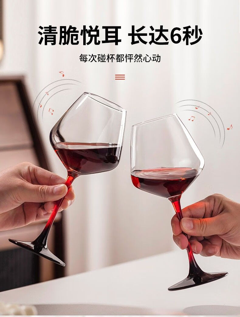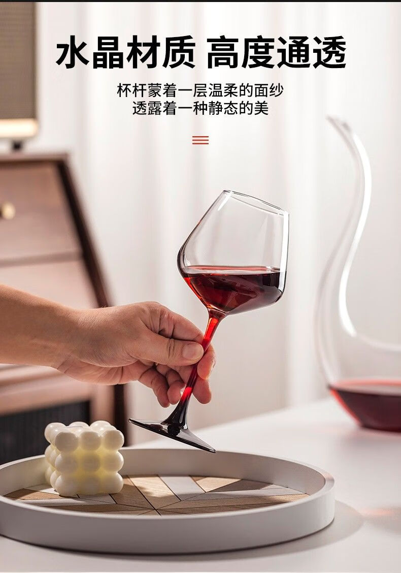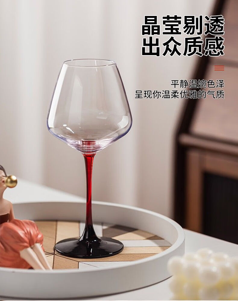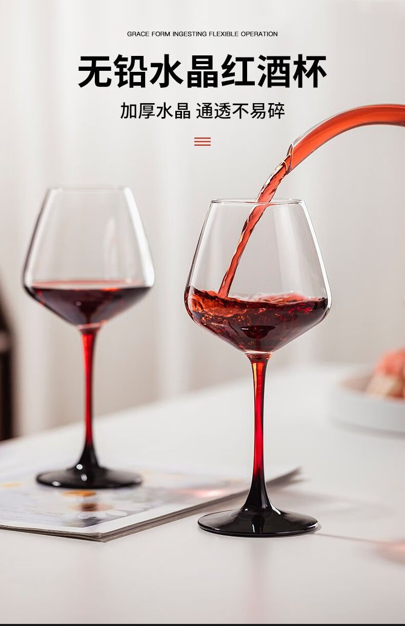 咏夏勃艮第酒杯高颜值轻奢领结高脚杯套装水晶玻璃大肚葡萄酒家用 红杆黑底酒杯 460ml 2只