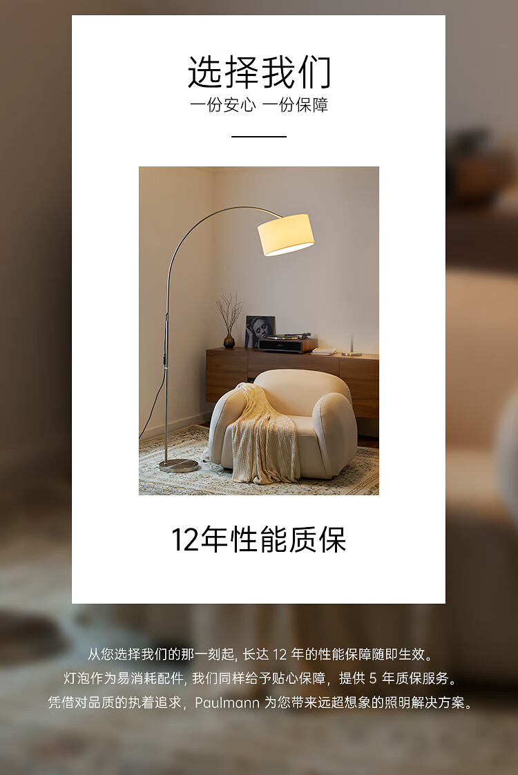 Paulmann P德国柏曼客厅钓鱼灯 简约ins风客厅卧室柔光落地灯