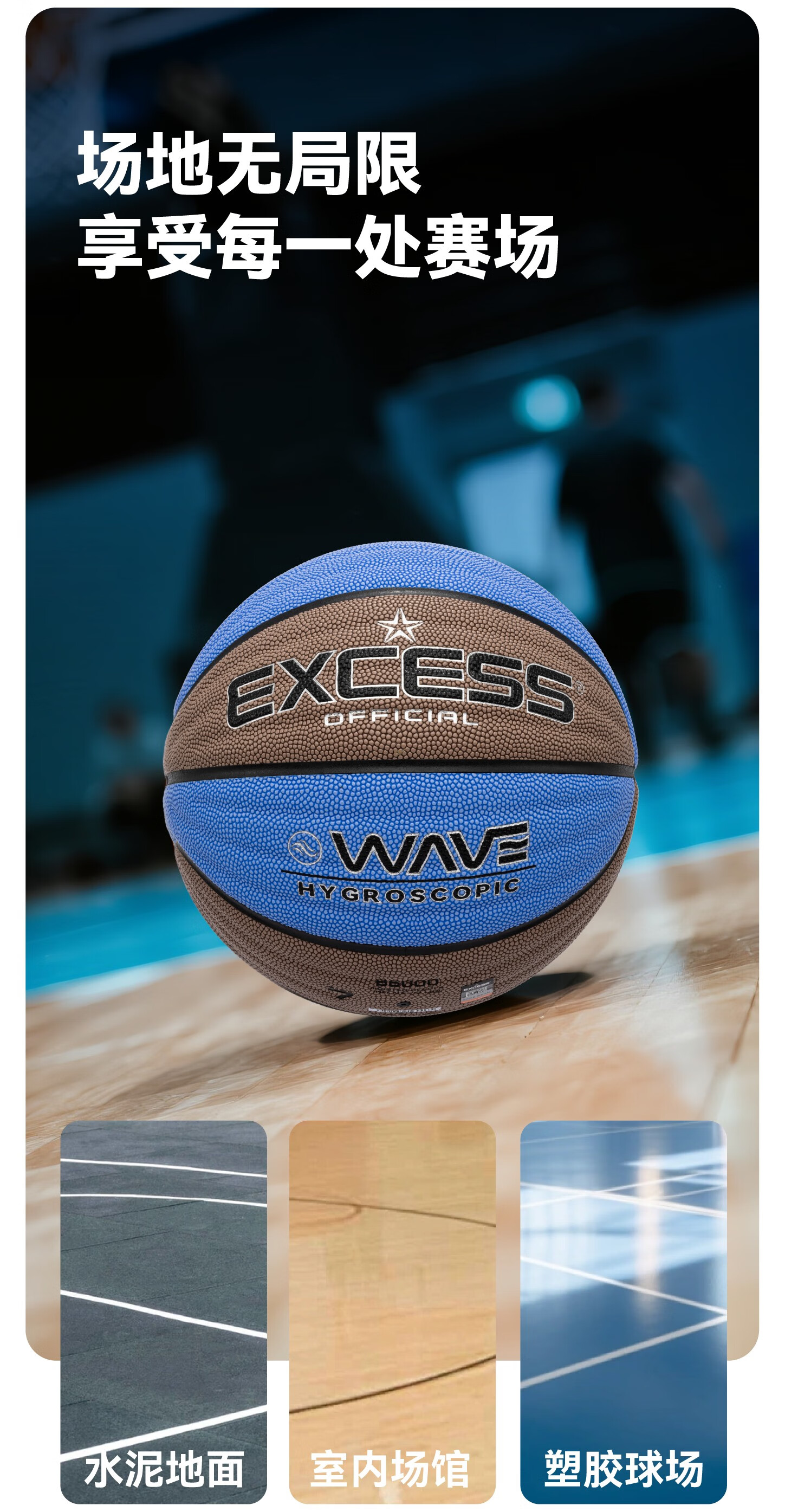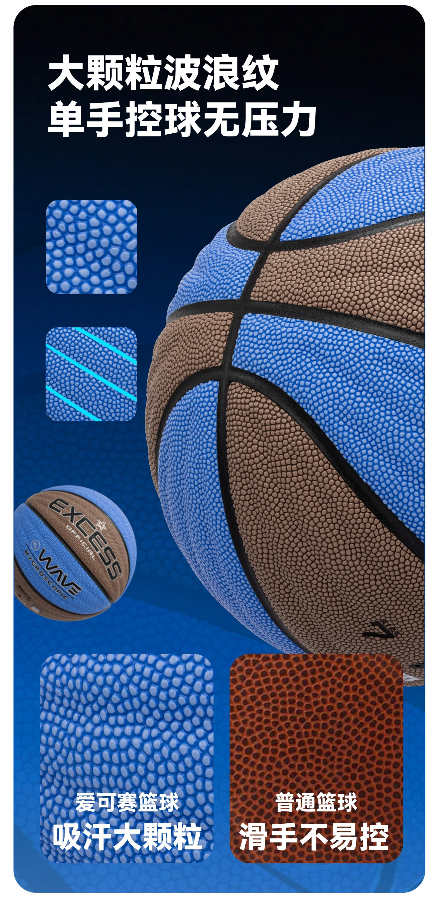 爱可赛(EXCESS)标准7号篮球成人学生防滑超纤手感耐磨PU材质室内外通用男生礼盒 【热销爆款】B6000-3F-波纹蓝