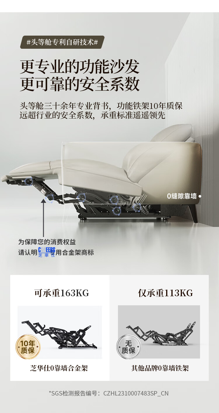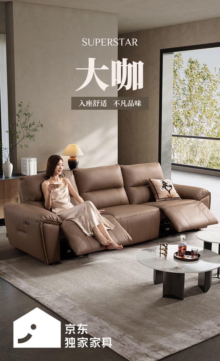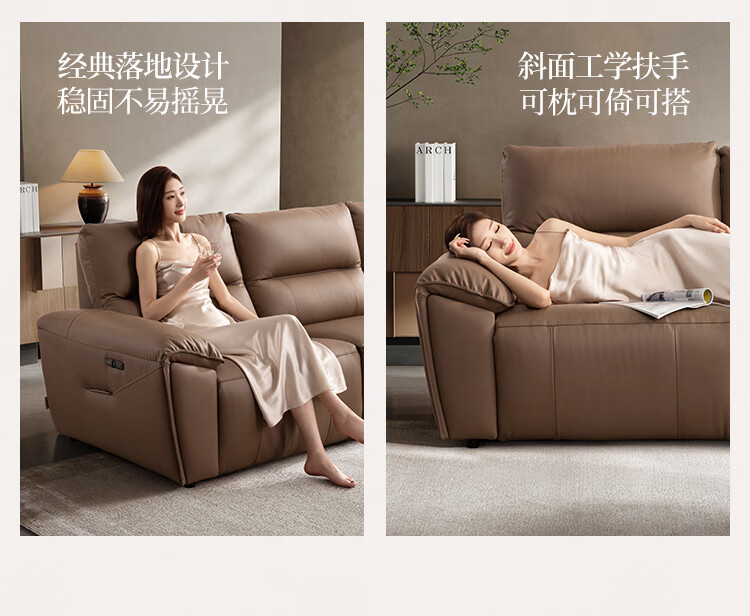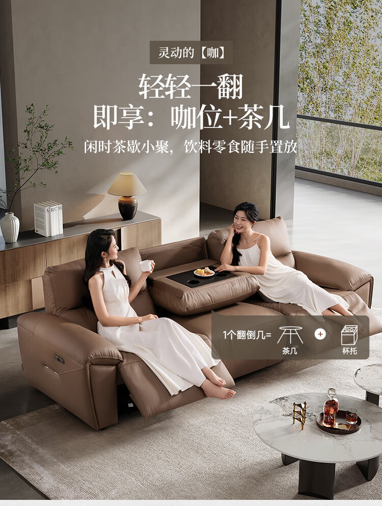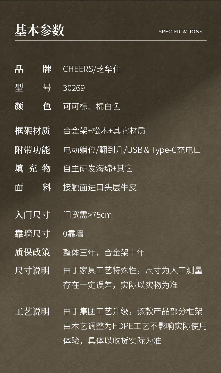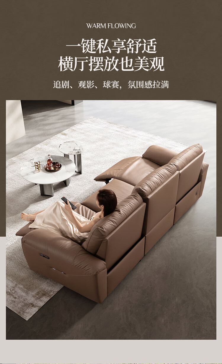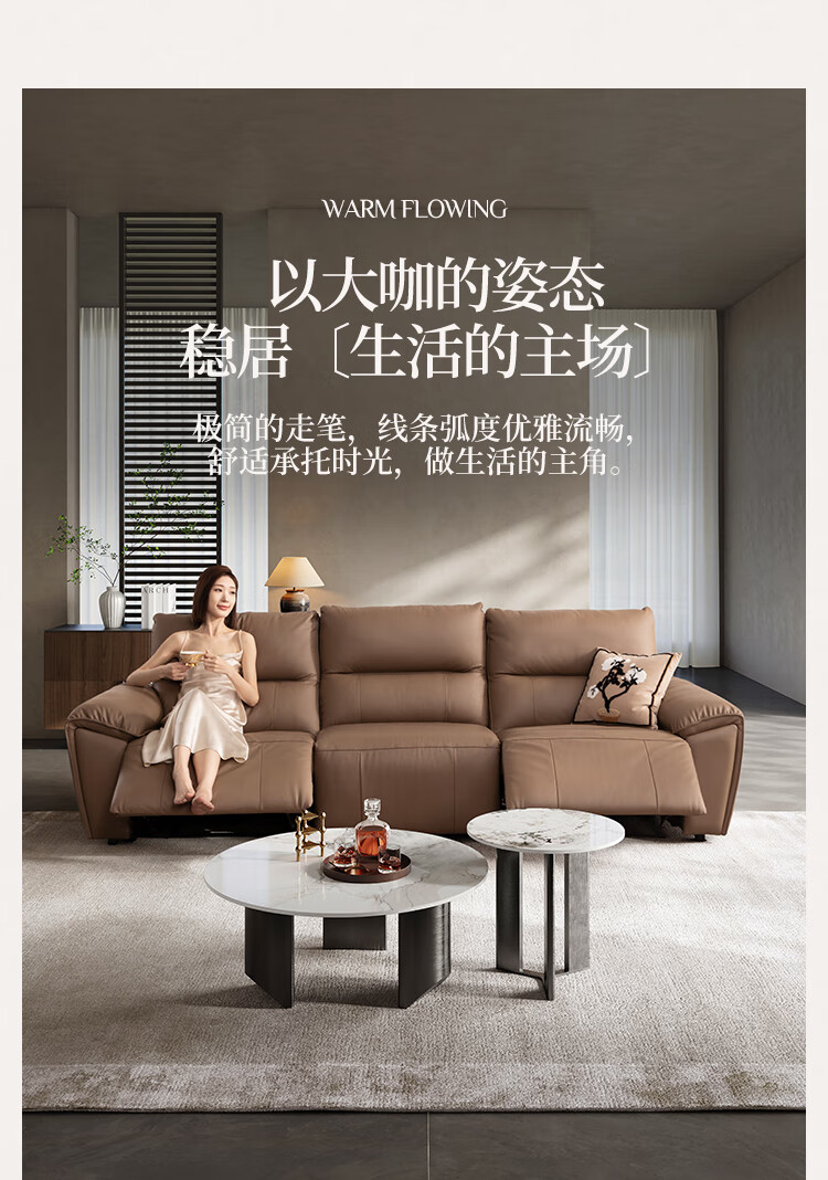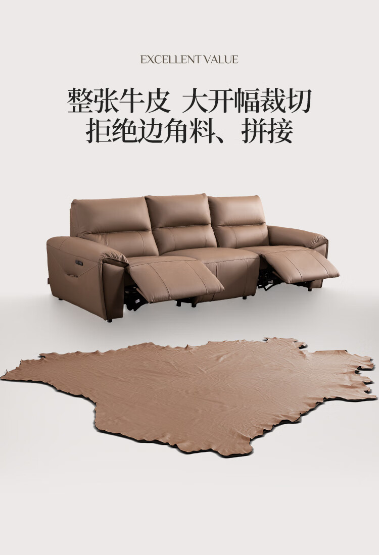 芝华仕(CHEERS)头等舱真皮沙发复古电动小户型家具芝华士大咖30269|棕3.54m