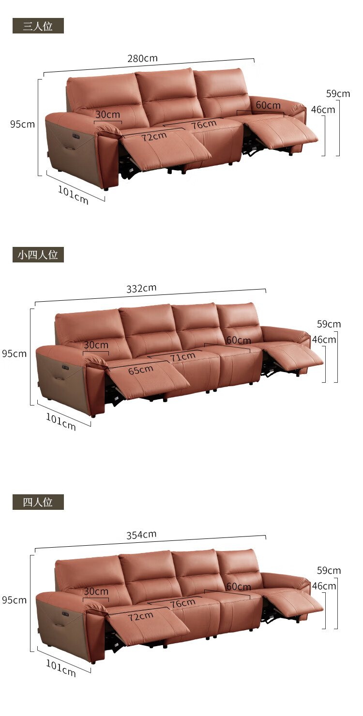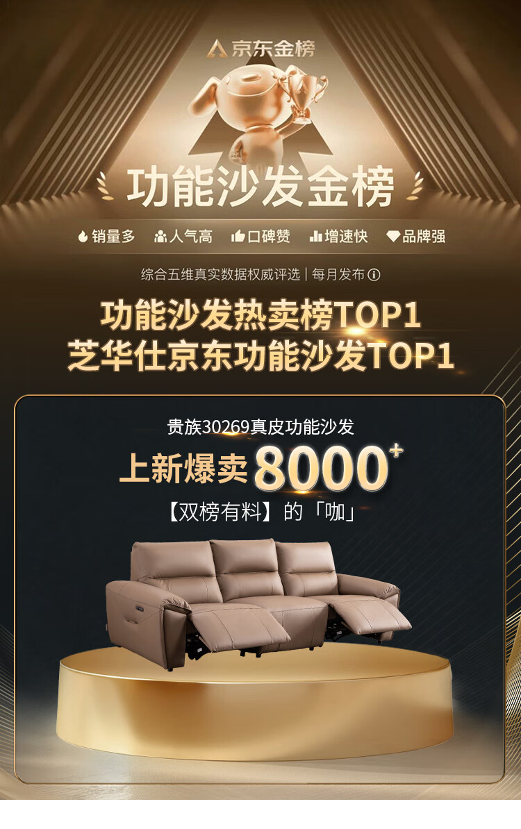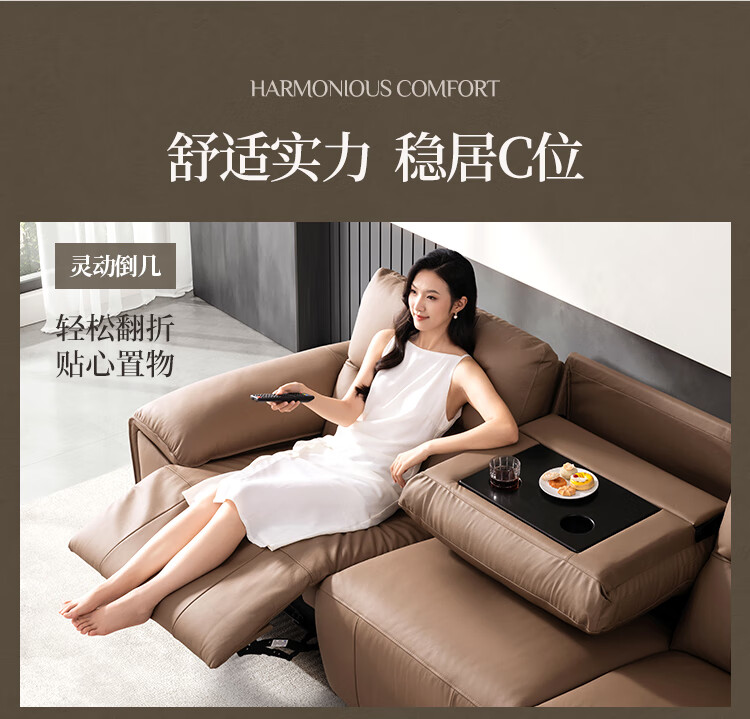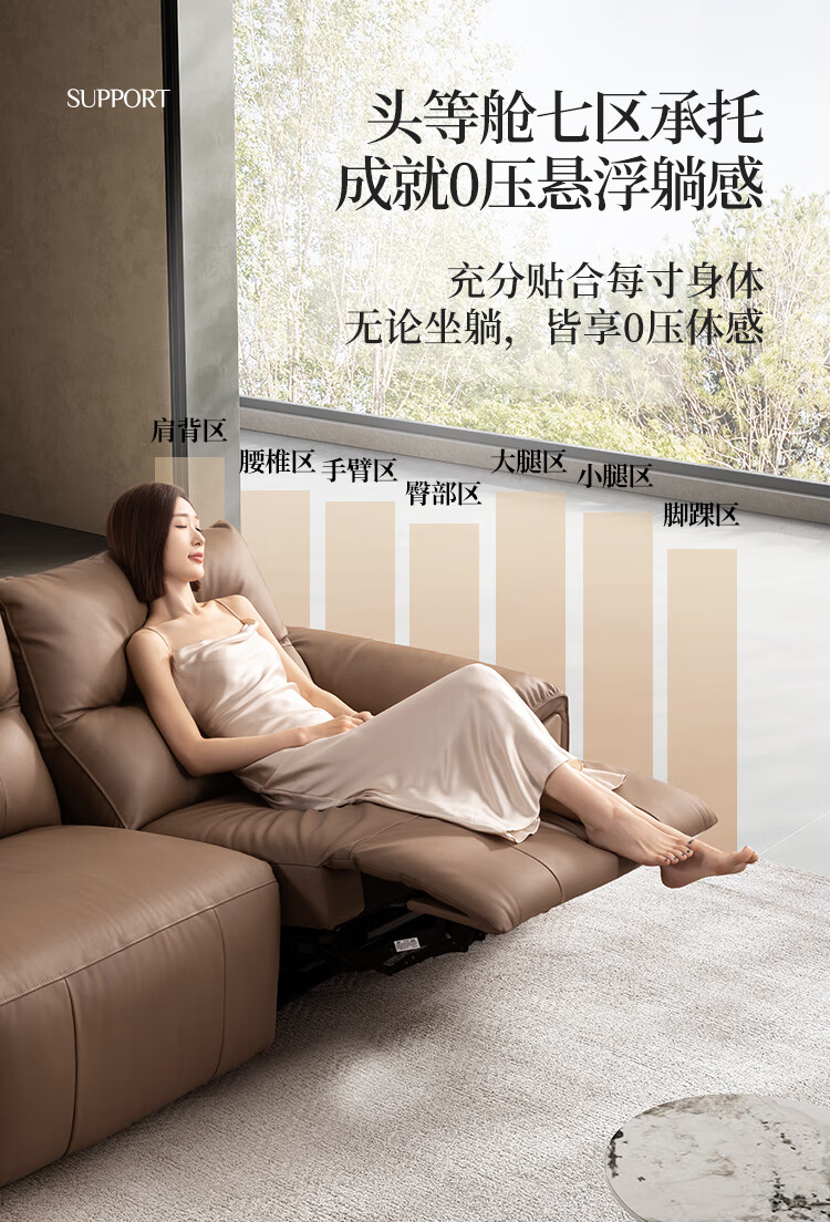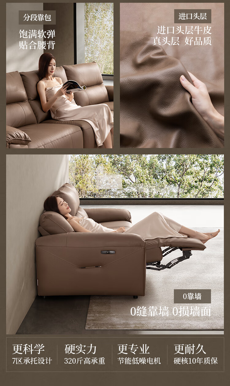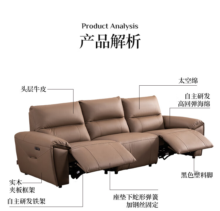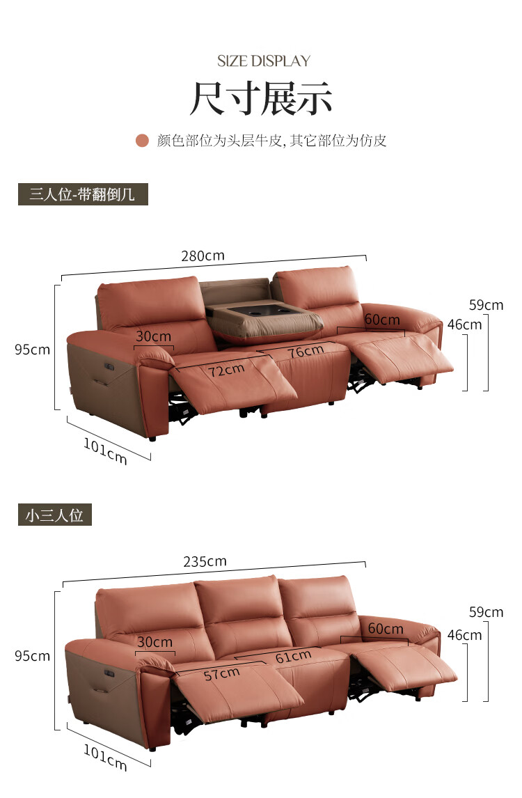 芝华仕(CHEERS)头等舱真皮沙发复古电动小户型家具芝华士大咖30269|棕3.54m