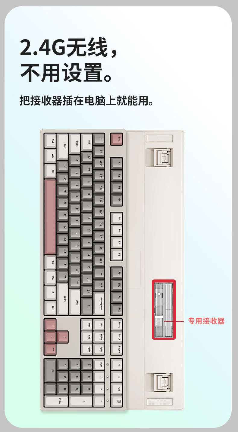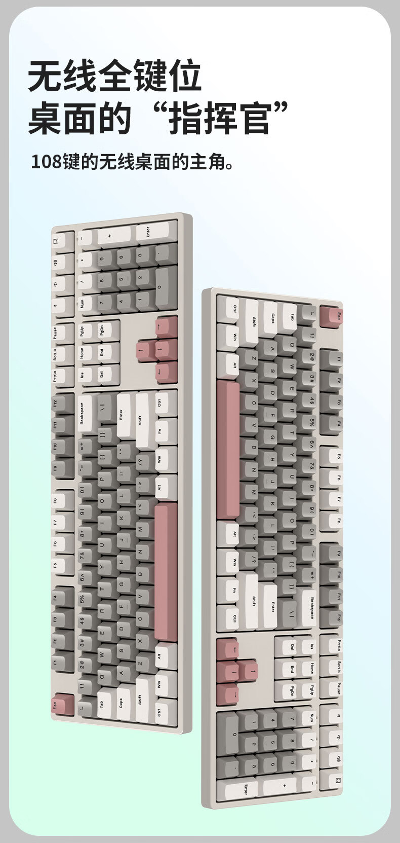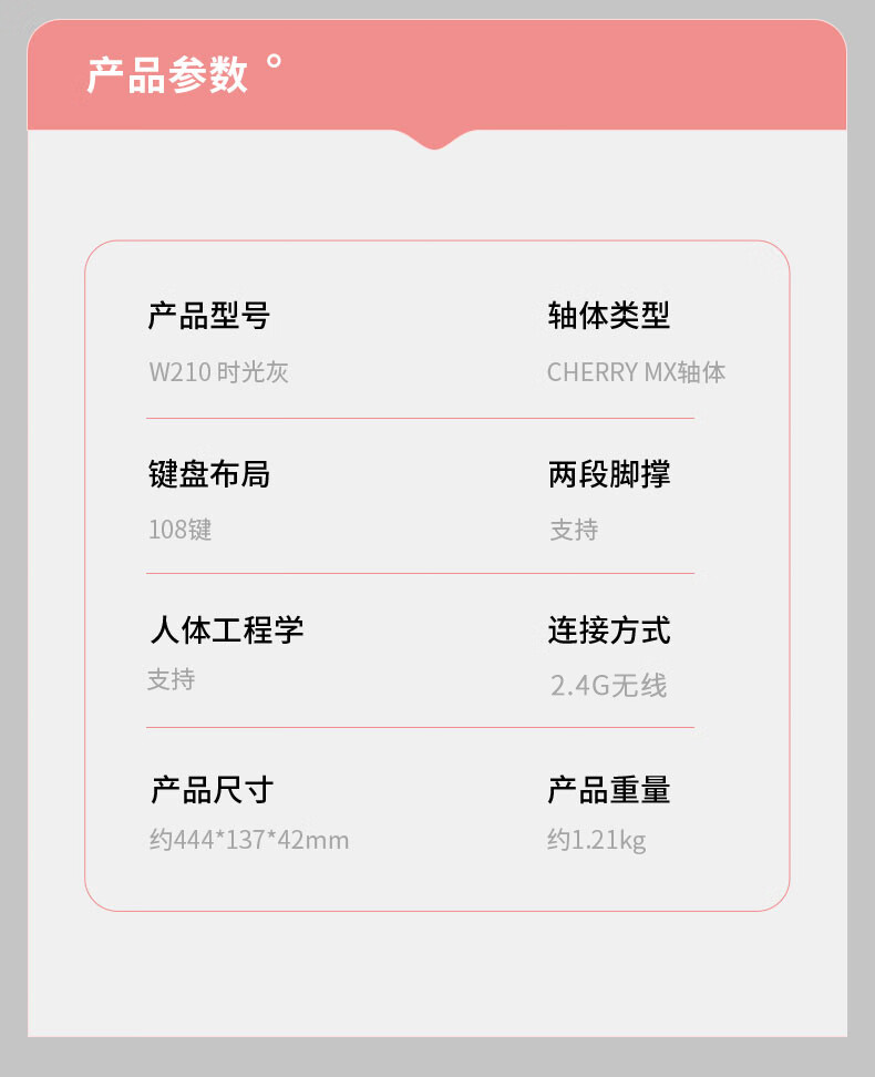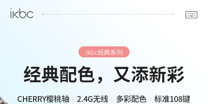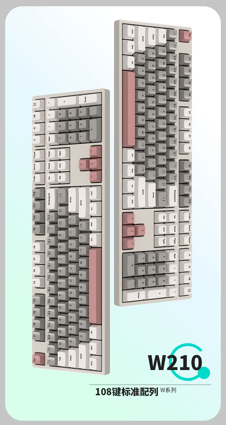 ikbc W210时光灰无线键盘机械键盘无线cherry机械键盘樱桃键盘游戏办公键盘108键红轴