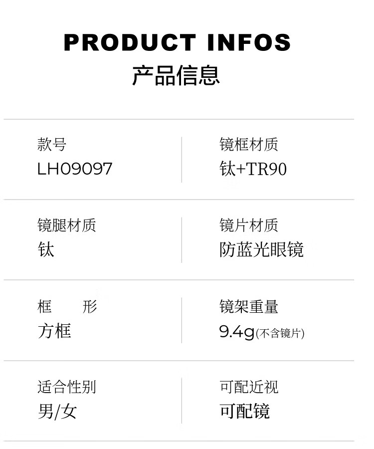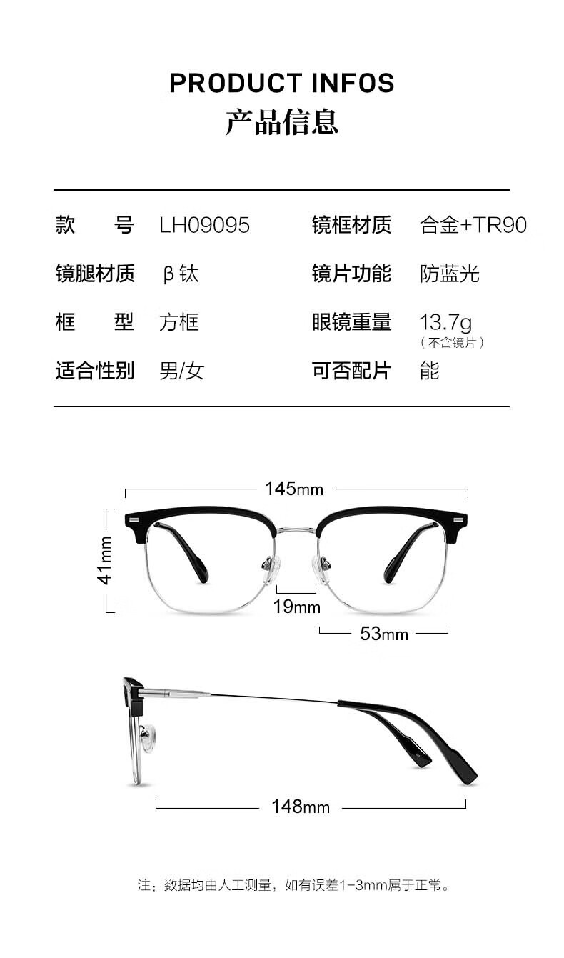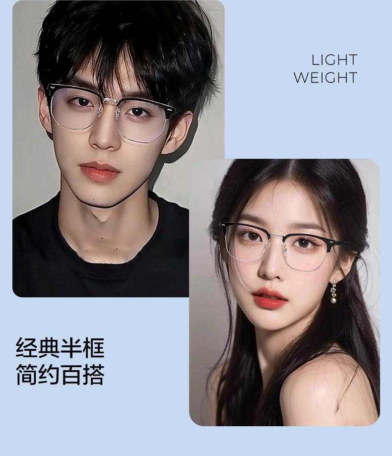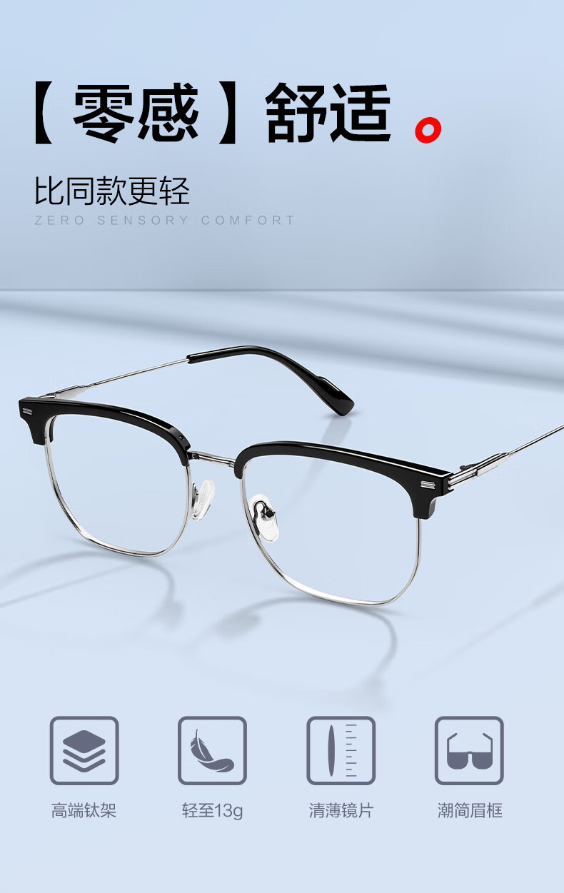 LOHO纯β钛超轻6g眼镜近视女防蓝光辐射可配度数蔡司镜片抗疲劳男框架