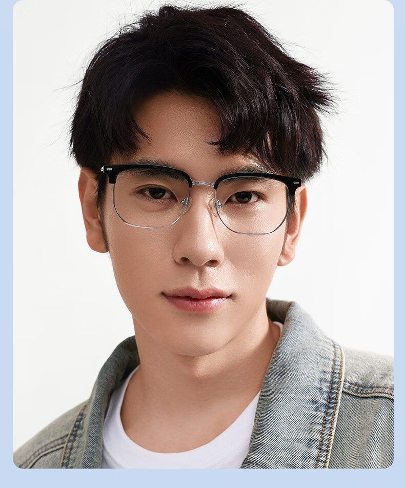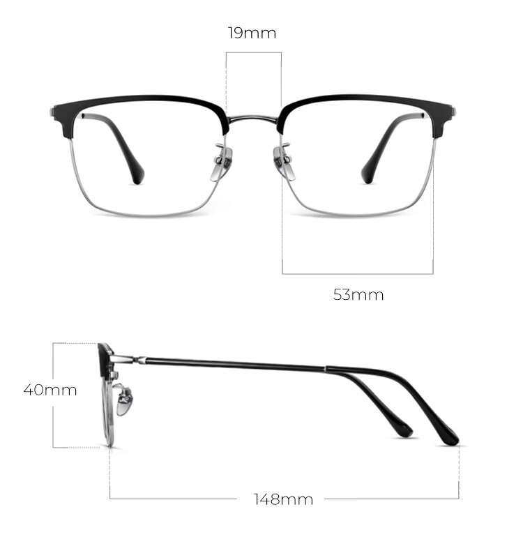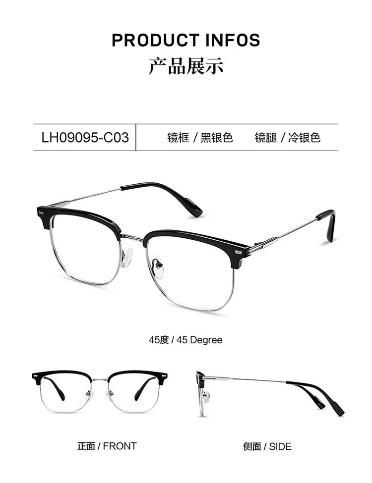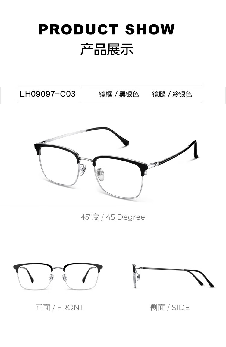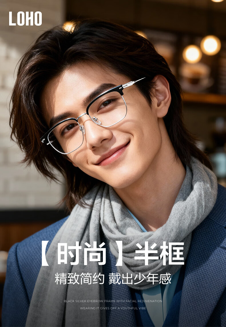 眼镜生活(LOHO)超轻纯钛半框近视眼镜框男女款痞帅眉框架斯文理工可配度数