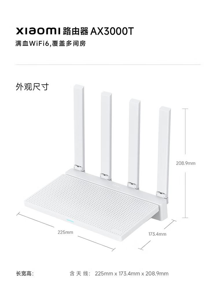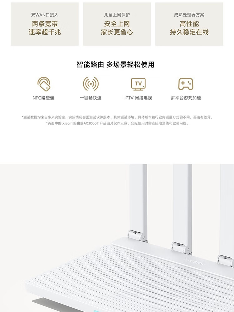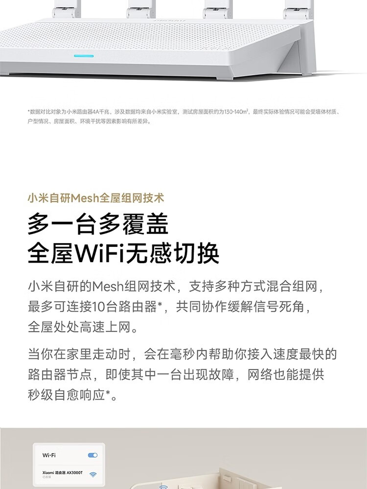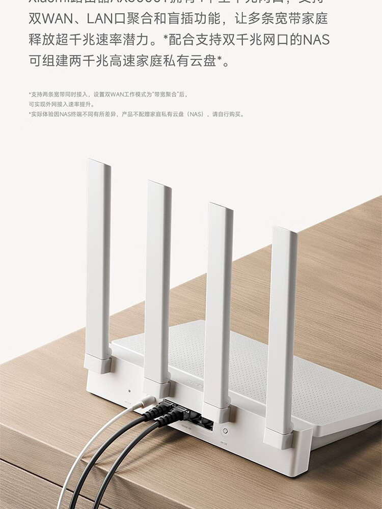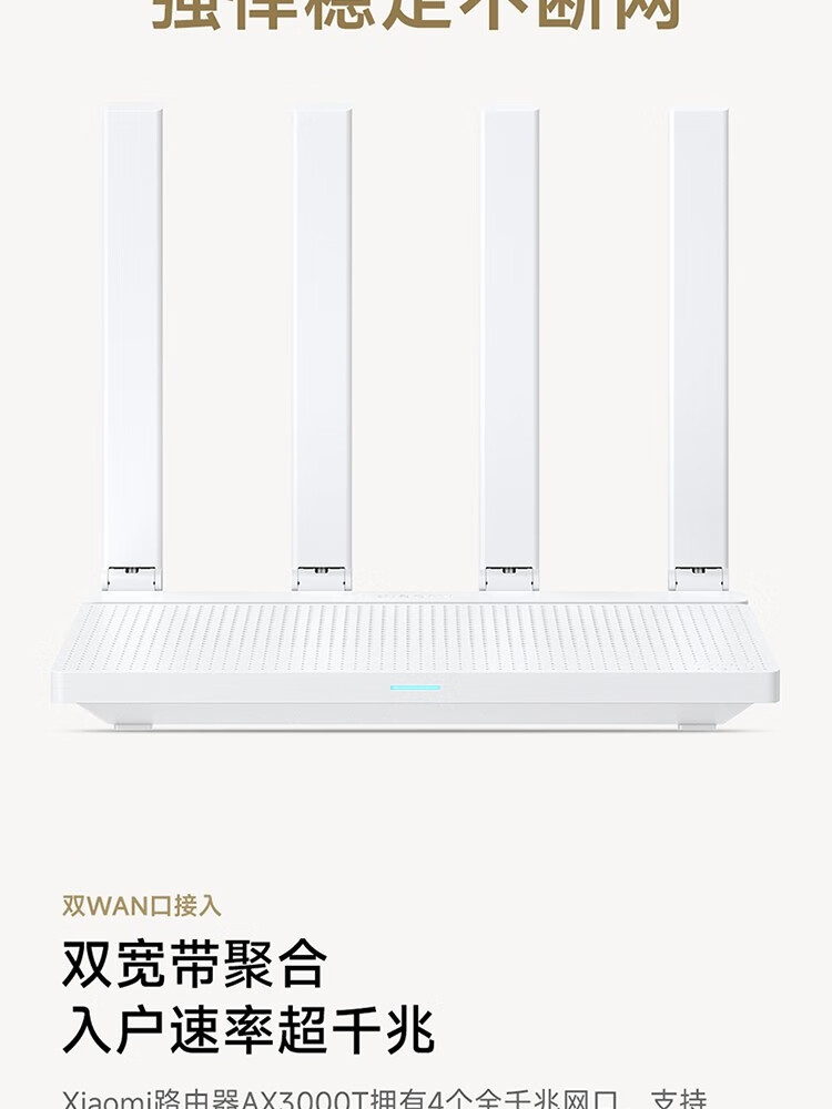 小米(MI)AX3000T路由器5G双频WIFI6 多宽带聚合 3000M无线速率 千兆5G家用路由 Xiaomi AX3000T