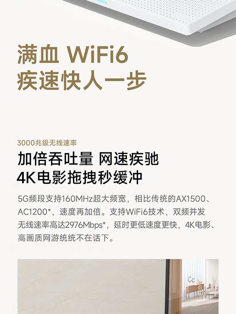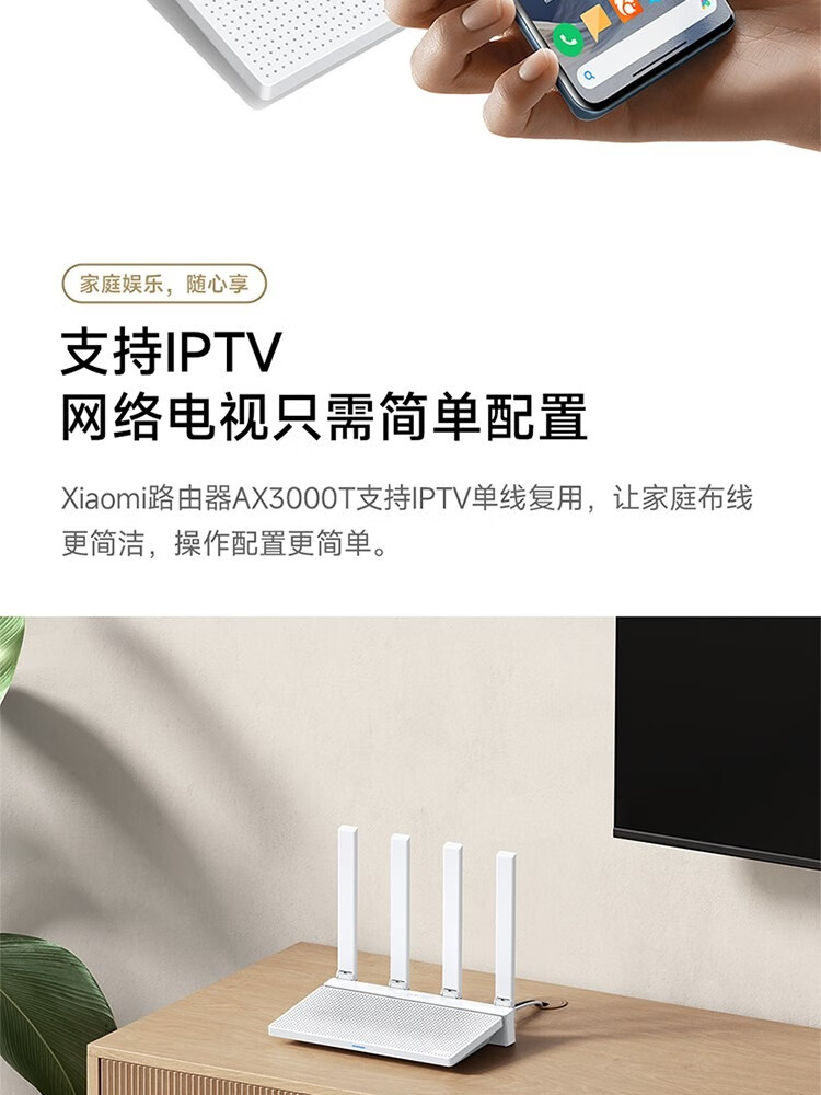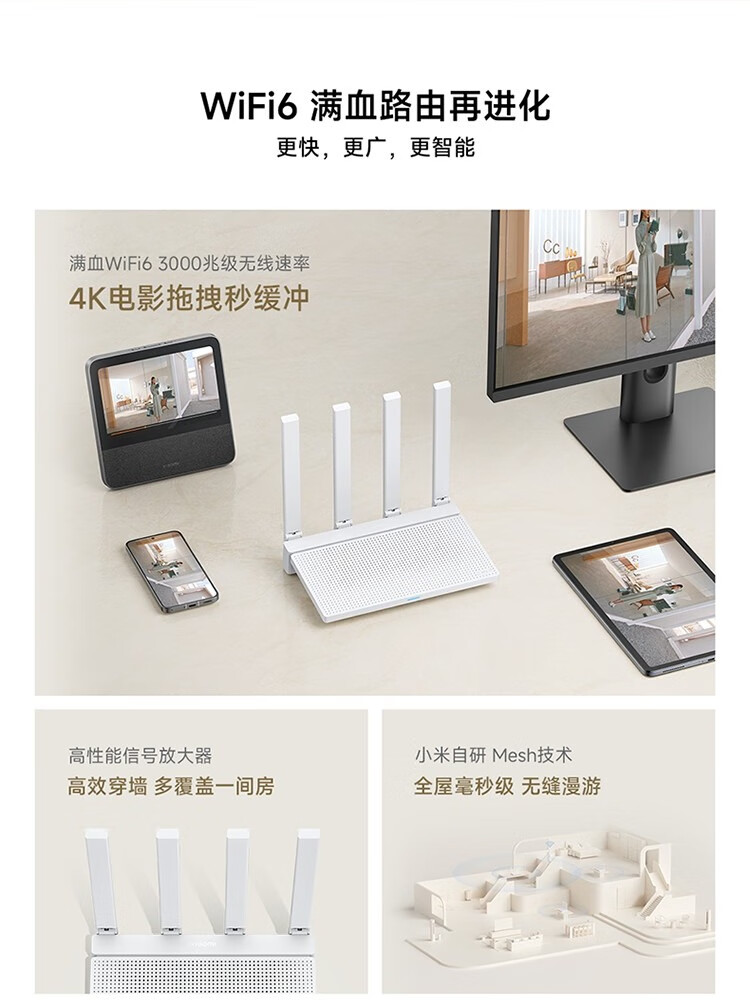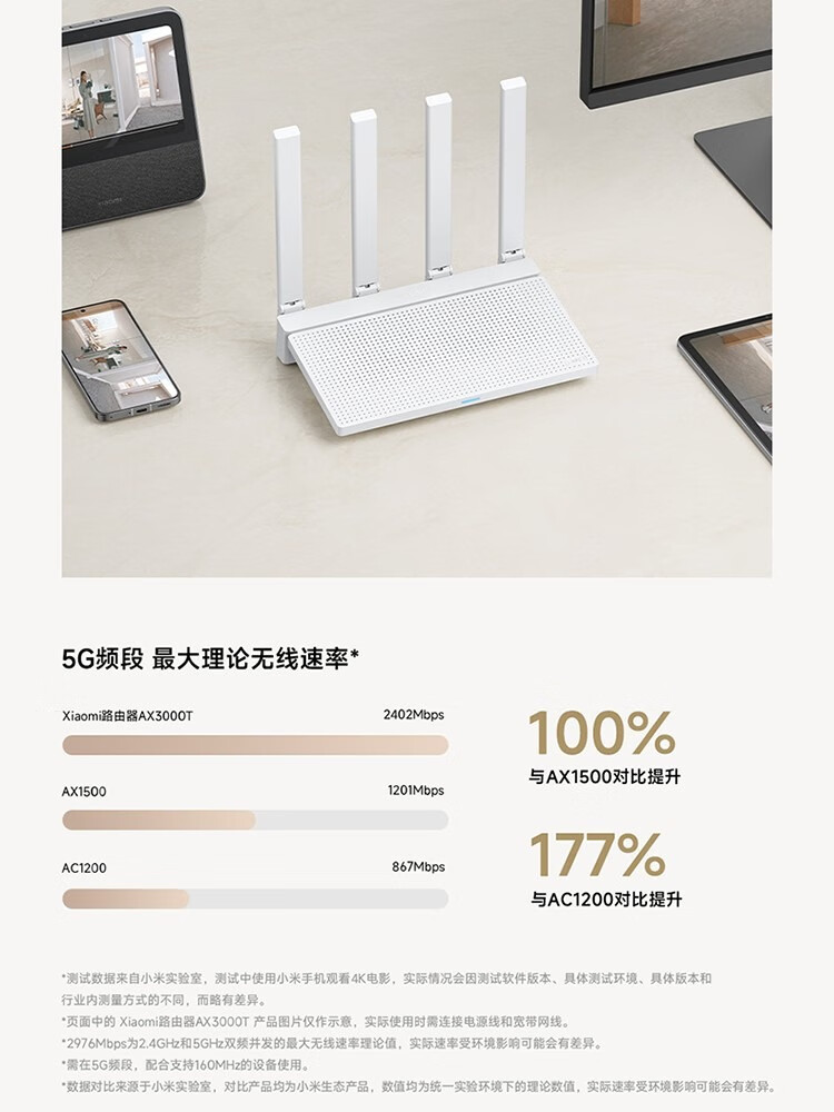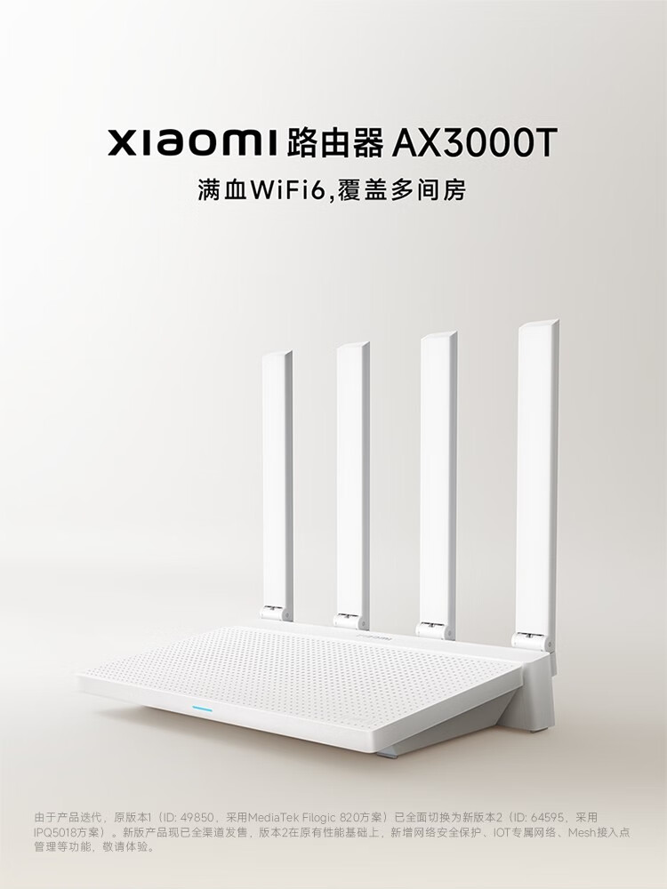 小米(MI)AX3000T路由器5G双频WIFI6 多宽带聚合 3000M无线速率 千兆5G家用路由 Xiaomi AX3000T