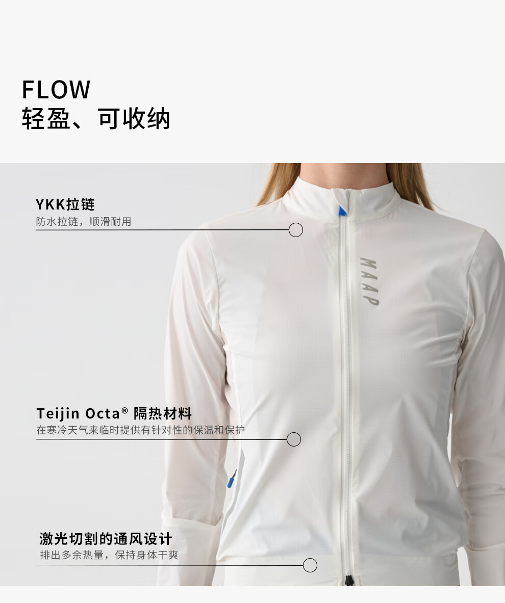 MAAP【新品】 女士Flow Jacket 自行车骑行服防风骑行风衣夹克 纯净白 纯净白 XS