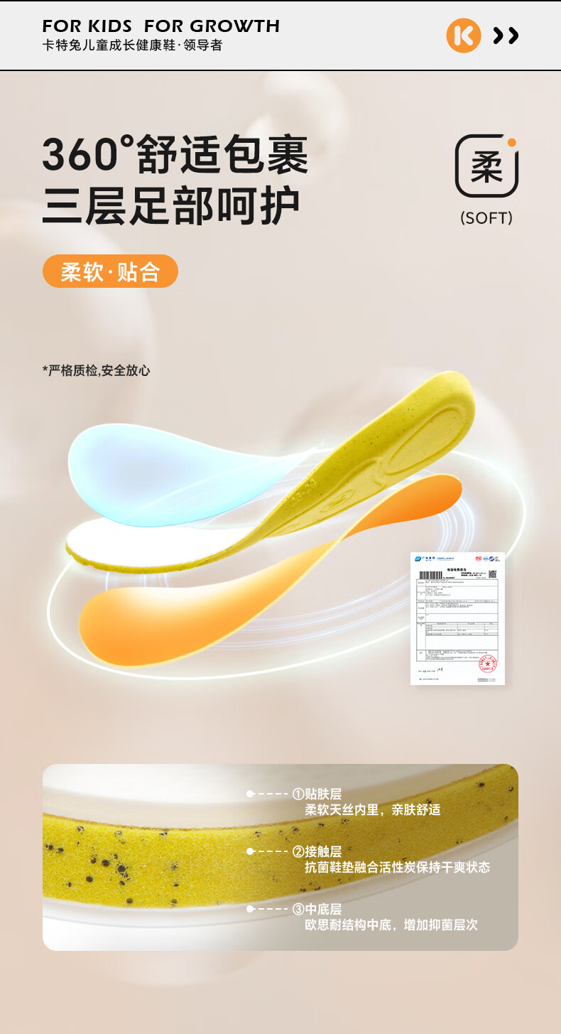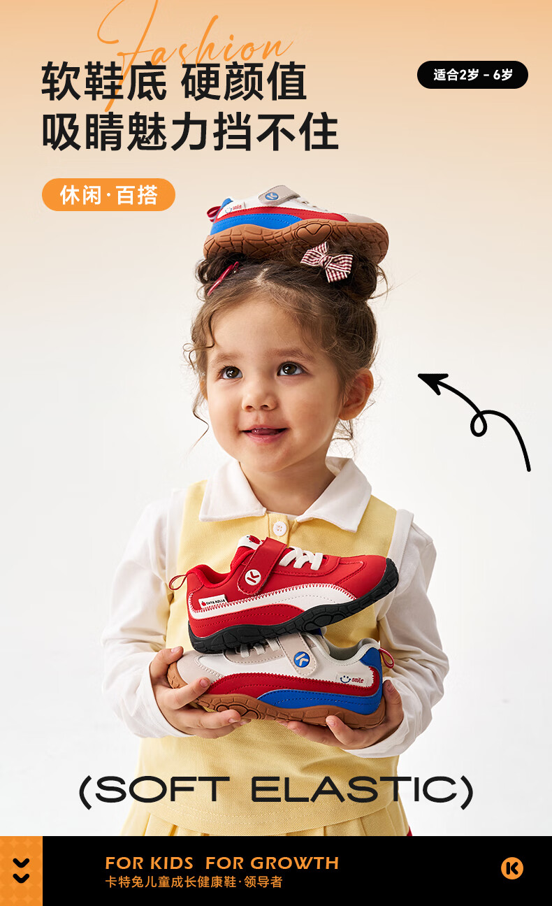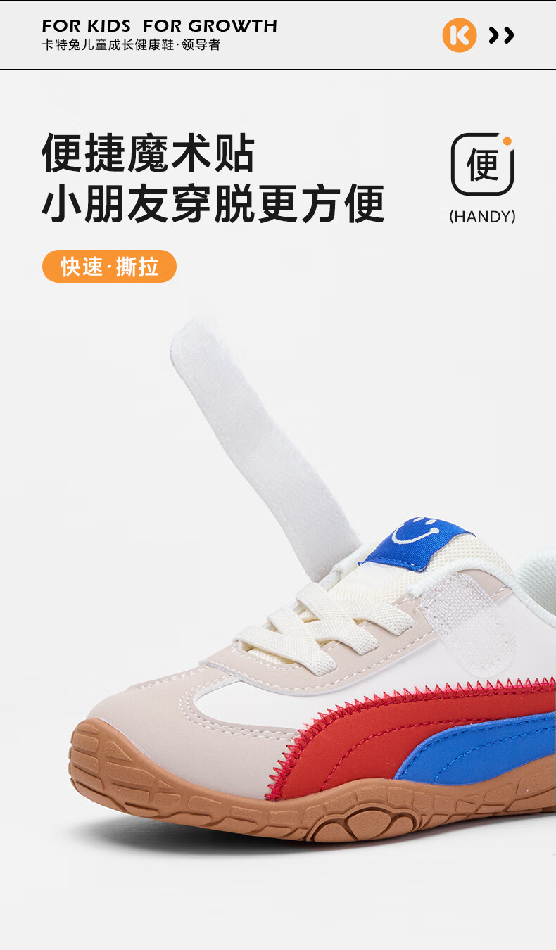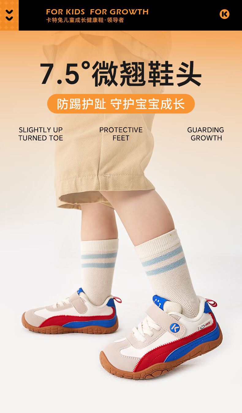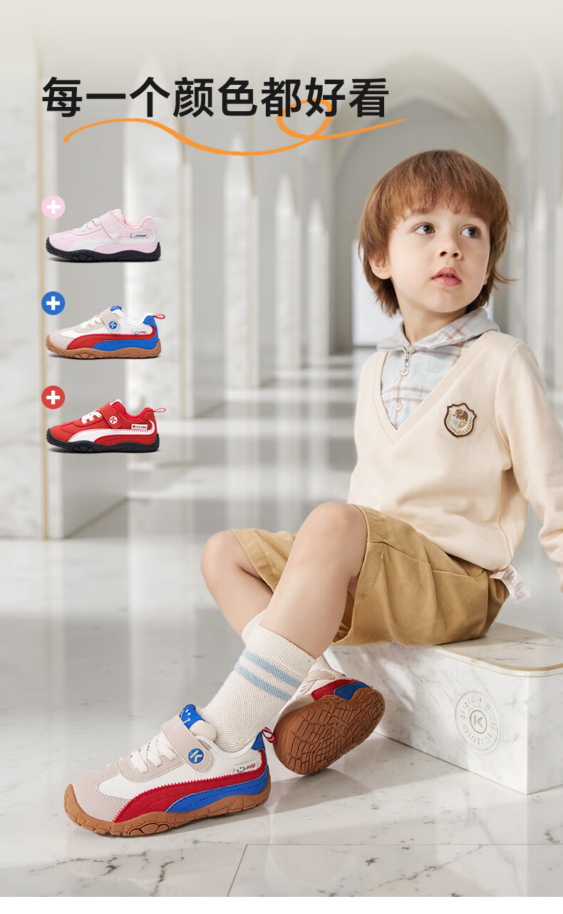 卡特兔儿童运动鞋2-6岁赤足户外儿童鞋男童2025秋新童鞋防滑软底女童鞋 白红蓝灰 27 内长约17.5cm脚长约16.1-16.7