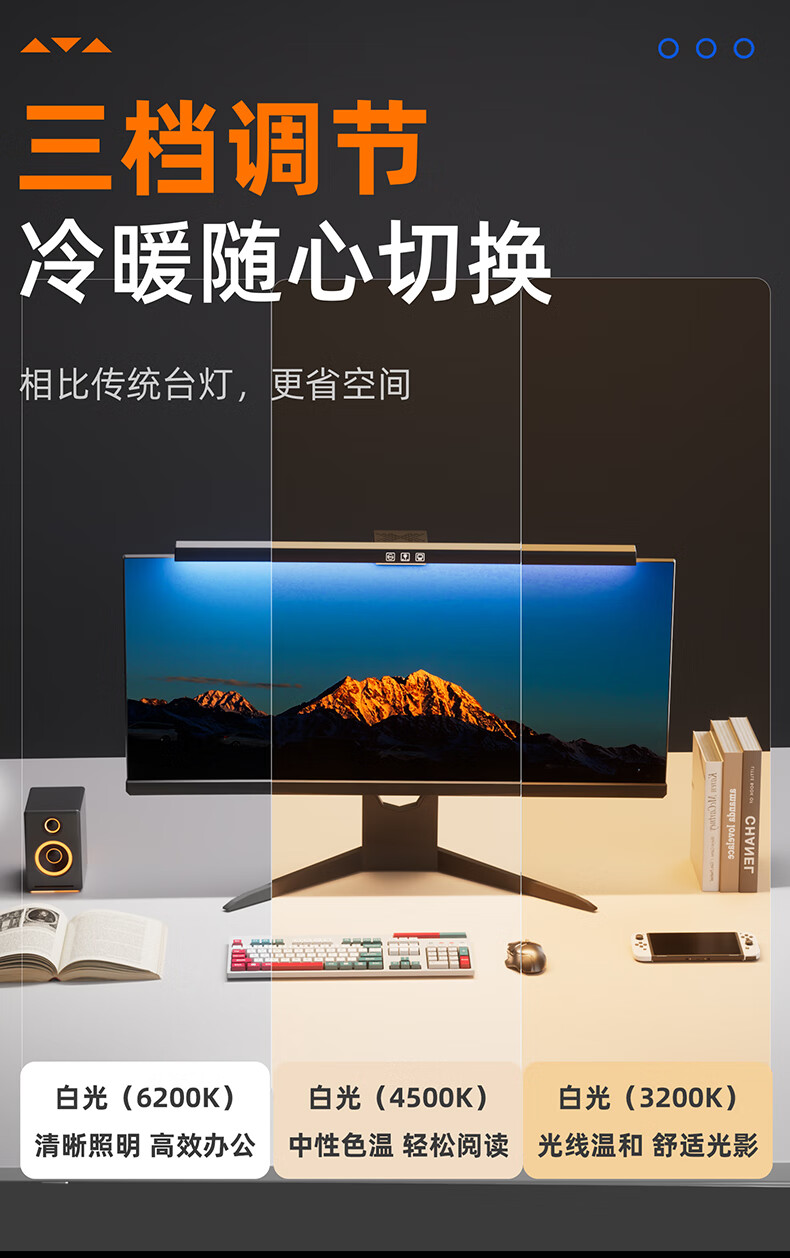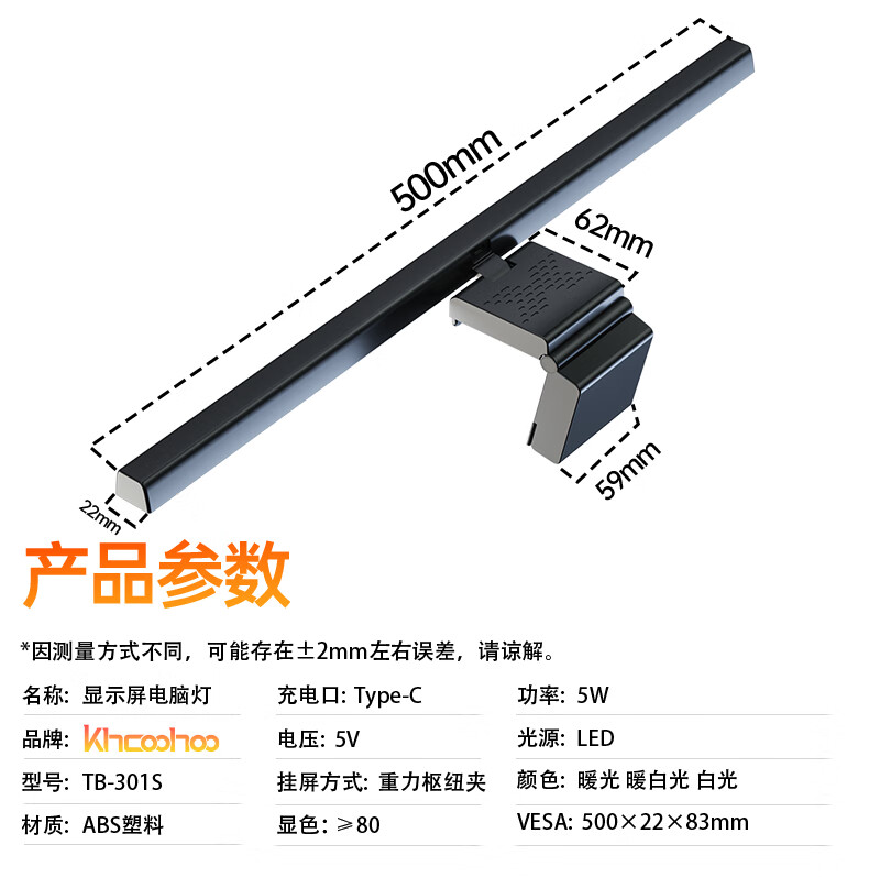 khcoohoo电脑屏幕挂灯电脑显示器挂灯非对称光源显示器阅读灯屏幕护眼灯三档调光50CM