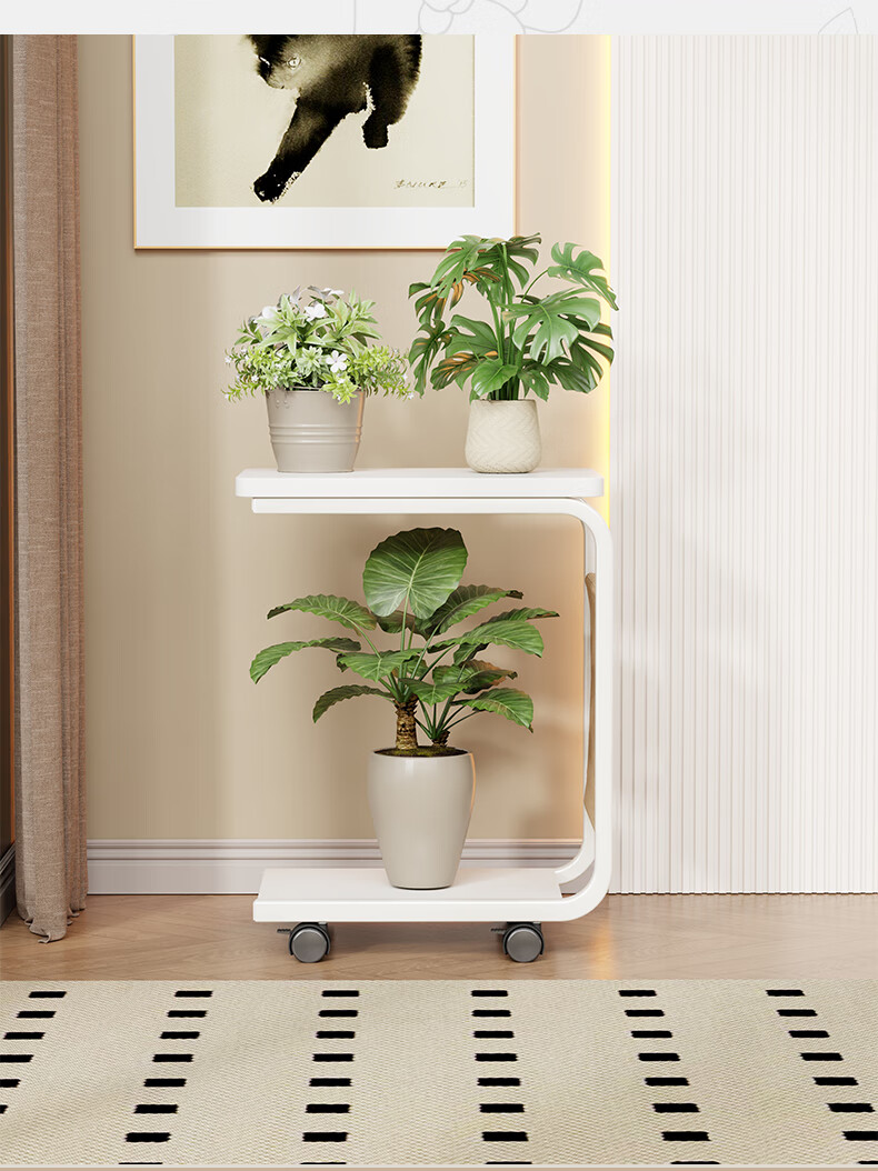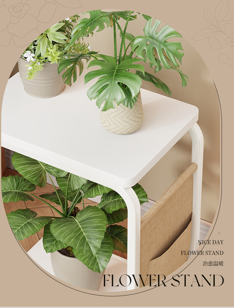 木格格花架落地式花架子客厅高颜值花架阳台可移动置物架花盆架室内托架 白架+白色
