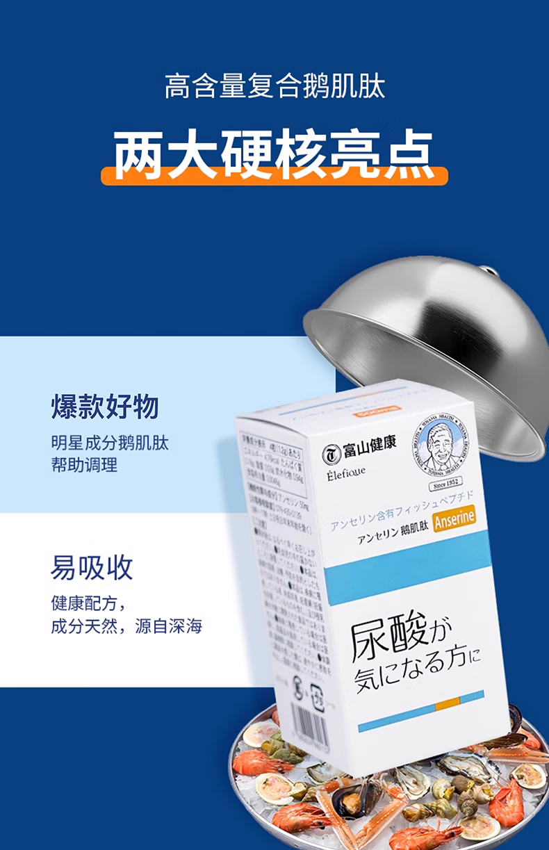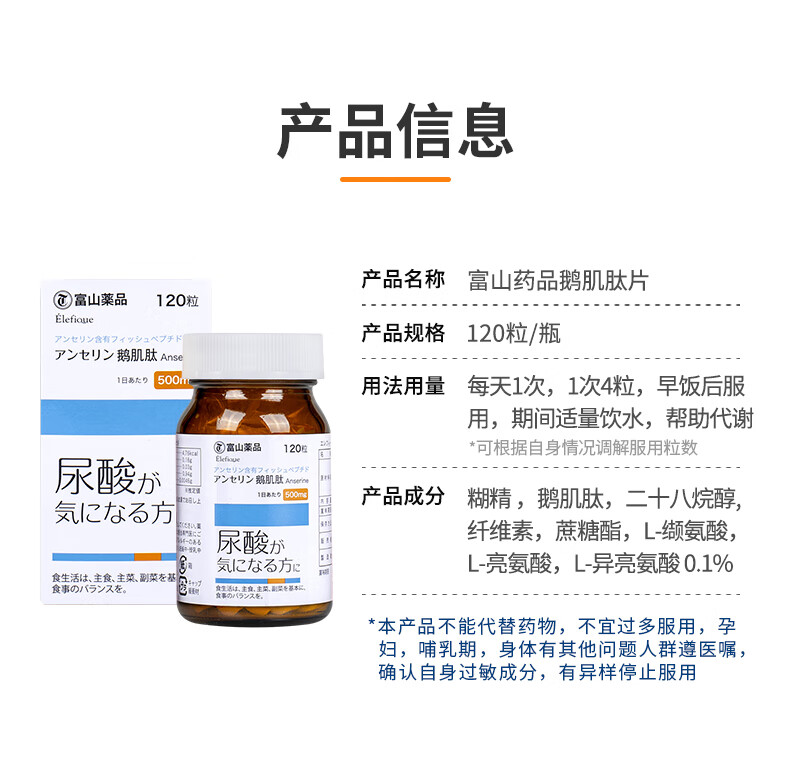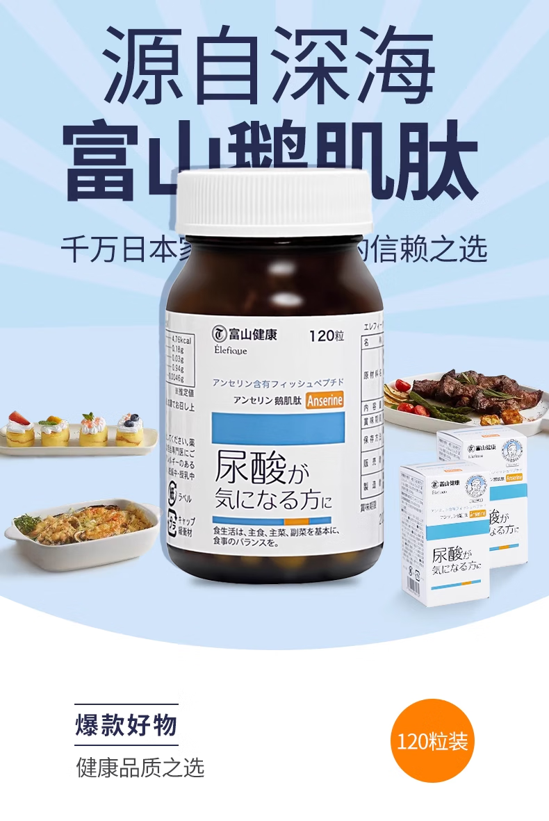 富山健康日本进口复合鹅肌肽片 酸友老人常备酸值成人120粒嘌呤养护保健 鹅肌肽 二十八烷醇L-缬氨酸L-亮氨酸L-异亮氨酸