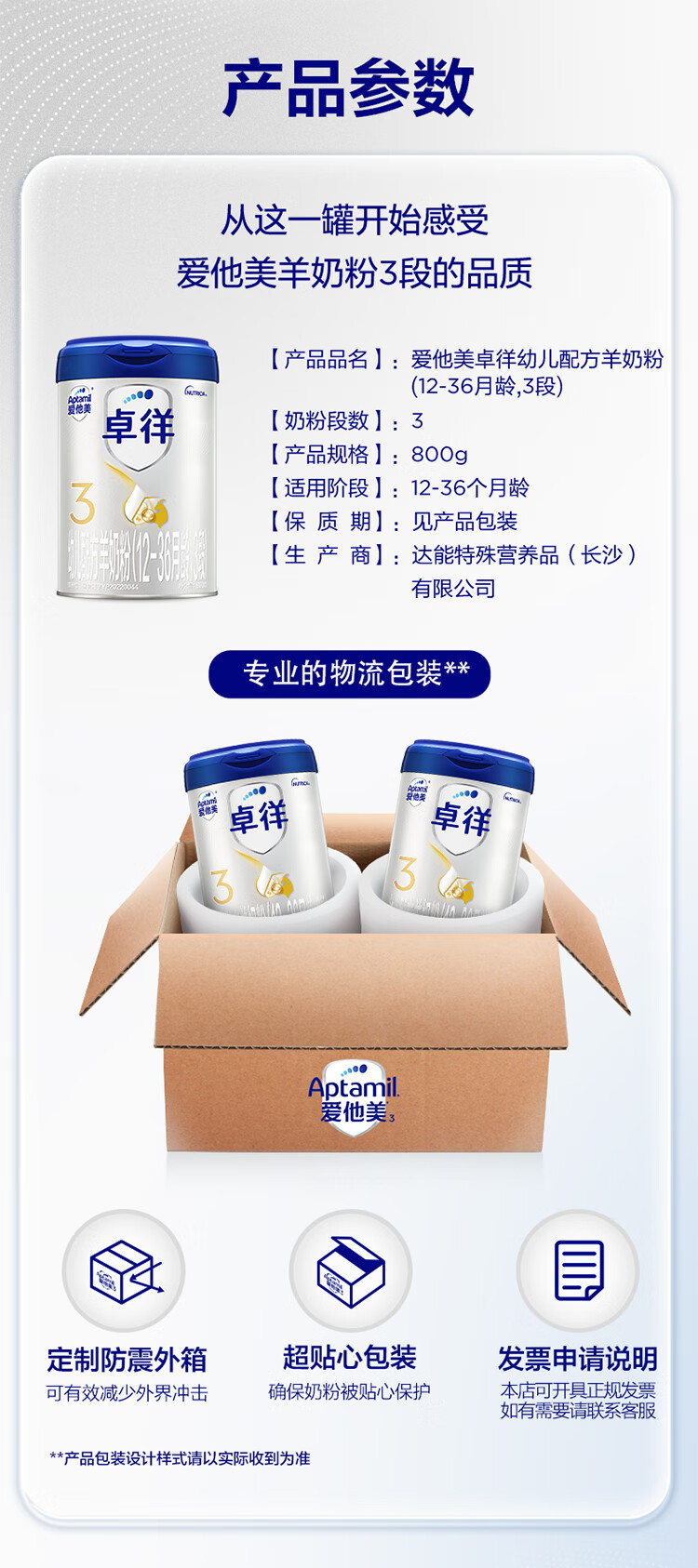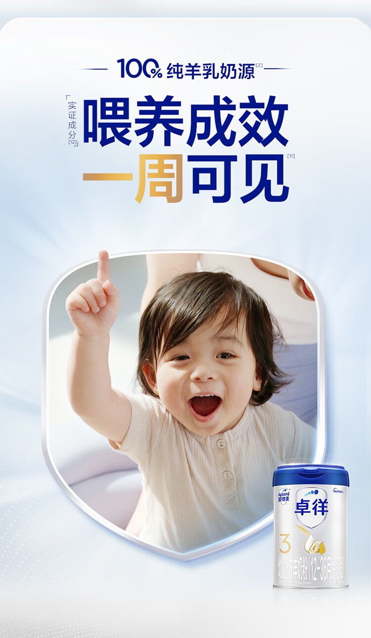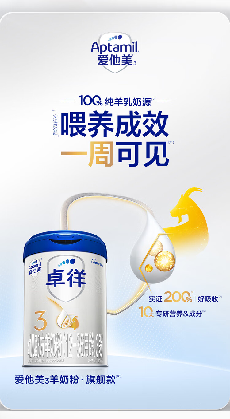 爱他美(Aptamil)卓徉幼儿配方羊奶粉3段(12-36月龄)800g自护吸收双突破
