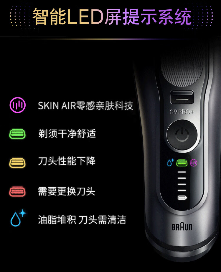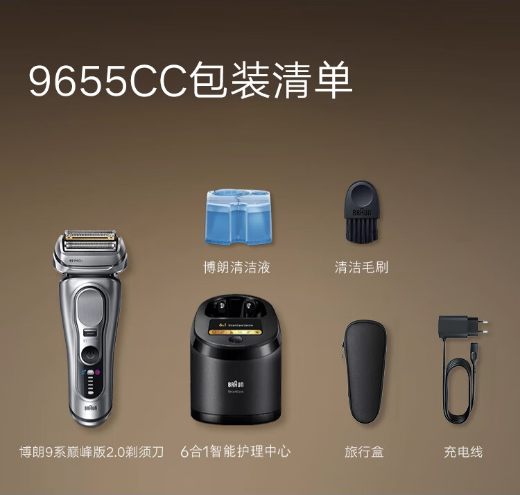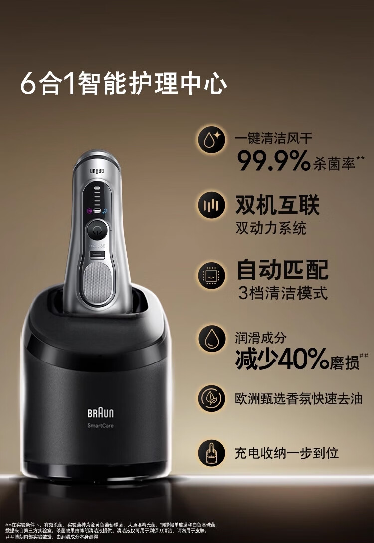 博朗(BRAUN)9系巅峰版2.0电动剃须刀往复式6合1清洁护理中心整机德国进口 生日礼物送男朋友老公父亲 灰色