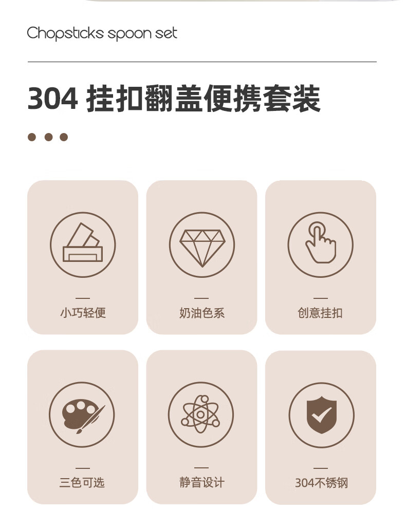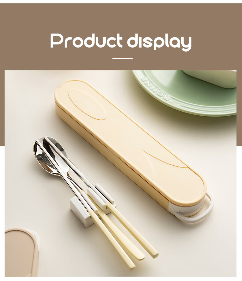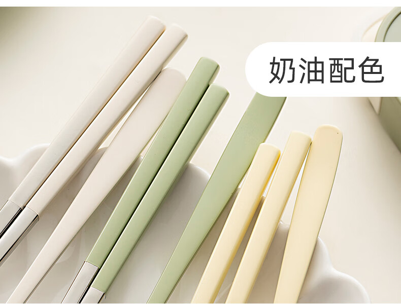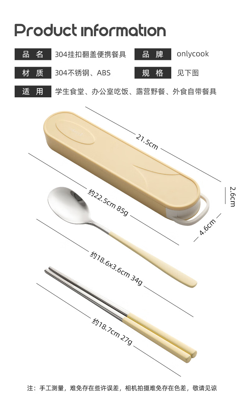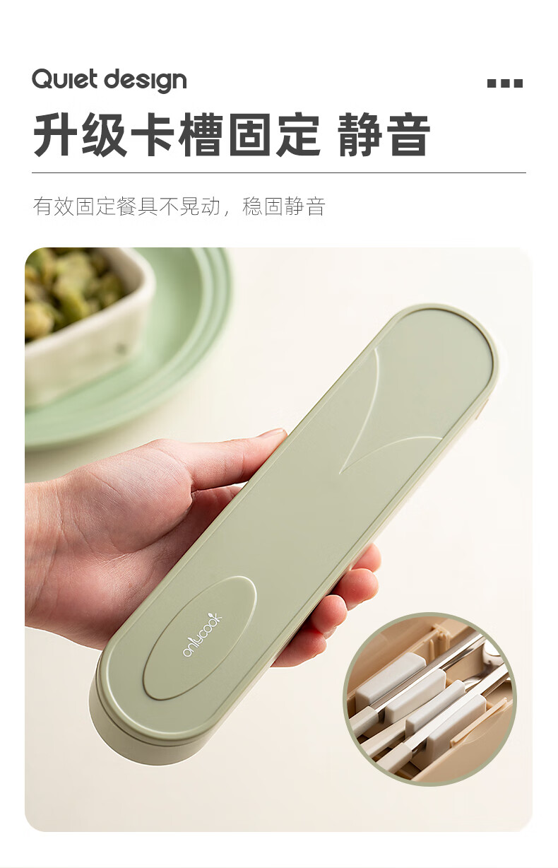 onlycook304不锈钢便携餐具盒套装 带挂钩筷子勺子套装 学生餐具套装绿色