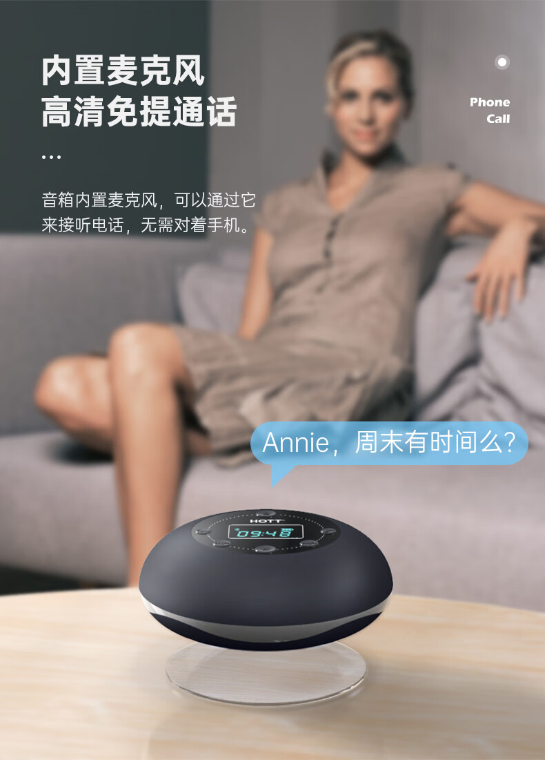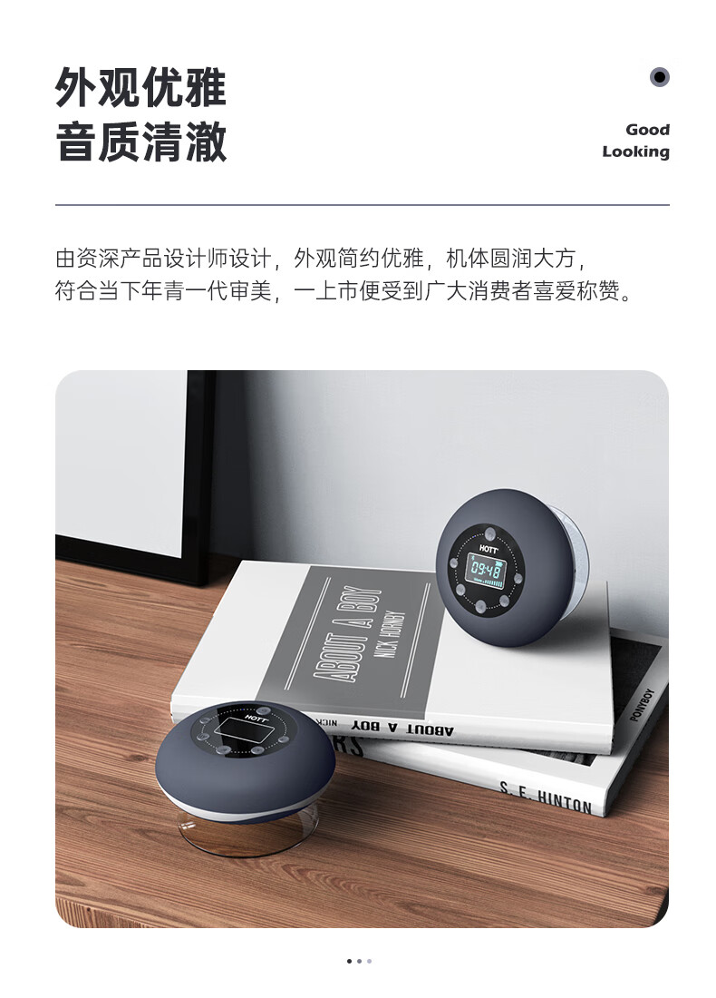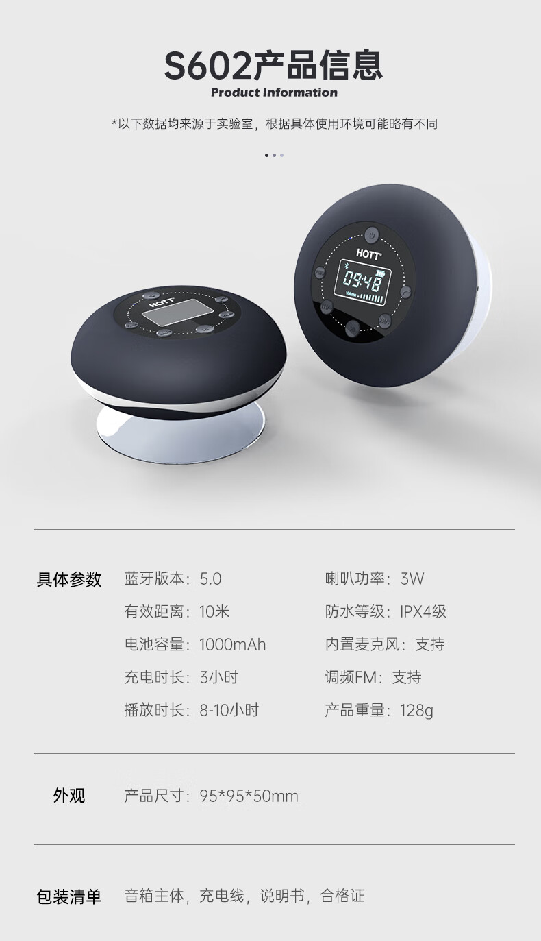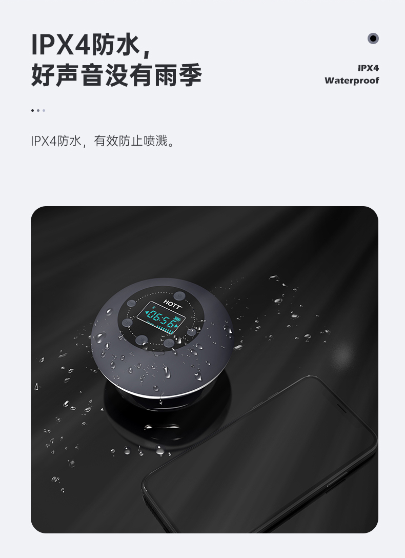 HOTTS602防水蓝牙音箱吸盘浴室家用便捷式小型迷米你低音炮支持FM收音机TF内存卡带显示高音质音响 灰色-高保真音质