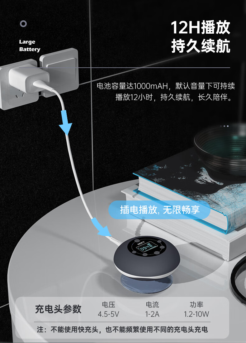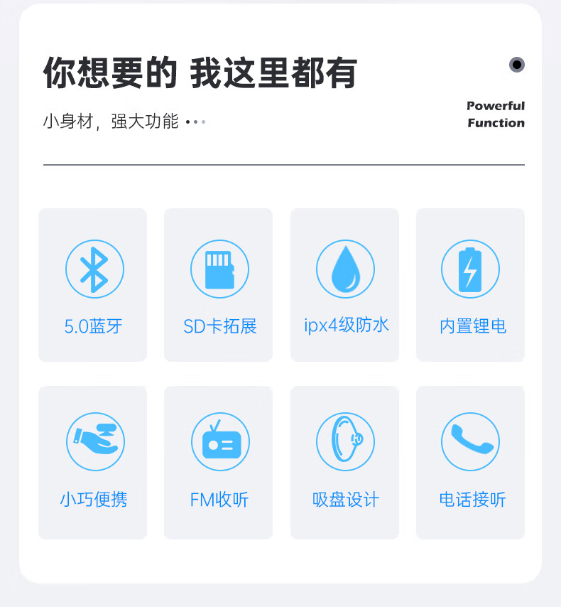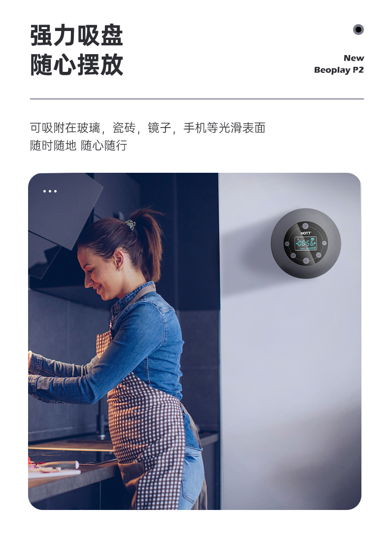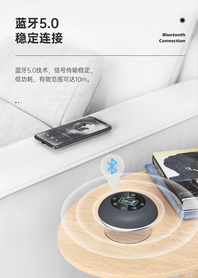HOTTS602防水蓝牙音箱吸盘浴室家用便捷式小型迷米你低音炮支持FM收音机TF内存卡带显示高音质音响 灰色-高保真音质