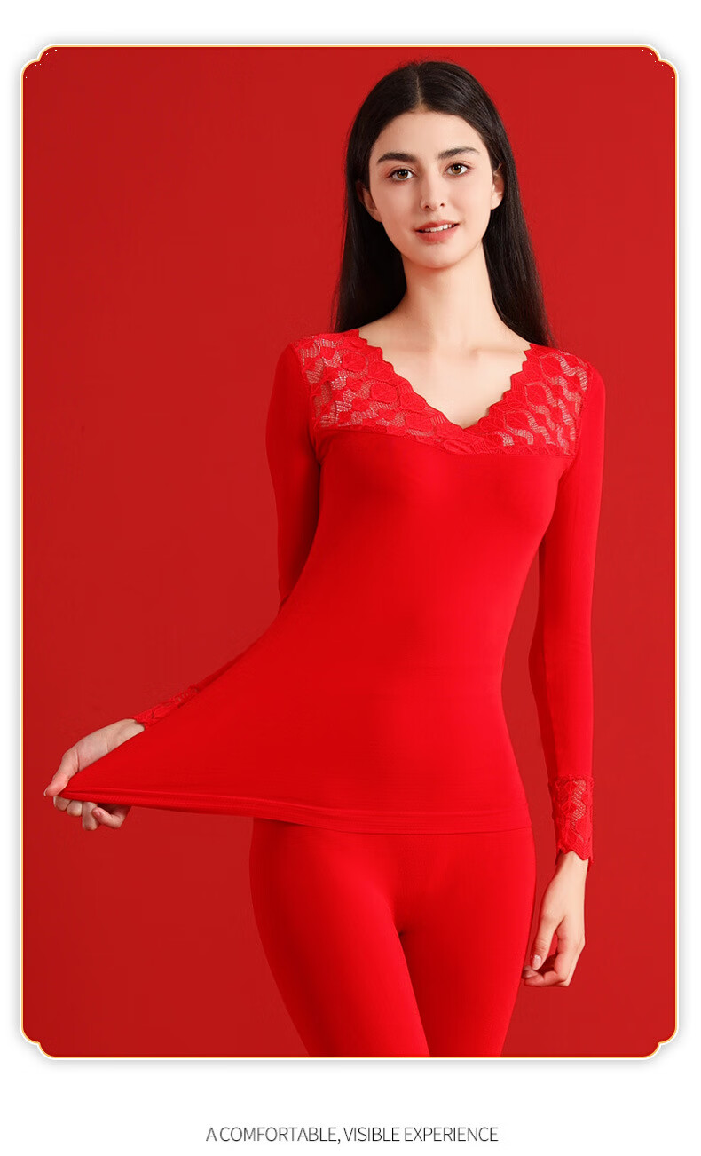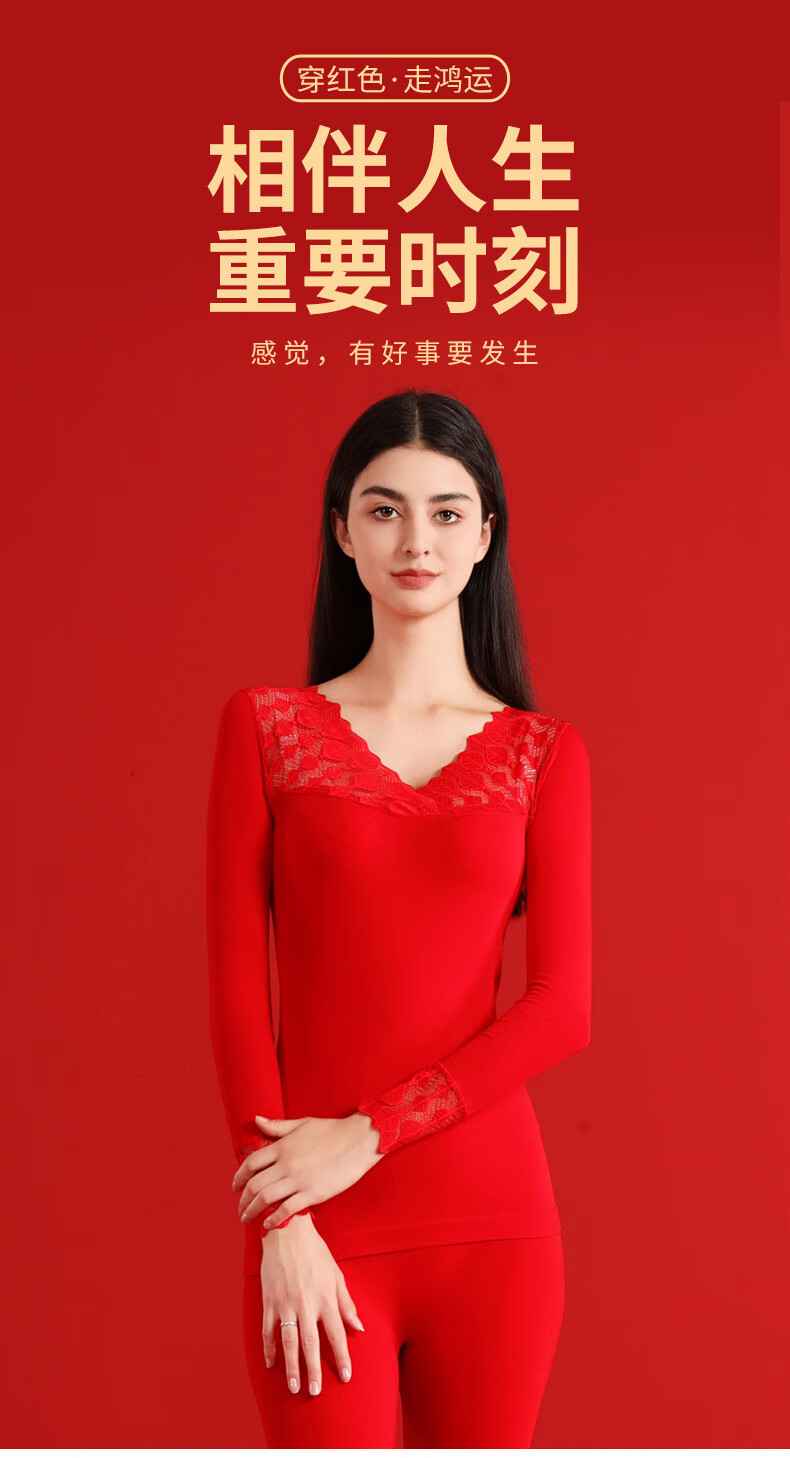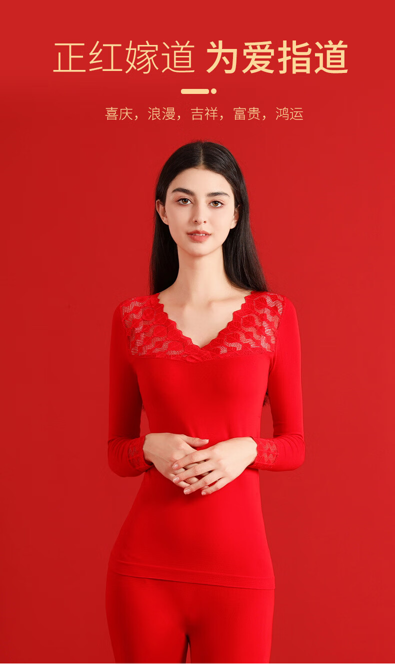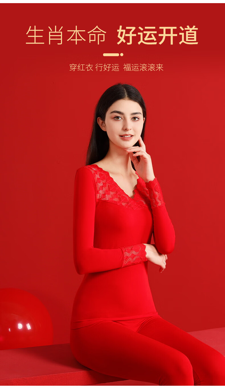 00012025本命年塑身美体秋衣秋裤套装女士大红色V领大码打底衫礼盒装 大红A22 L 大码秋衣礼盒8件套
