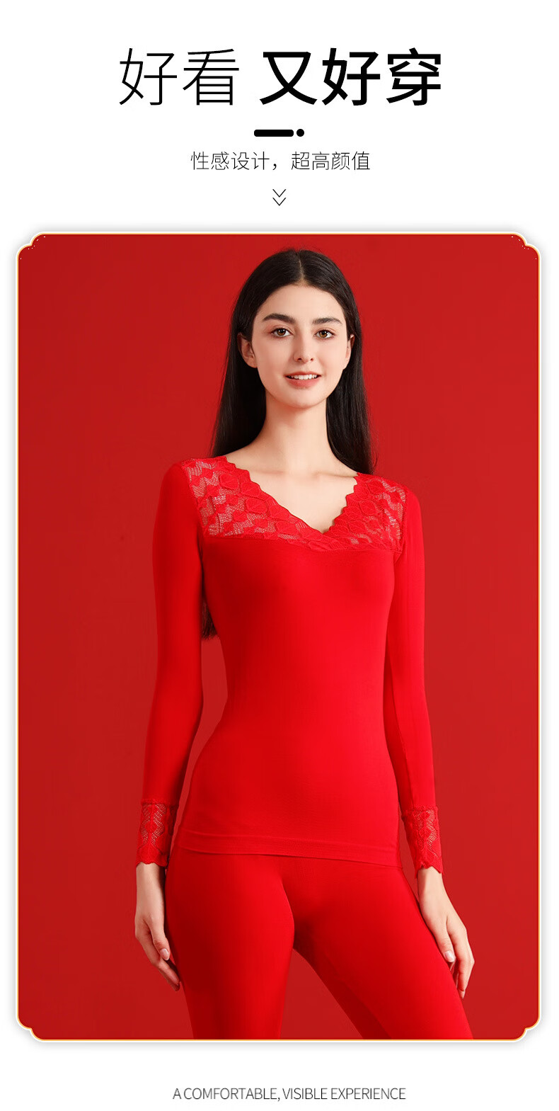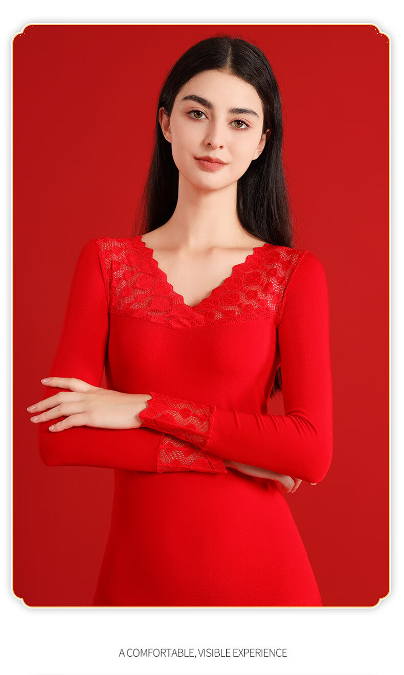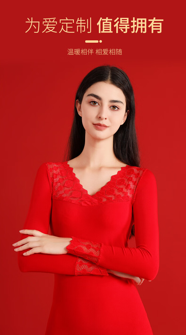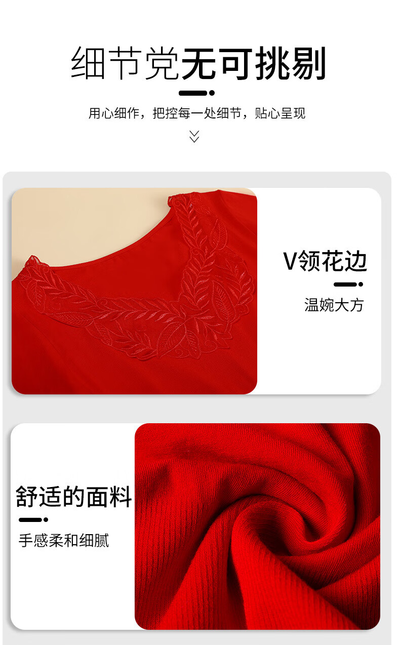 00012025本命年塑身美体秋衣秋裤套装女士大红色V领大码打底衫礼盒装 大红A22 L 大码秋衣礼盒8件套