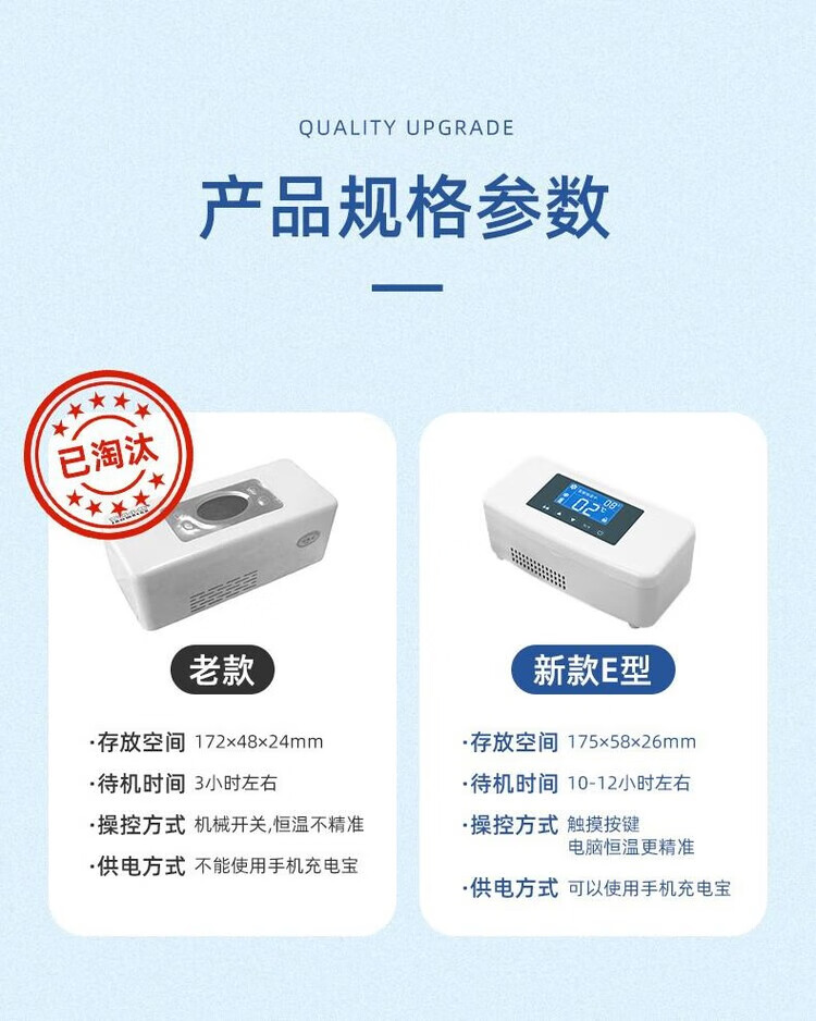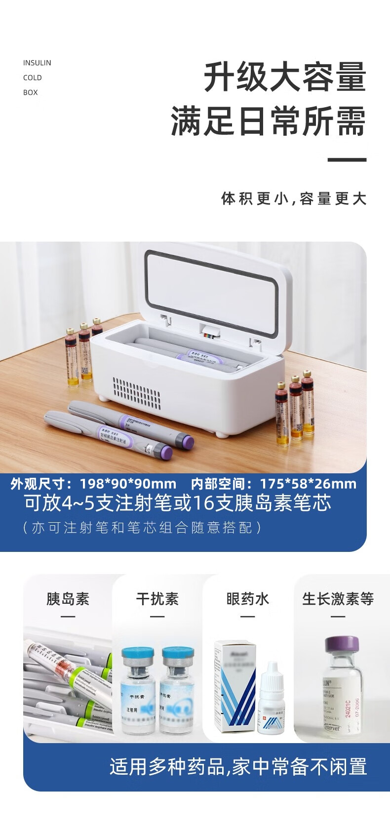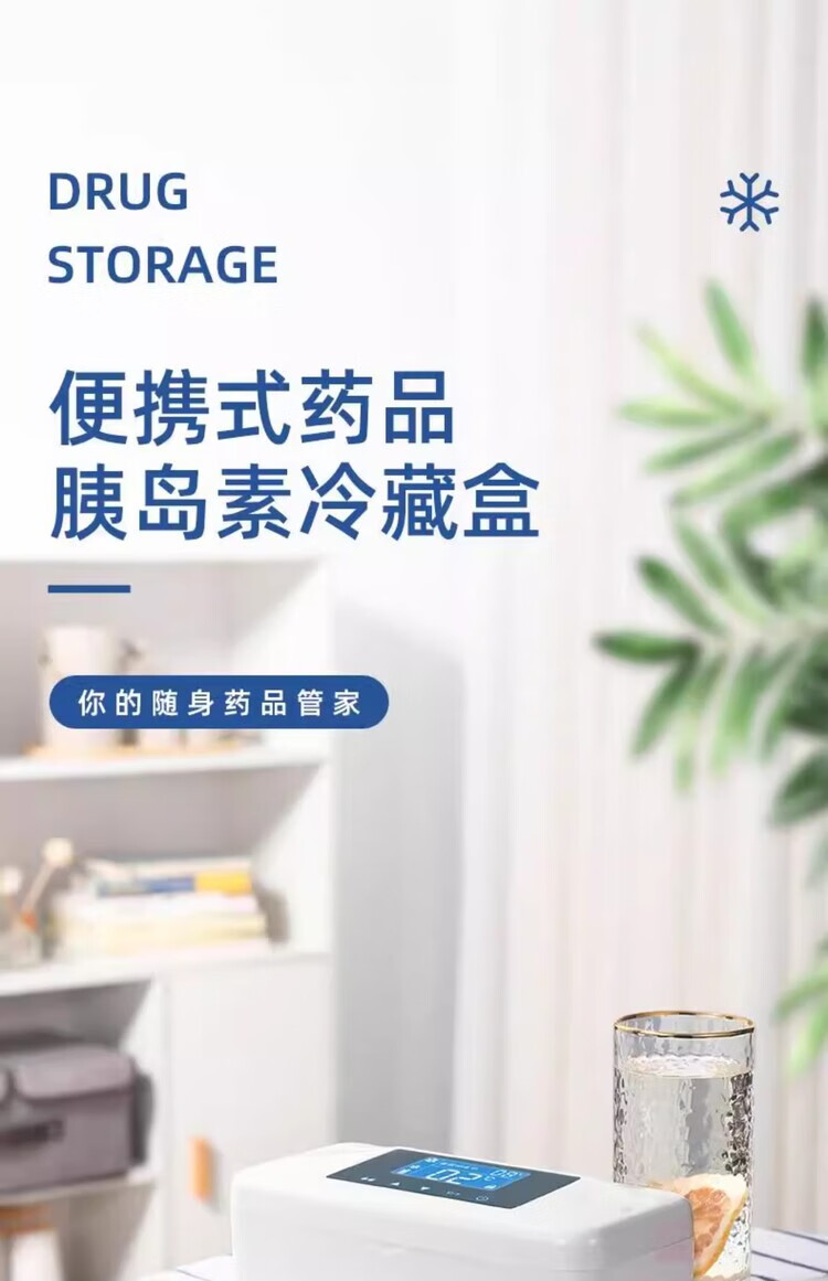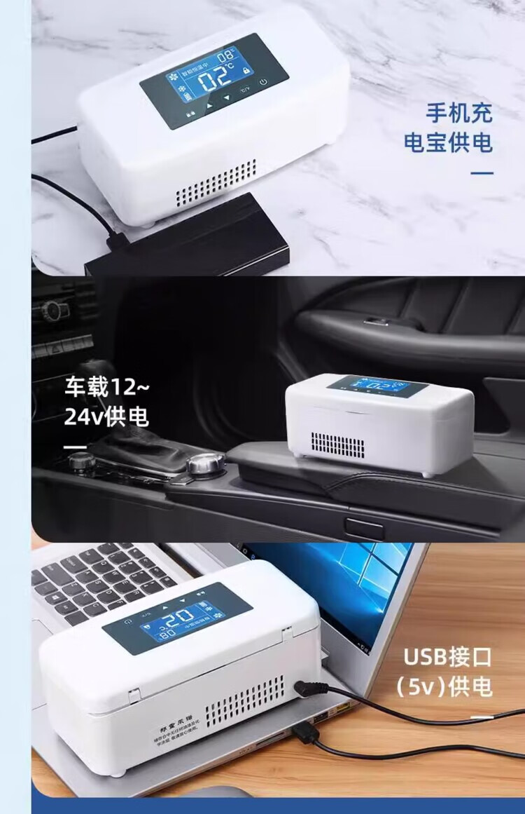 豌豆医生胰岛素冷藏盒便携式随身生长激素车载家用充电迷你制冷药品小冰箱 E型中配 双电池待机22小时 0.3L