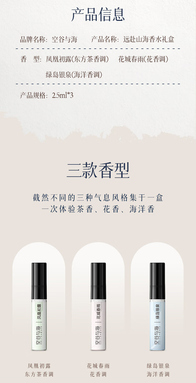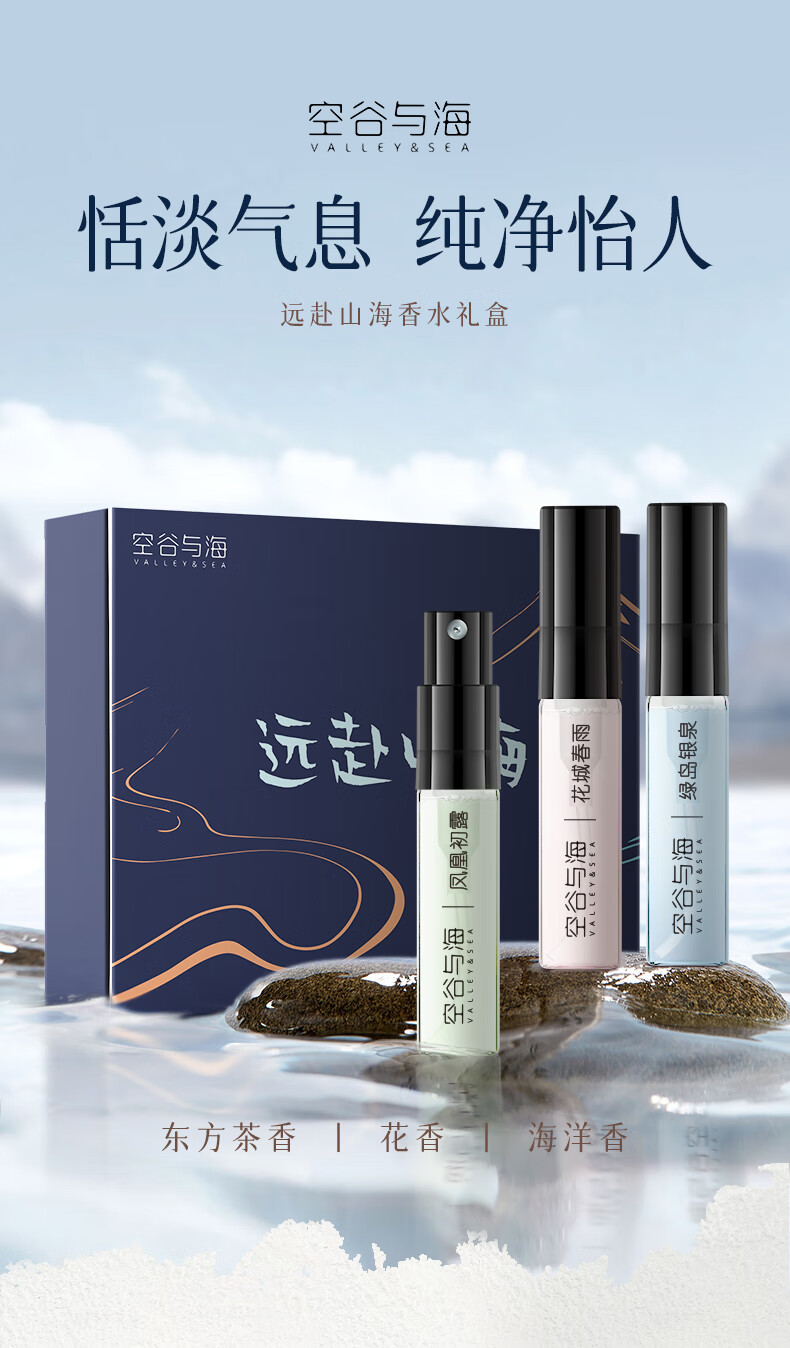 空谷与海远赴山海礼盒香水旅行装清新茶花香海洋香持久留香男女香水试用装 远赴山海香水礼盒(2.5ml*3)