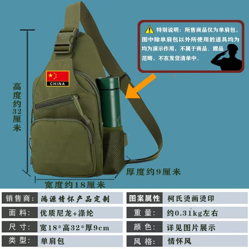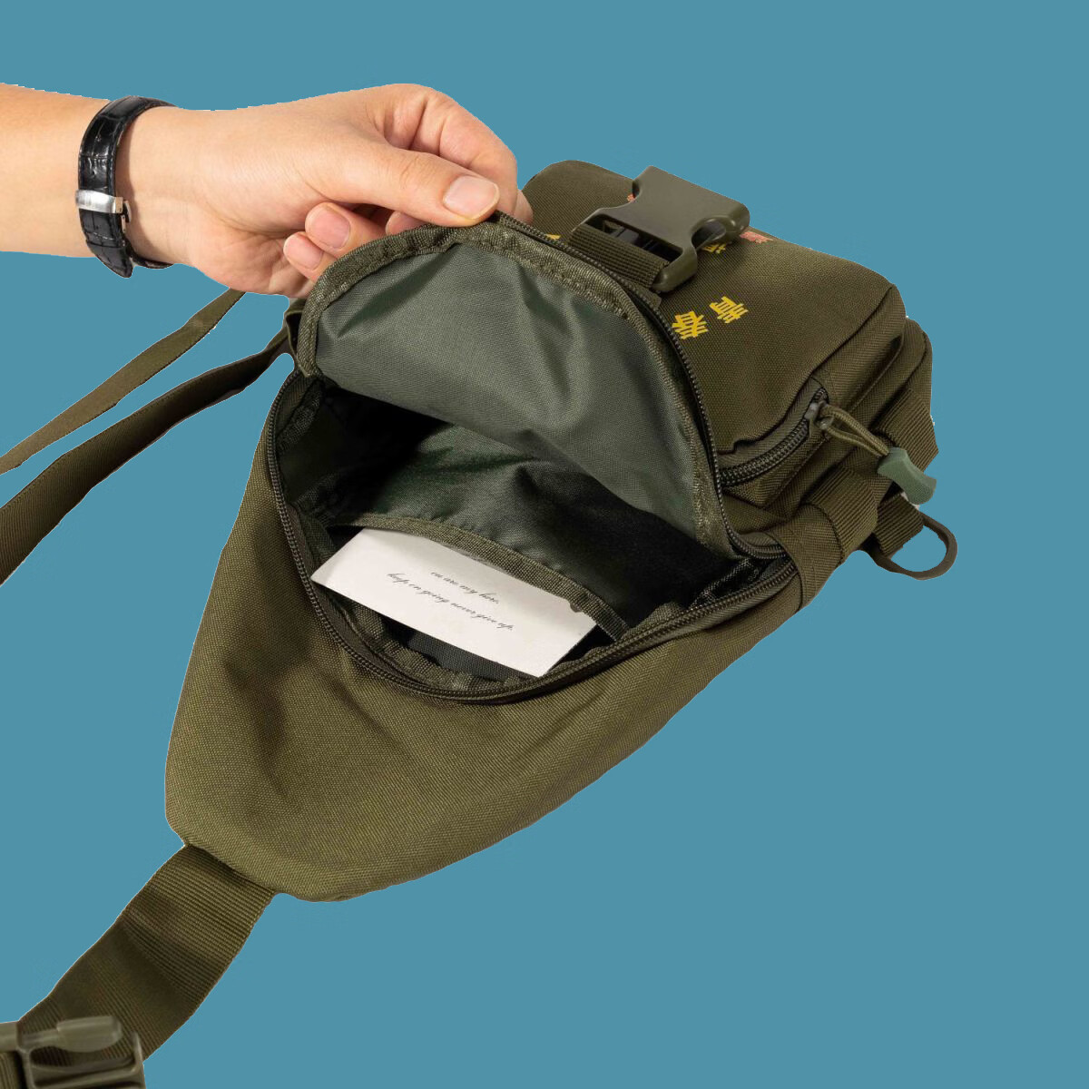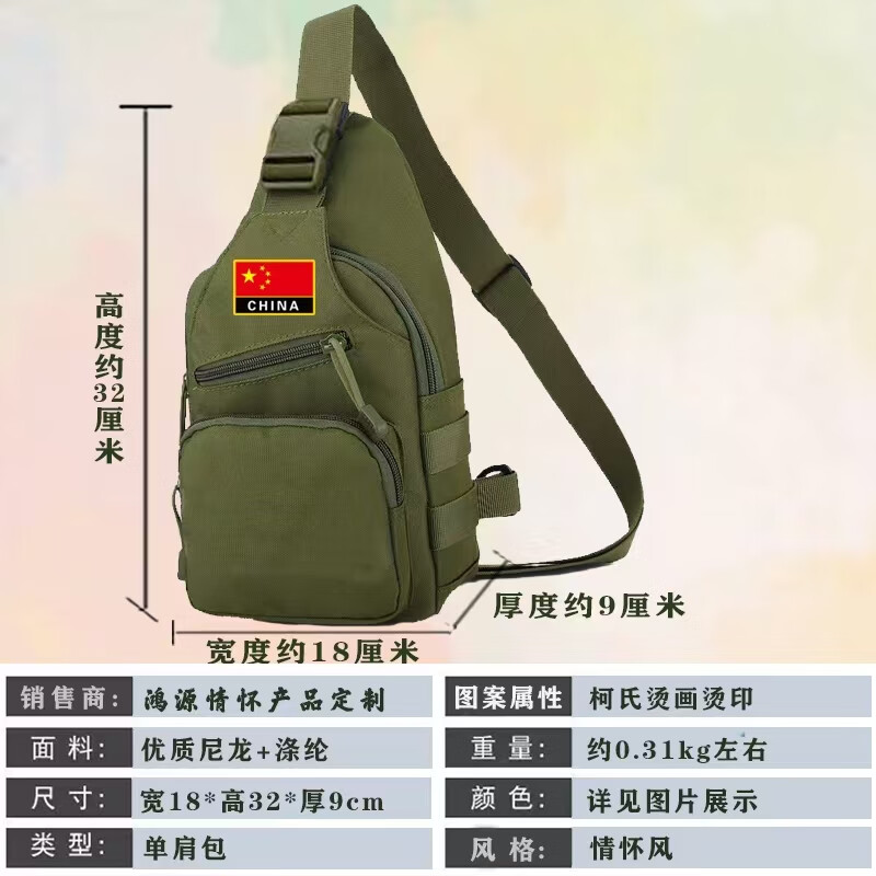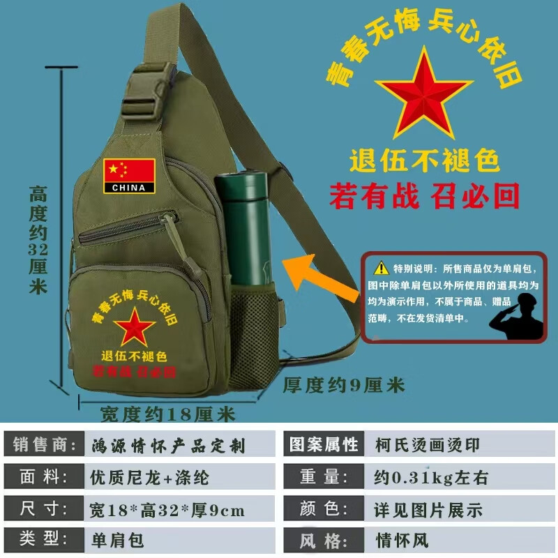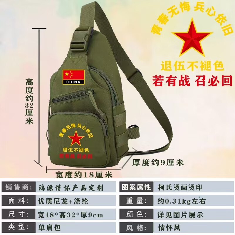 【军绿色单肩包】青春无悔兵心依旧情怀男士单肩出差包户外休闲包 召必回-单肩包 中包